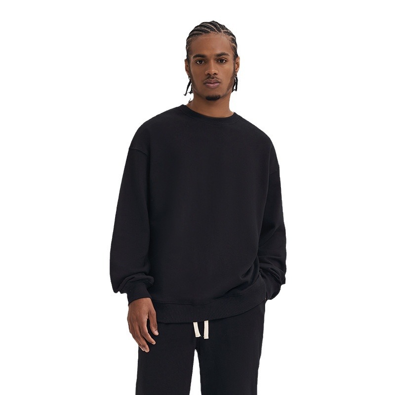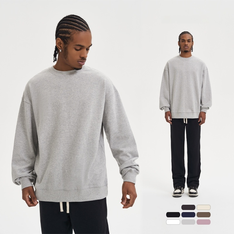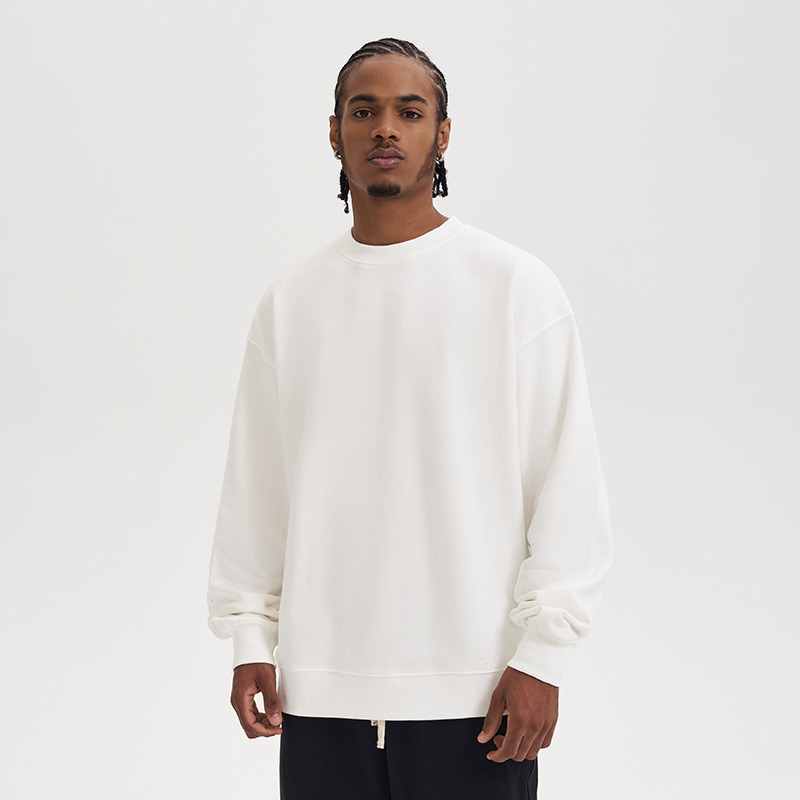 380g Terry Cotton Round Neck Sweater Loose European And American Retro FOG Color Matching