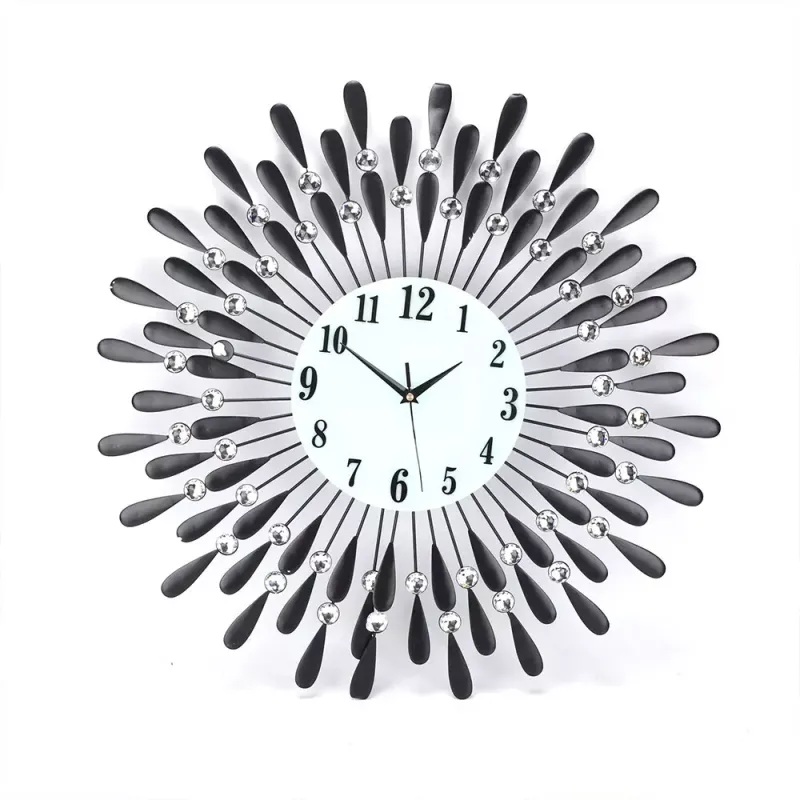 38CM Round Diamond Clock Crystal Wall Clock Silent Non-ticking For Living Room