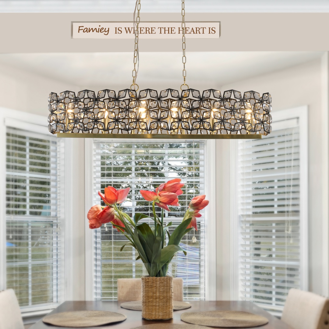 High -end K9 crystal -made of exquisite custom diamond -shaped unique patterns, with transparent crystals, which can reflect light exquisitely.High quality - Made of a high-quality metal frame, first-class crystal, processed with excellent technology, safe, durable, anti-corrosion, and non-fading.Sand gold and black lamp crystal chandeliers have excellent light transmission - with the best light transmission, which can reflect the light to the ceiling to make the lighting full of beauty.Easy installation: simple design, easy installation, suitable for most home users to install themselves, saving time and cost.