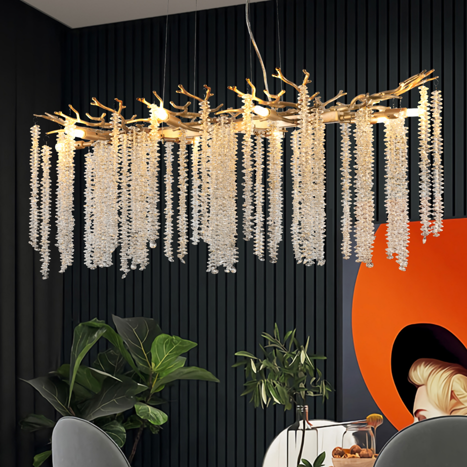 Product Name:39-inch Modern Golden Pendant Light with Cascading Crystal Strands, Ideal for Living Room, Dining Room and Foyer, High-End Decorative Lighting Fixture (Bulb Not Included)