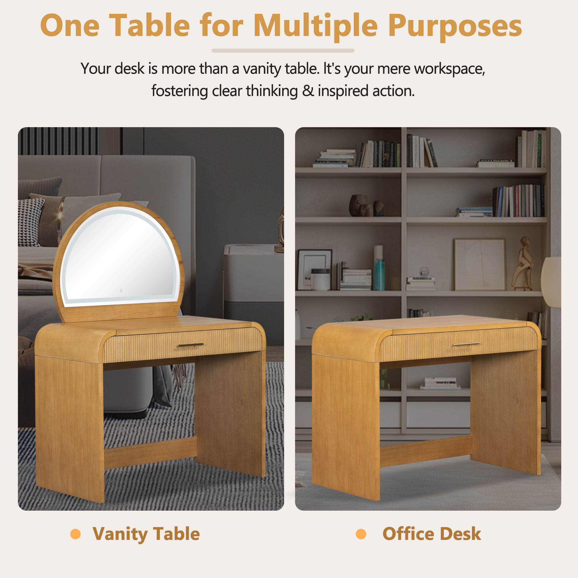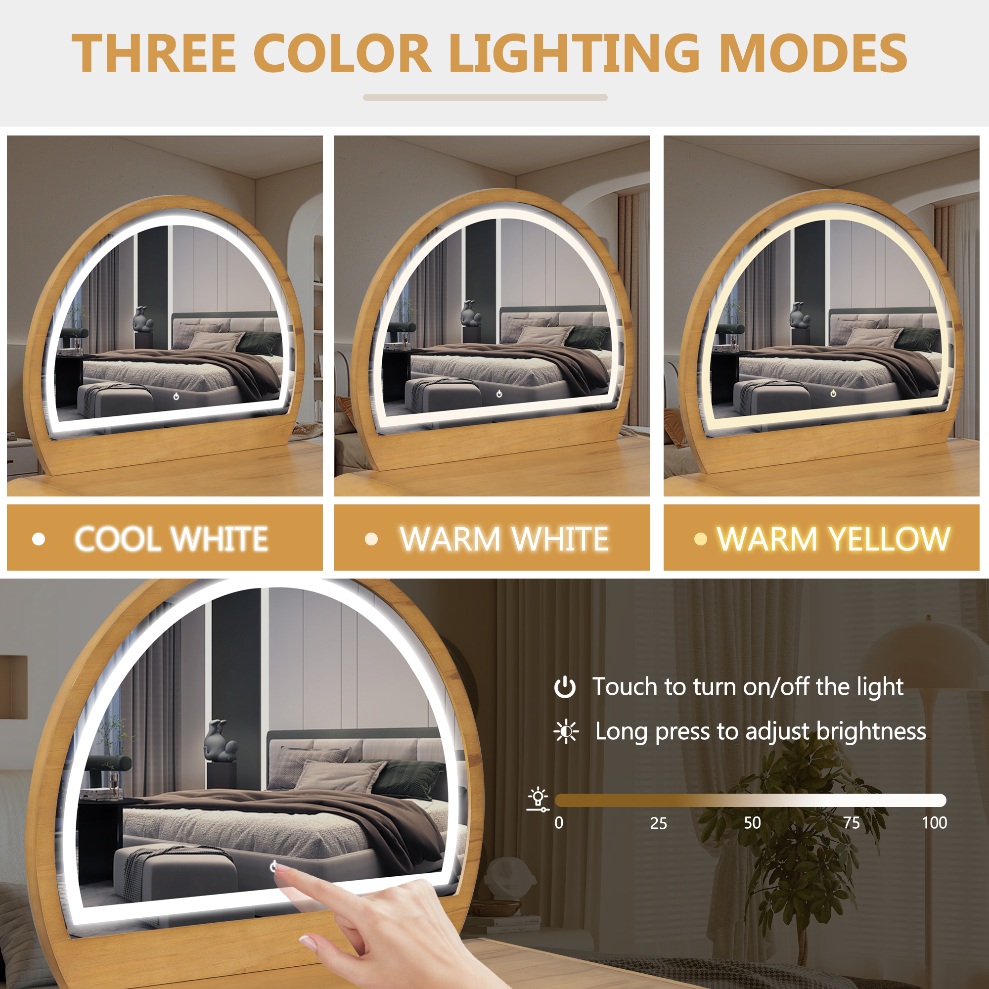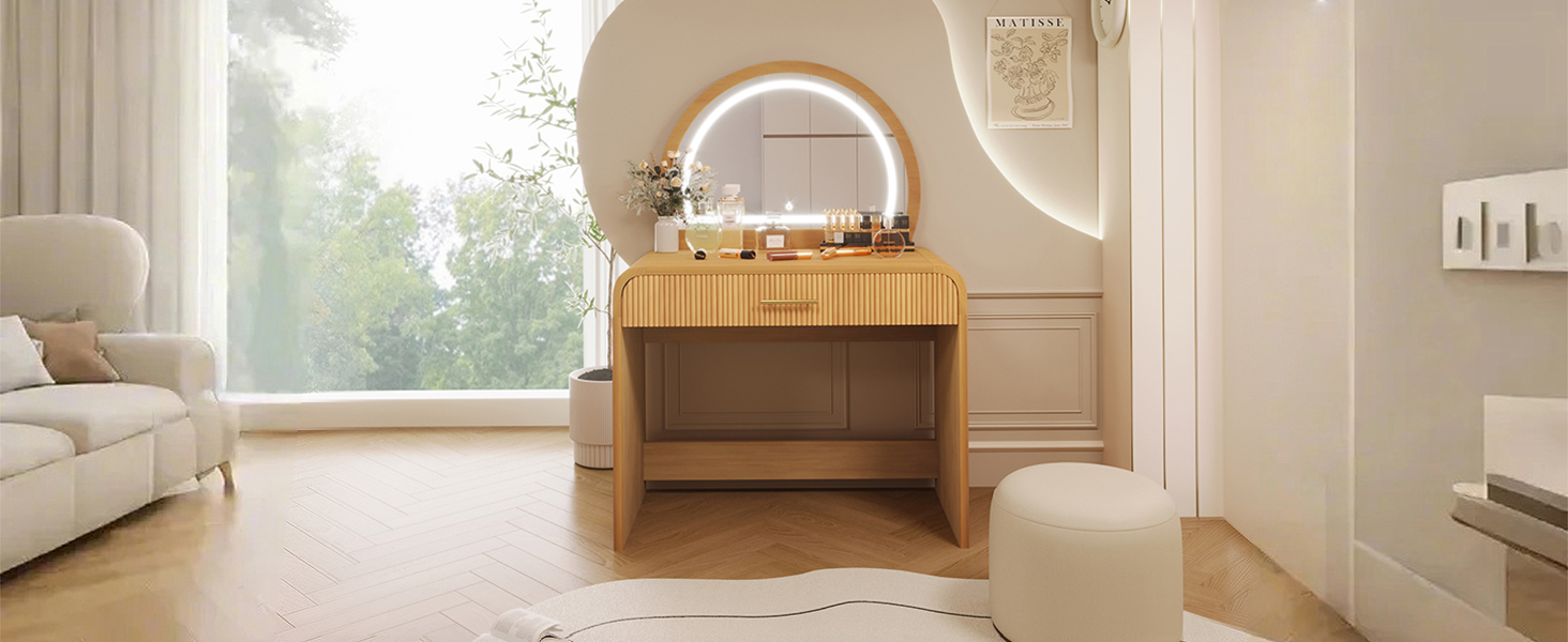 Product Name:39" Makeup Vanity Table with Mirror Touch Screen Lighted Mirror, Dressing Table with Drawer for Bedroom, Natural