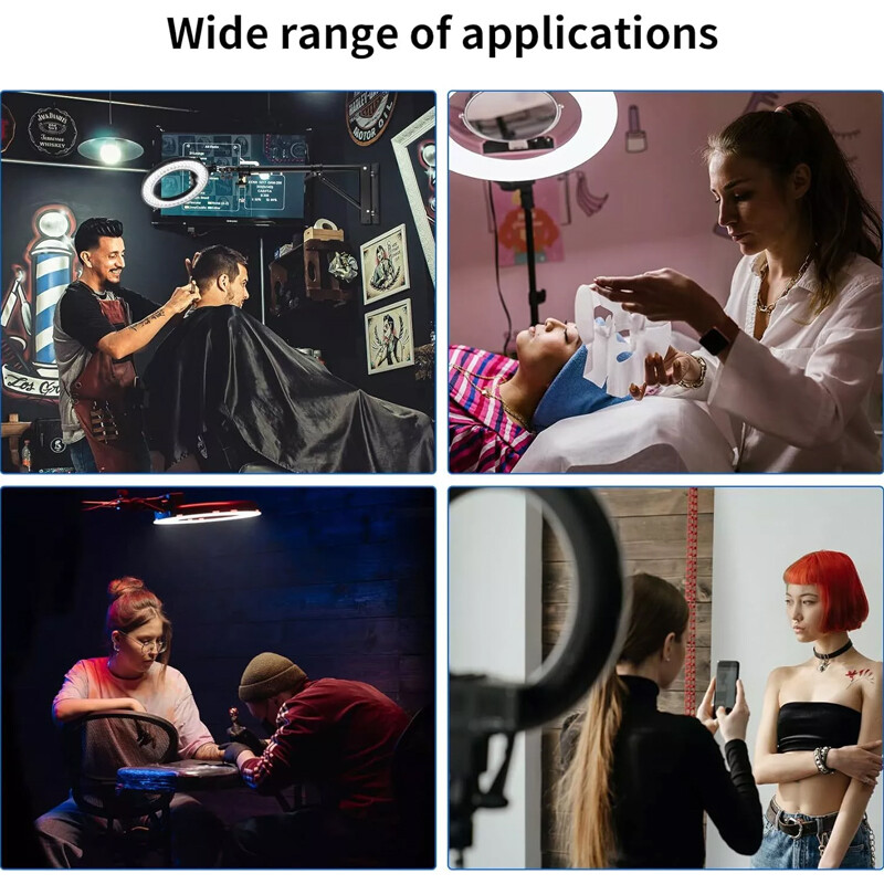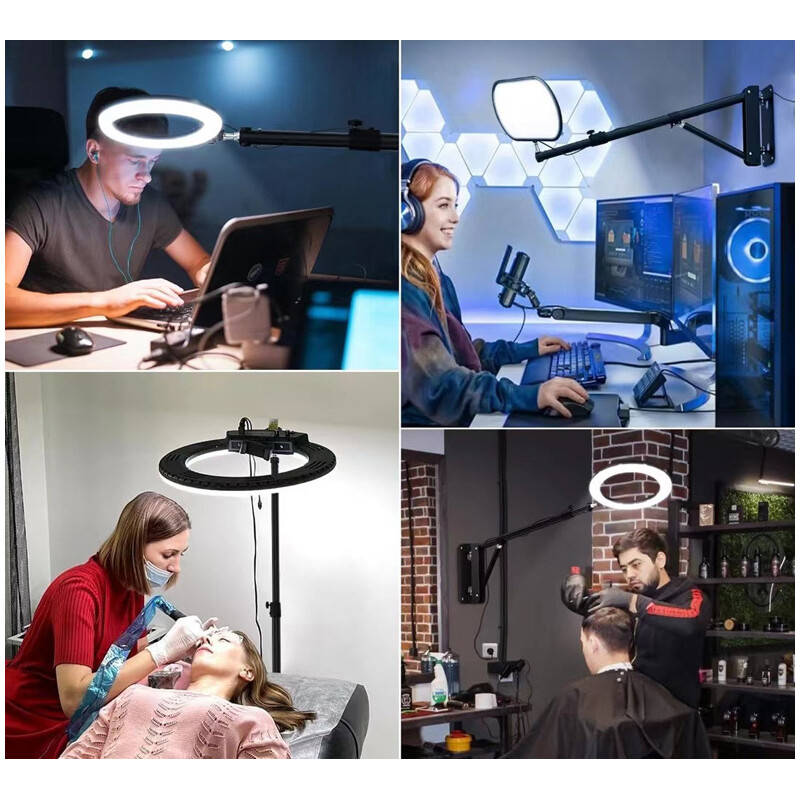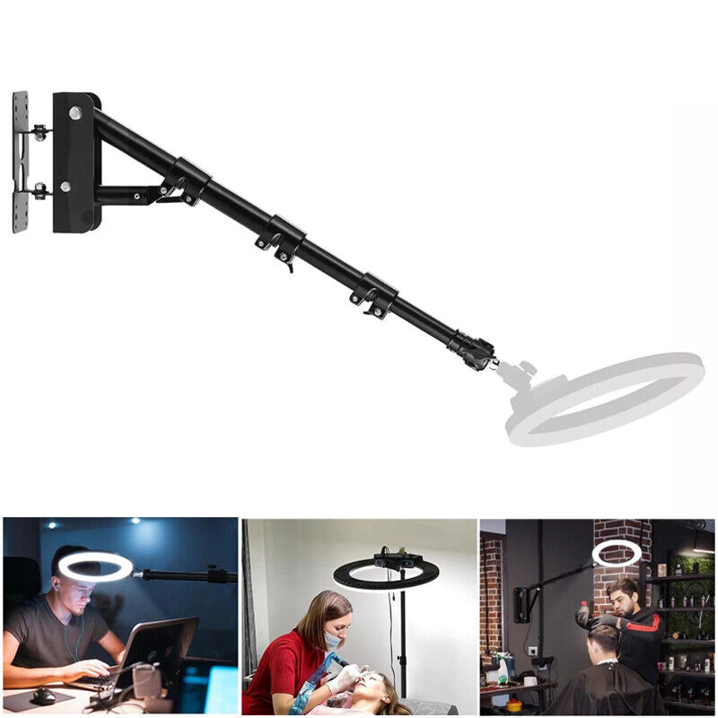 Wide Application : The wall mount ring light boom arm with 1/4'' and 3/8'' adapter screw is compatible with most equipment. It work well with LED video lights, Monolight, Strobe flash, reflector, microphone, camera, and all lighter-weight studio gear. Help in optimizing your studio space (Barbershop/Salon suite/Beauty Salon/Music studio/Photography Studio/Live Streaming, etc)