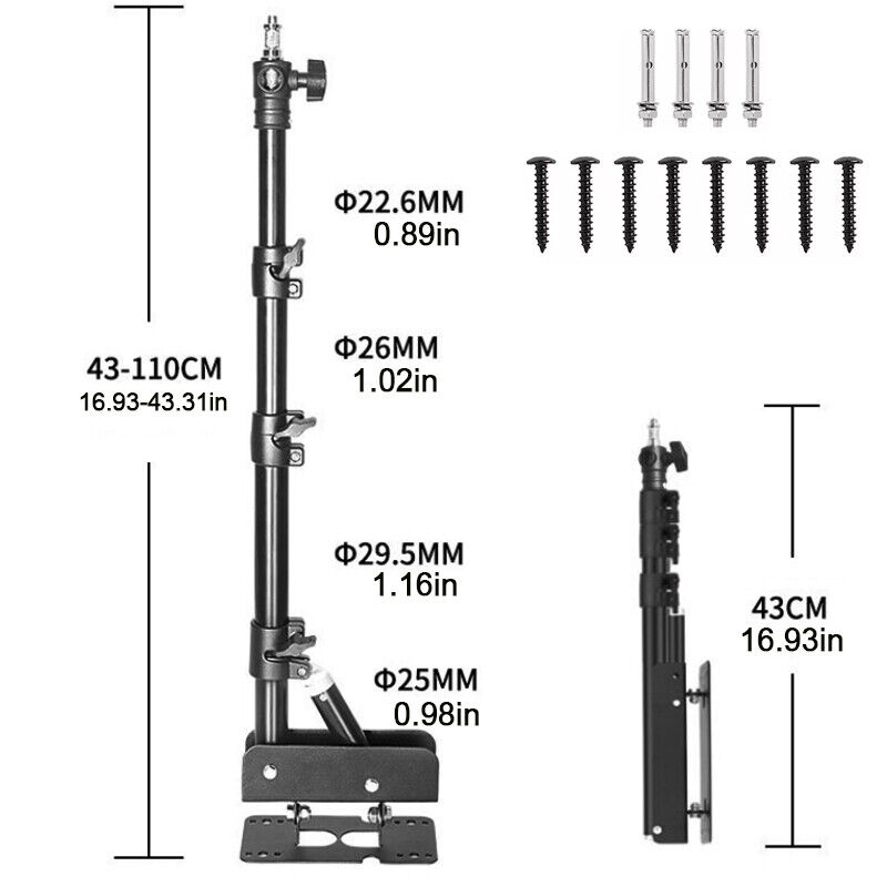 Adjustable and Stable: The triangle structure adds stability to the boom arm. So the length can be extended up to 43.31''/110cm to suit your different requirements. The ring light wall mount boom arm can be easily fixed on a solid wall or ceiling.