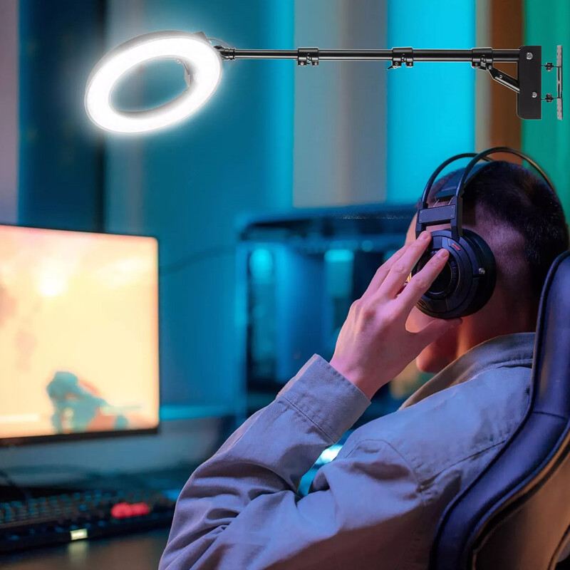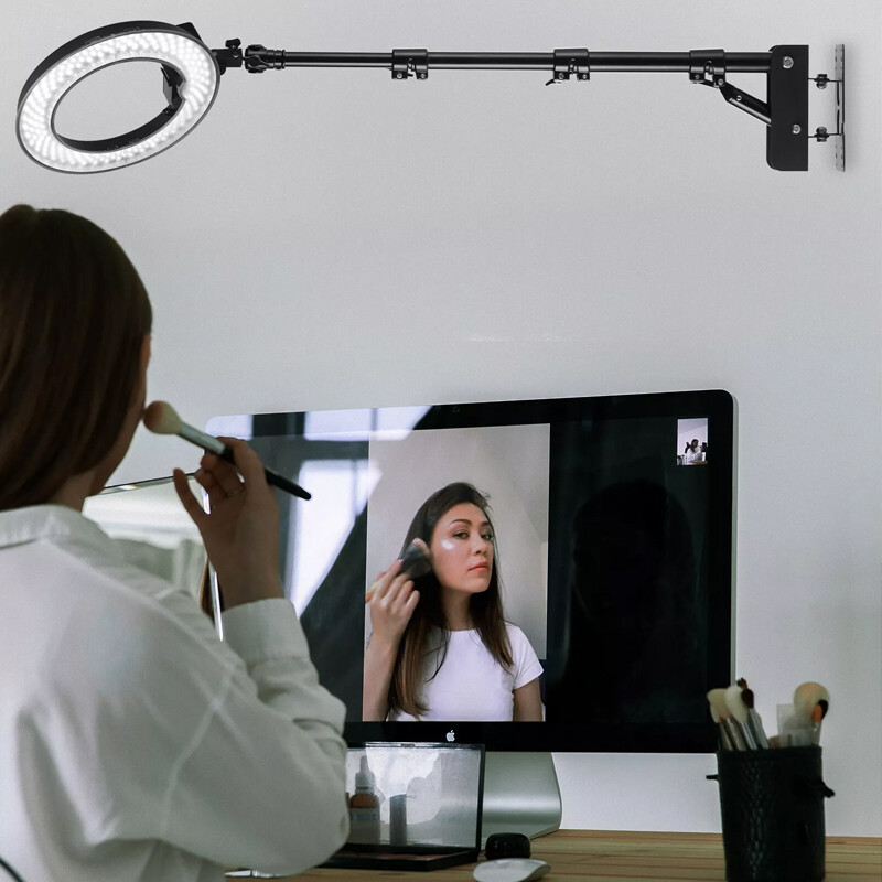 Dual-Swivel Design: You can swing the ring light wall mount arm swivel up and down or side to side from 0° to 180° for various angle adjustments, or fold it flat against the wall to save space when necessary.