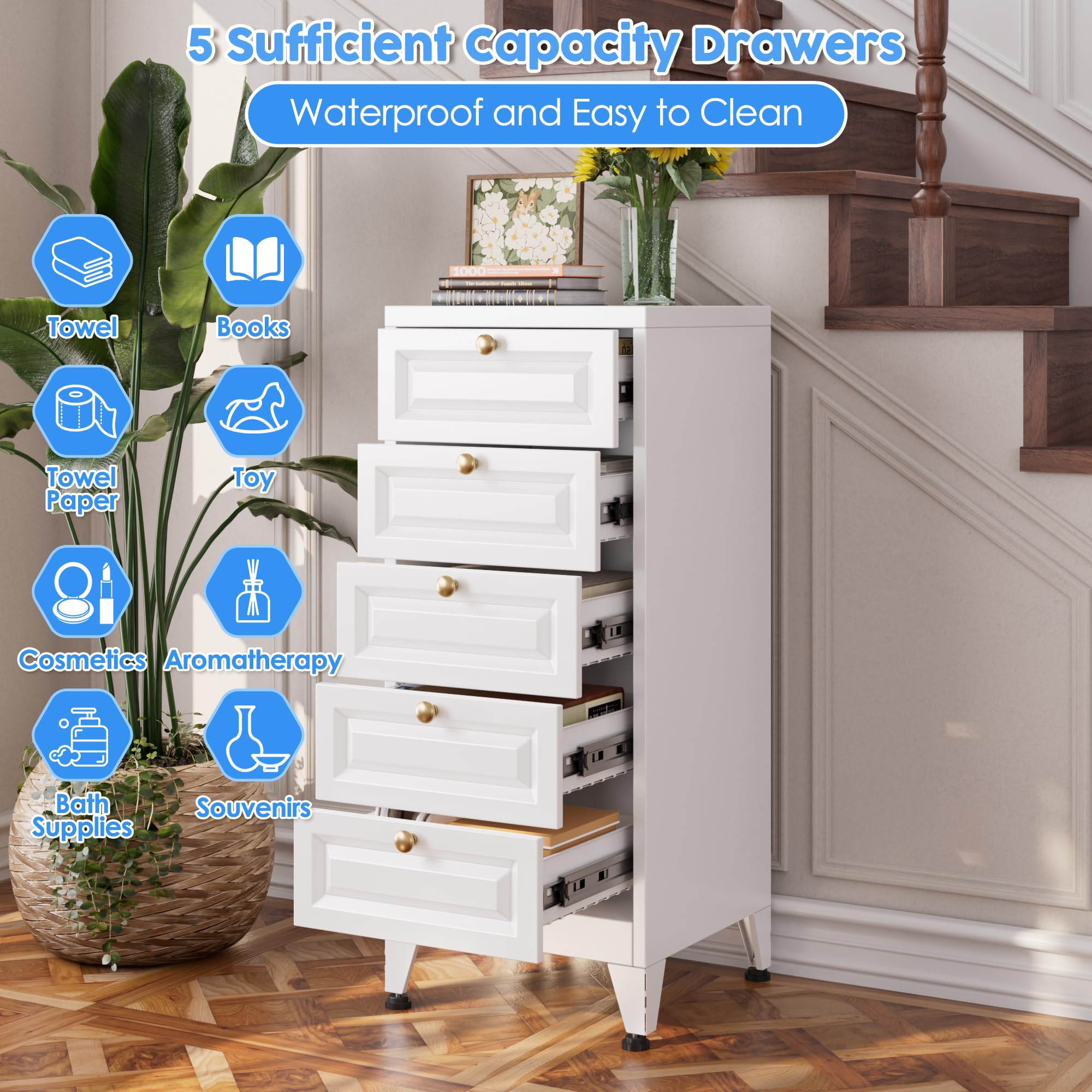 • 【Multifunctional Drawer Cabinet】5 Drawers metal bathroom storage cabinet spacious design with a simple, stylish look that fits any setting.farmhouse bathroom cabinet holds documents, cosmetics, daily essentials, and more.Ideal for vanity drawers, entryways, hallways, coffee bars, kitchen sideboards, pantries, or living rooms, dining areas, bedrooms, and beyond.