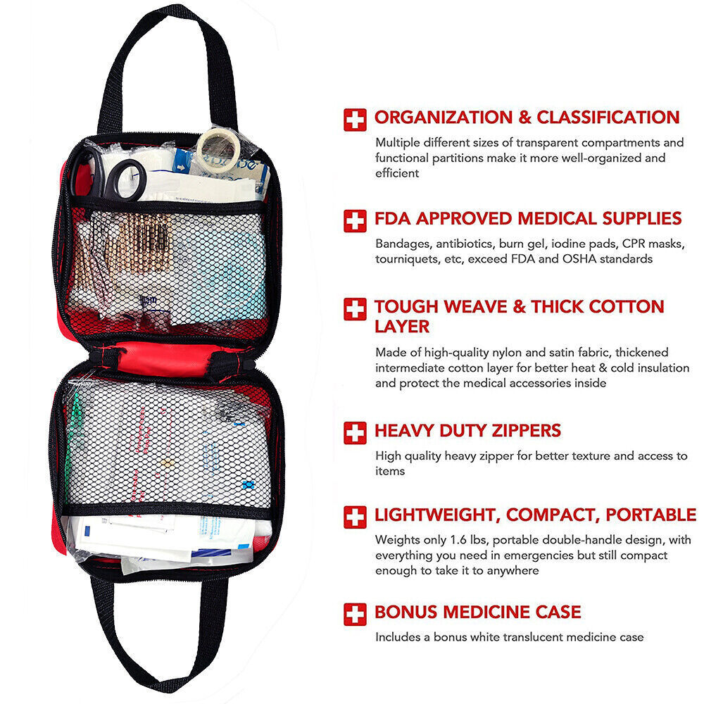 This jumbo medical first aid kit is compact and contain all the essentials and more