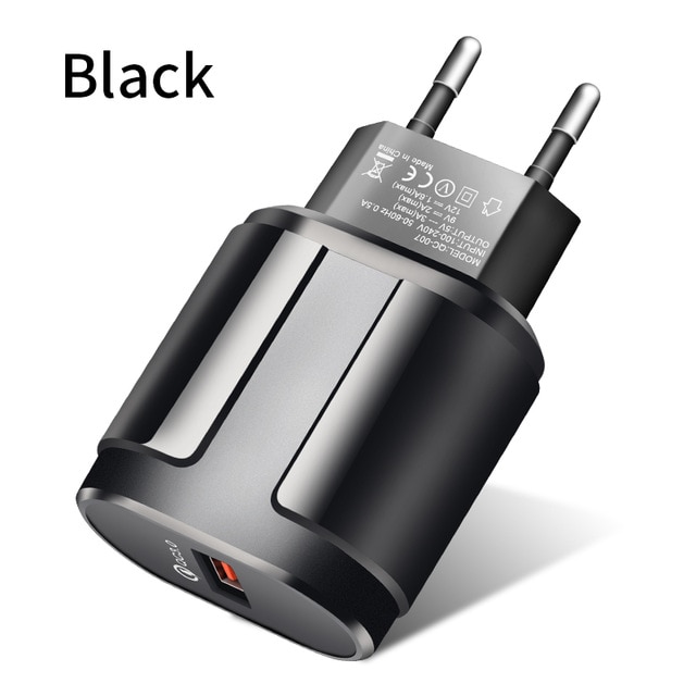 Max. Output Power: 18wOutput Interface: USBType: TravelPower Source: A.C. SourceModel Number: Quick Charge 3.0 ChargerInput: 100-240V/0.3AColor: White,BlackMaterial: ABS+PC