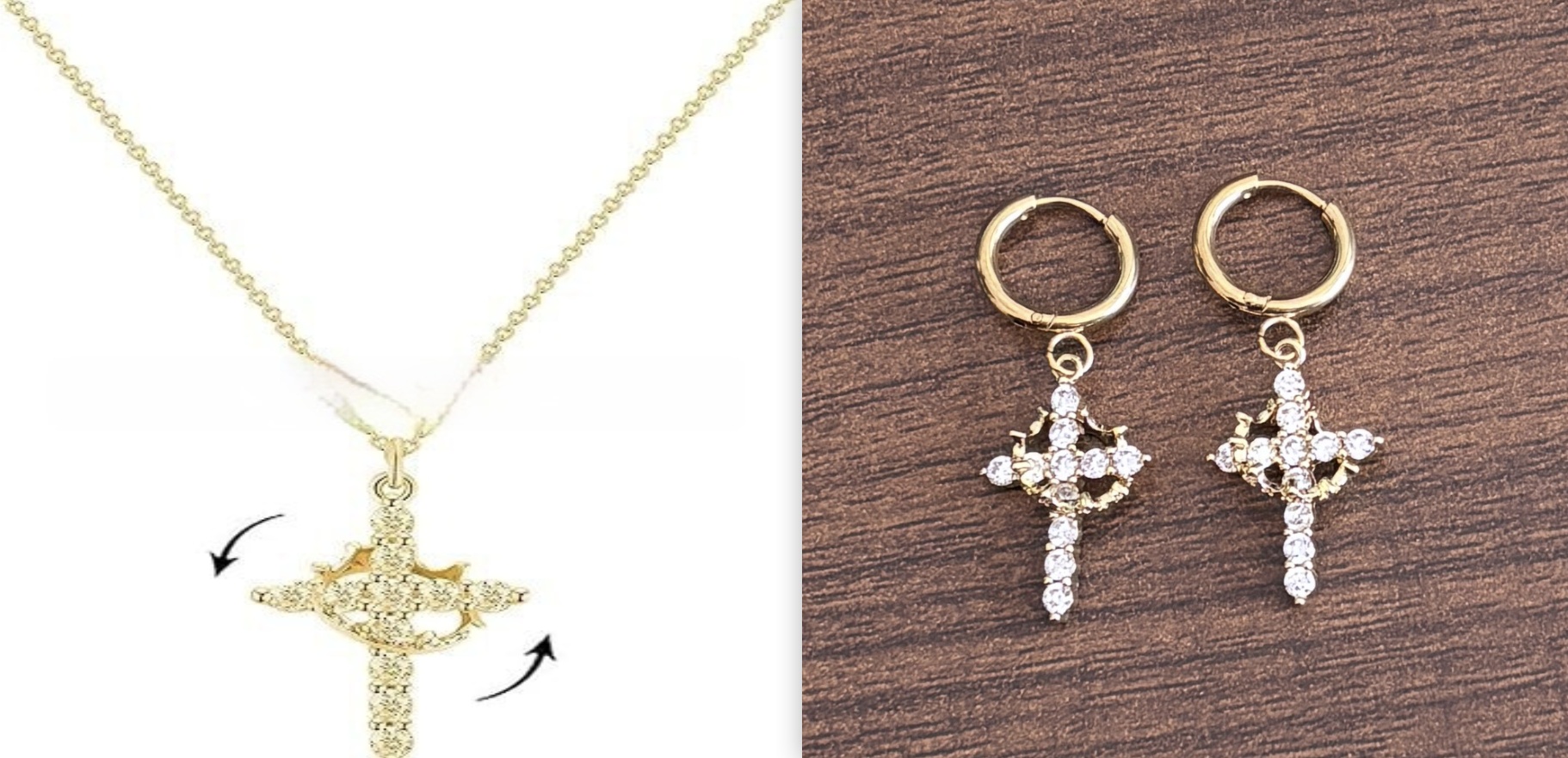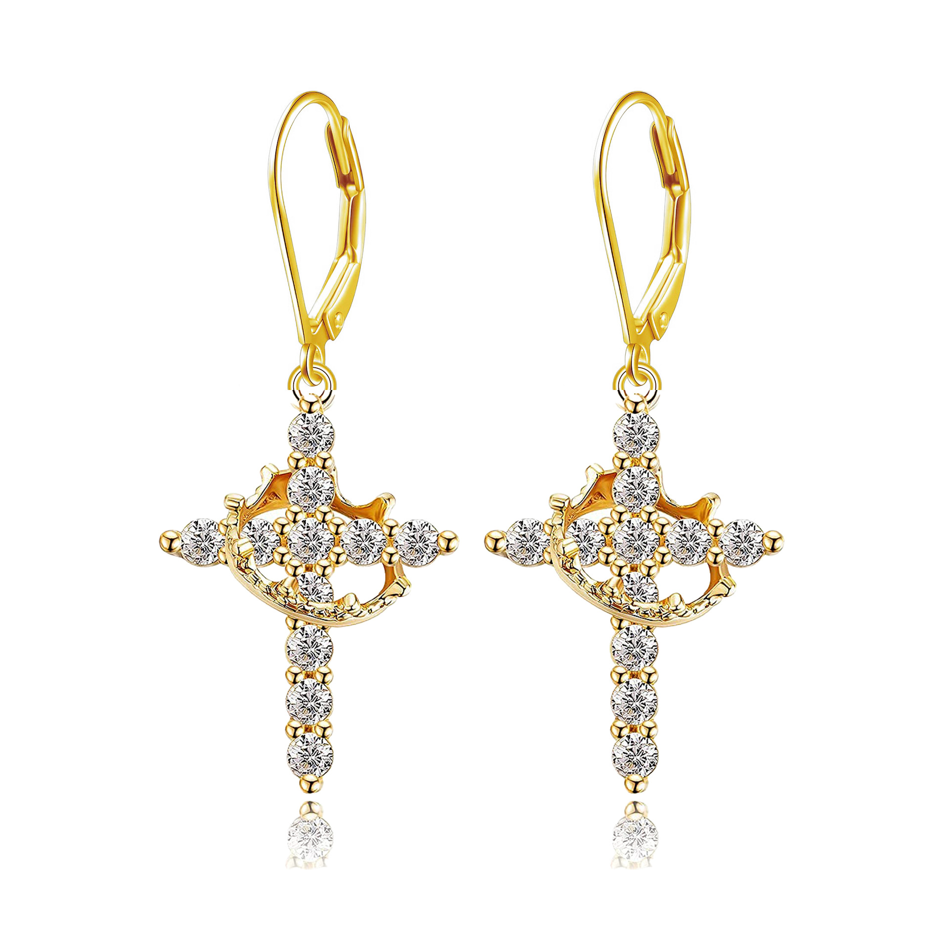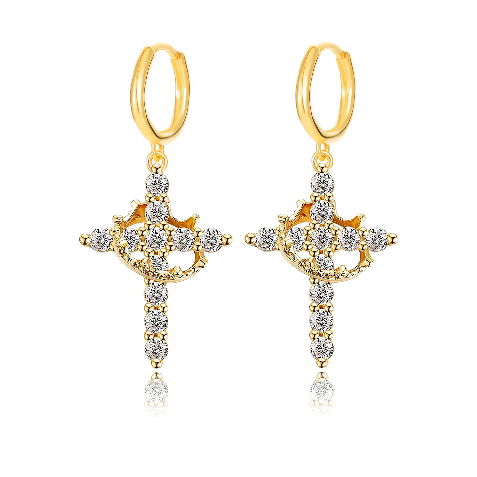 3A Zircon Crown Cross Movable Stainless Steel Ear Clip