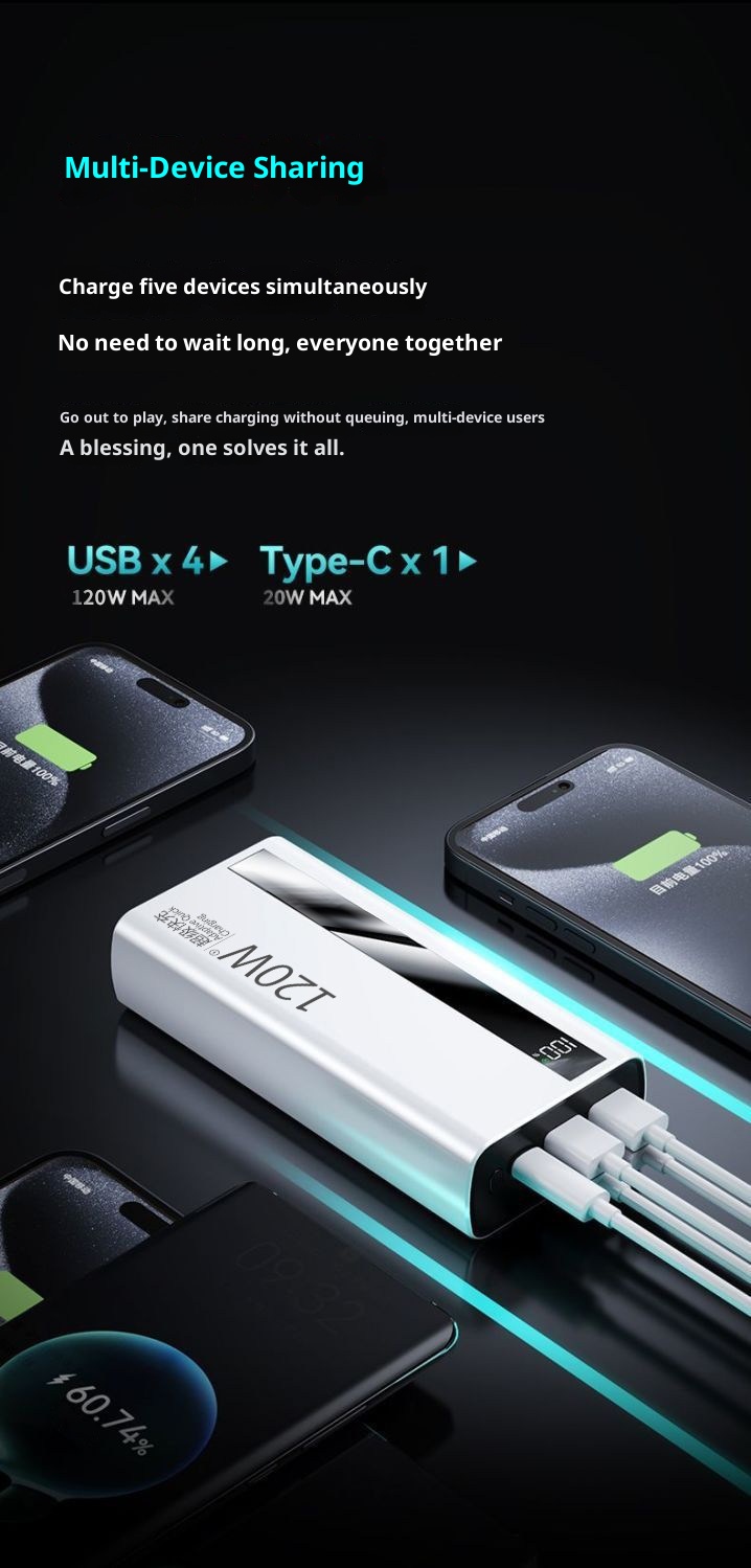 Product information:Ports: USB*4, Type-C*1 Material: Plastic Specification: Power Bank Capacity: 10000mAh