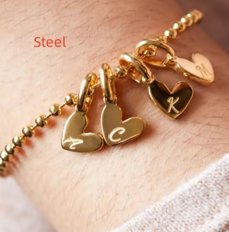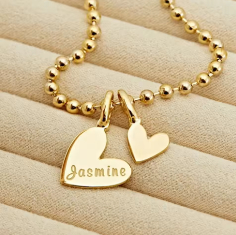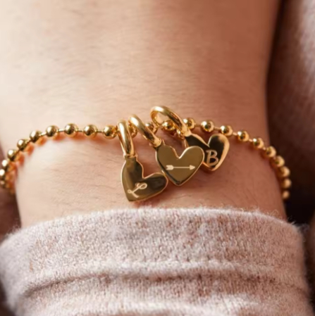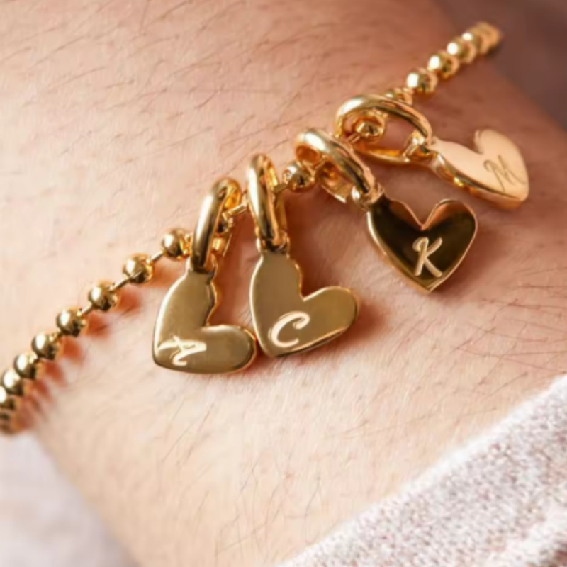 This charming piece features a duo of heart charms on a beaded bracelet, customizable with initials or a name. Its versatile design ensures it complements any style, making it a perfect addition to any jewelry collection.