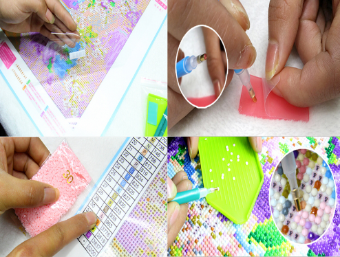 1*Full diamonds, printed cloth, tools