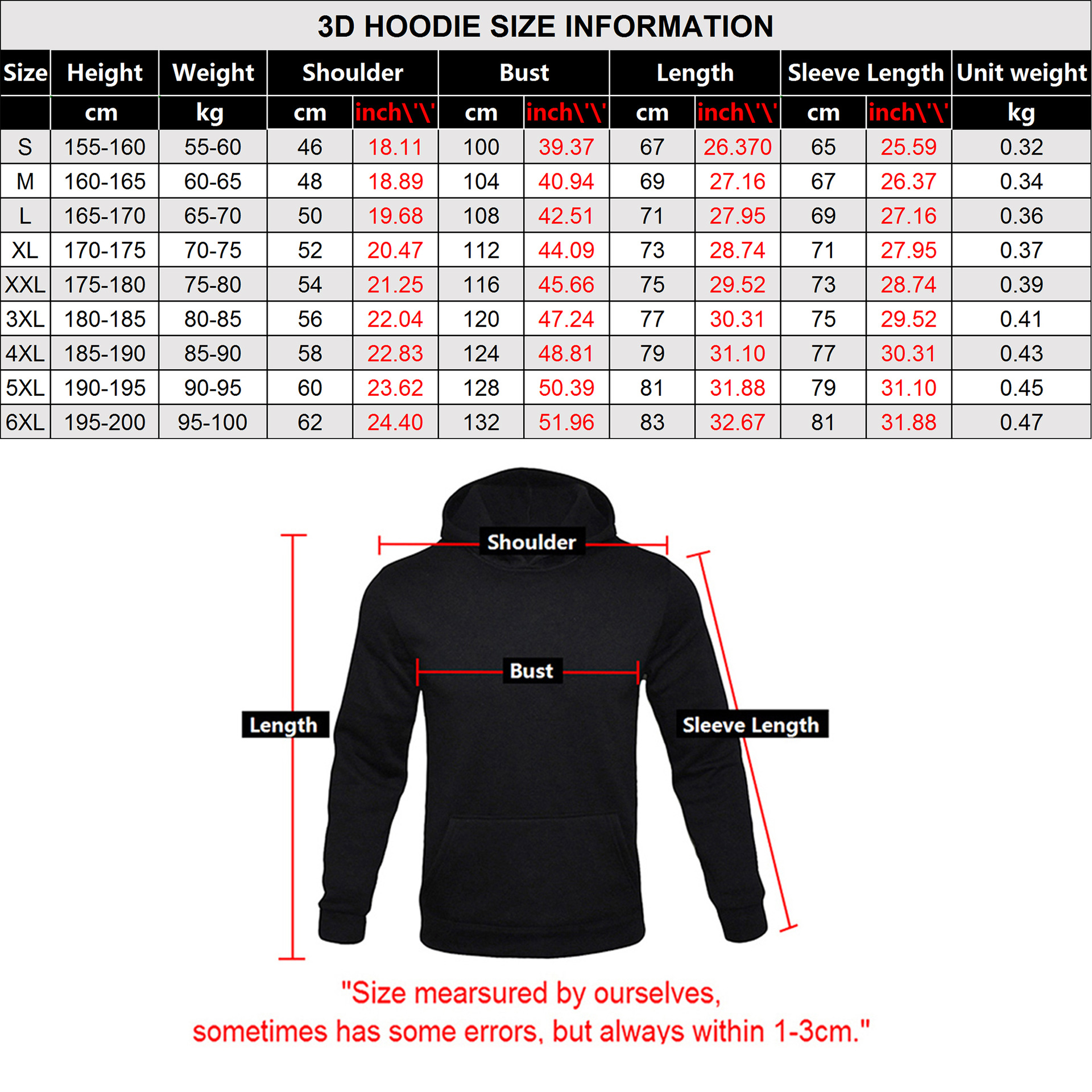Size: S, M, L, XL, XXL, 3XL, 4XL, 5XL, 6XL