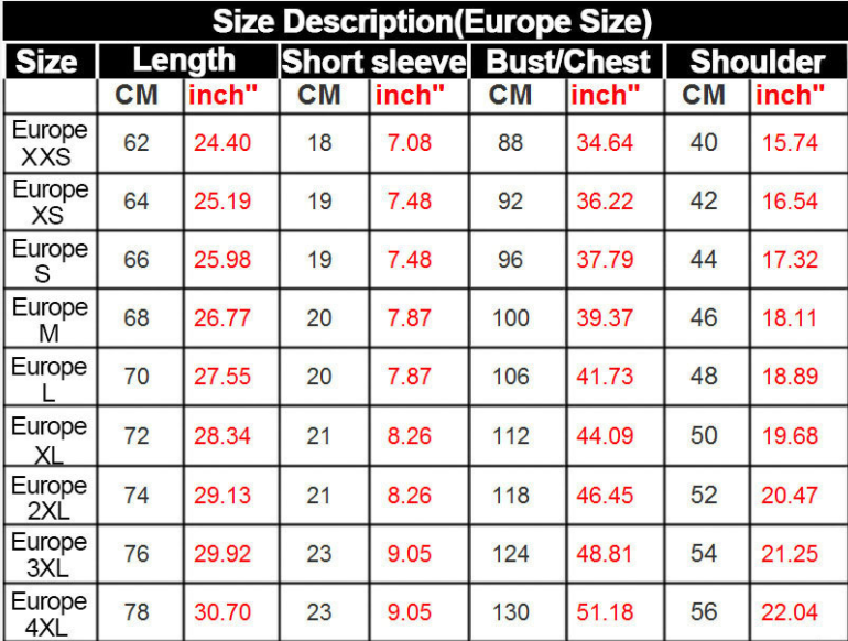 Size: XXS/XS/S/M/L/XL/XXL/3XL/4XL