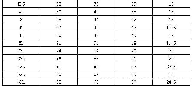 Size: XXS, XS, S, M, L, XL, XXL, 3XL, 4XL, 5XL, 6XL, 110, 120, 130