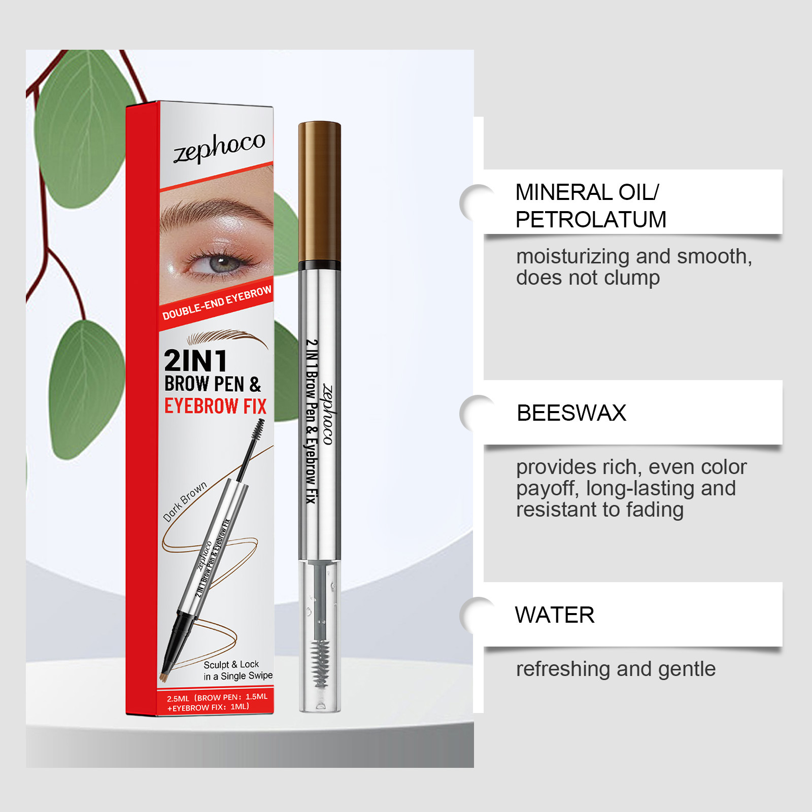 Product Ingredients: Eyebrow Pencil: Mineral Oil, Beeswax, Petrolatum, Tocopherol (Vitamin E), Carbon Black, Titanium Dioxide, CI77492