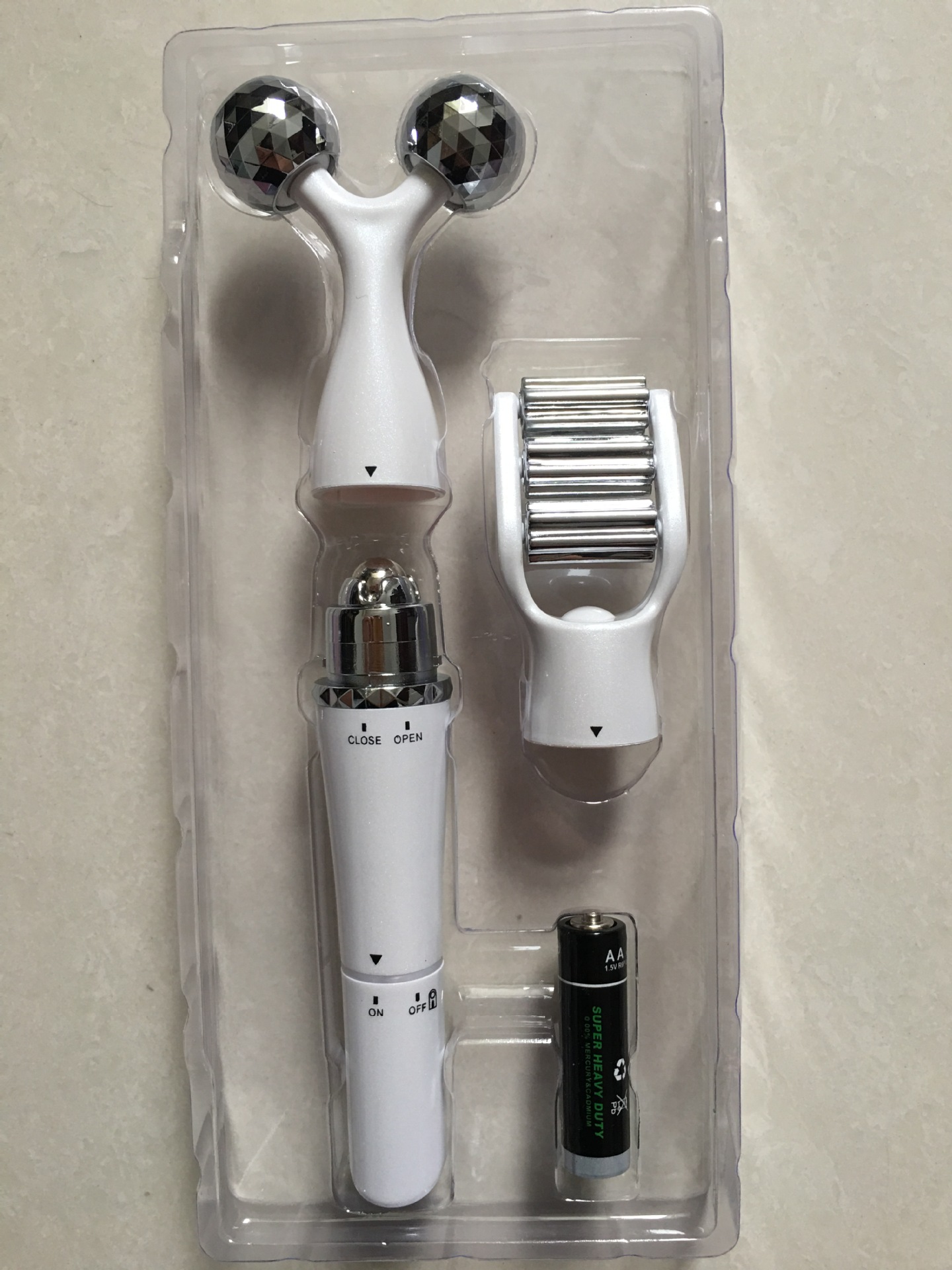 Product specifications: 17.5x5.5x2.5cm Standard configuration: 1 host + 2 massage heads + 1 AA battery (AA)