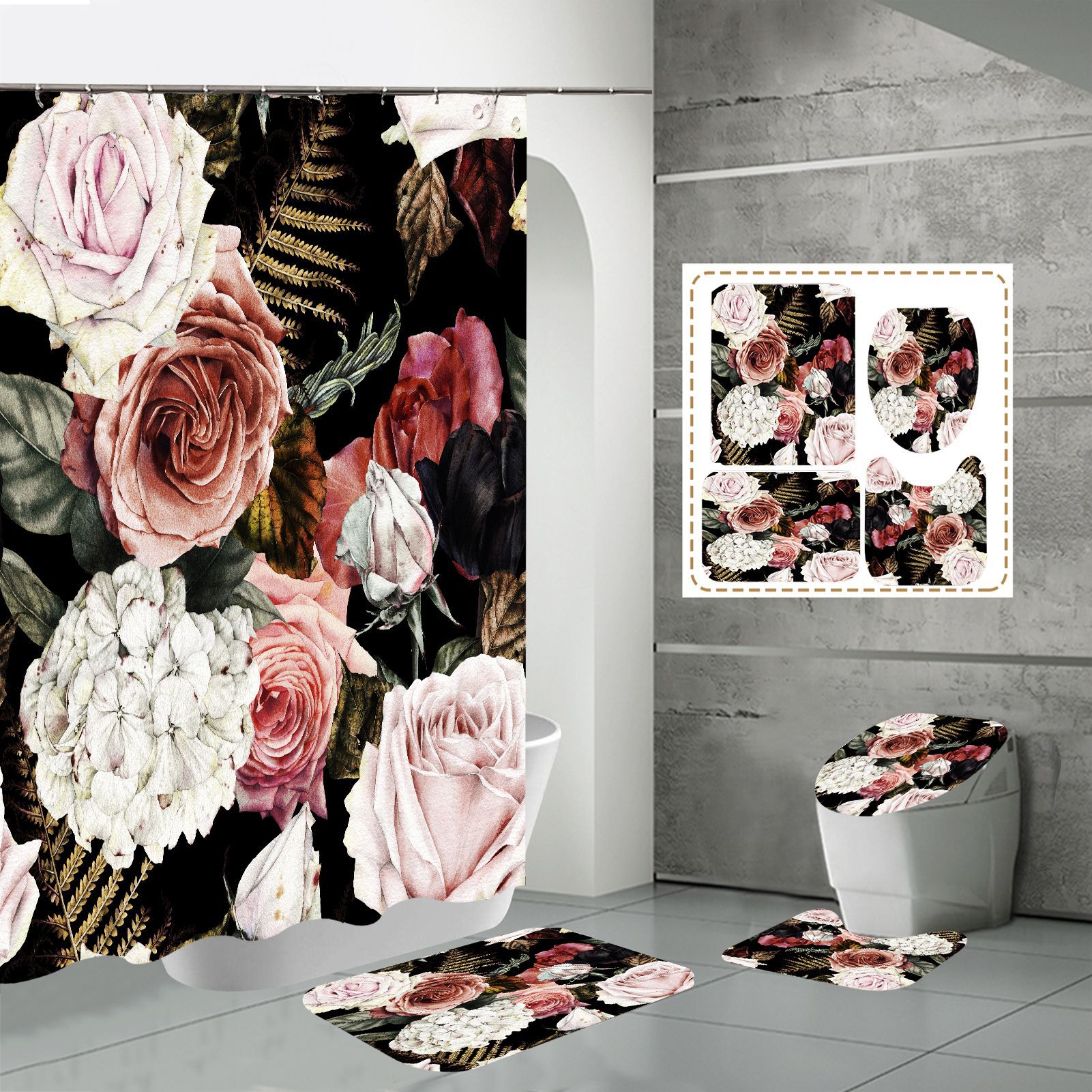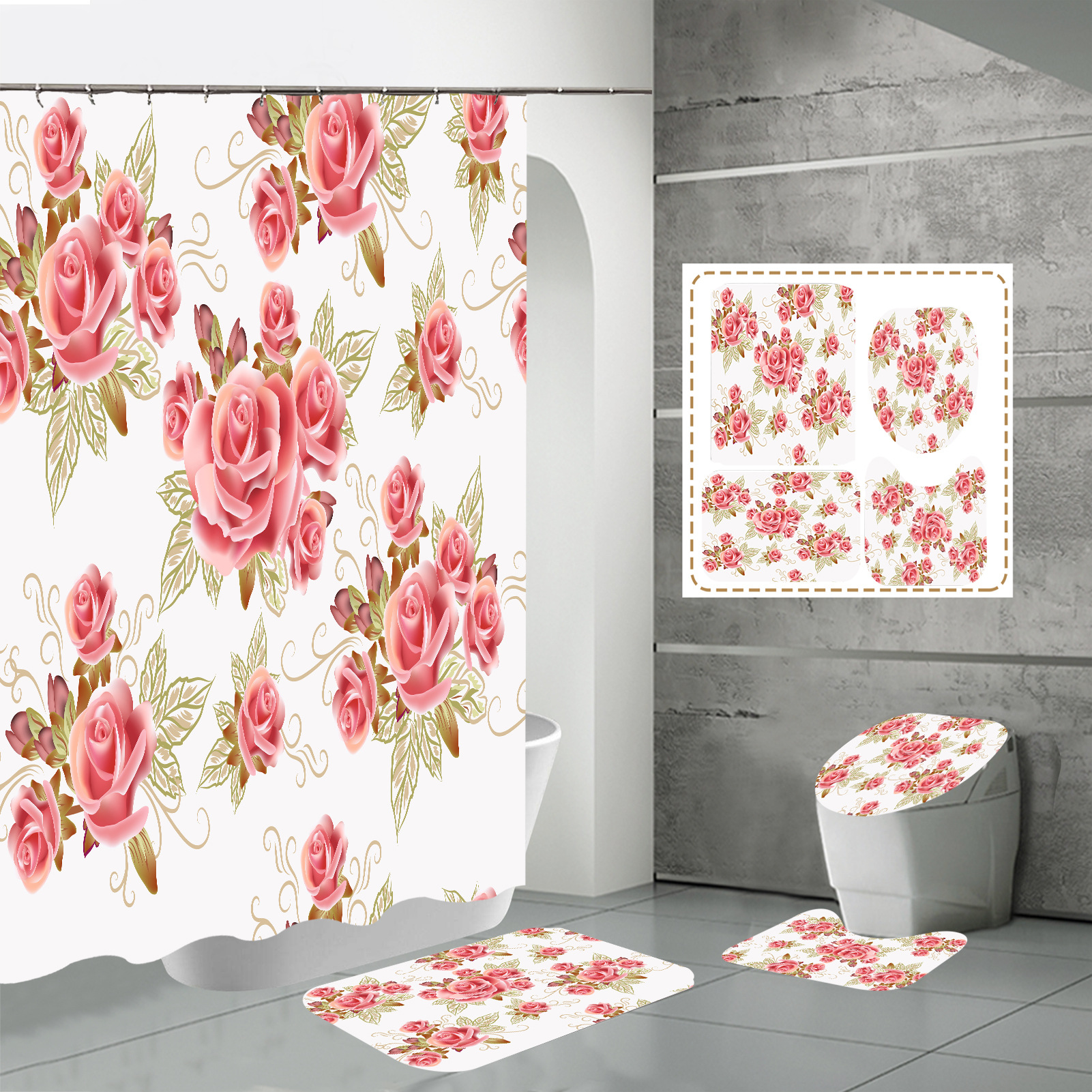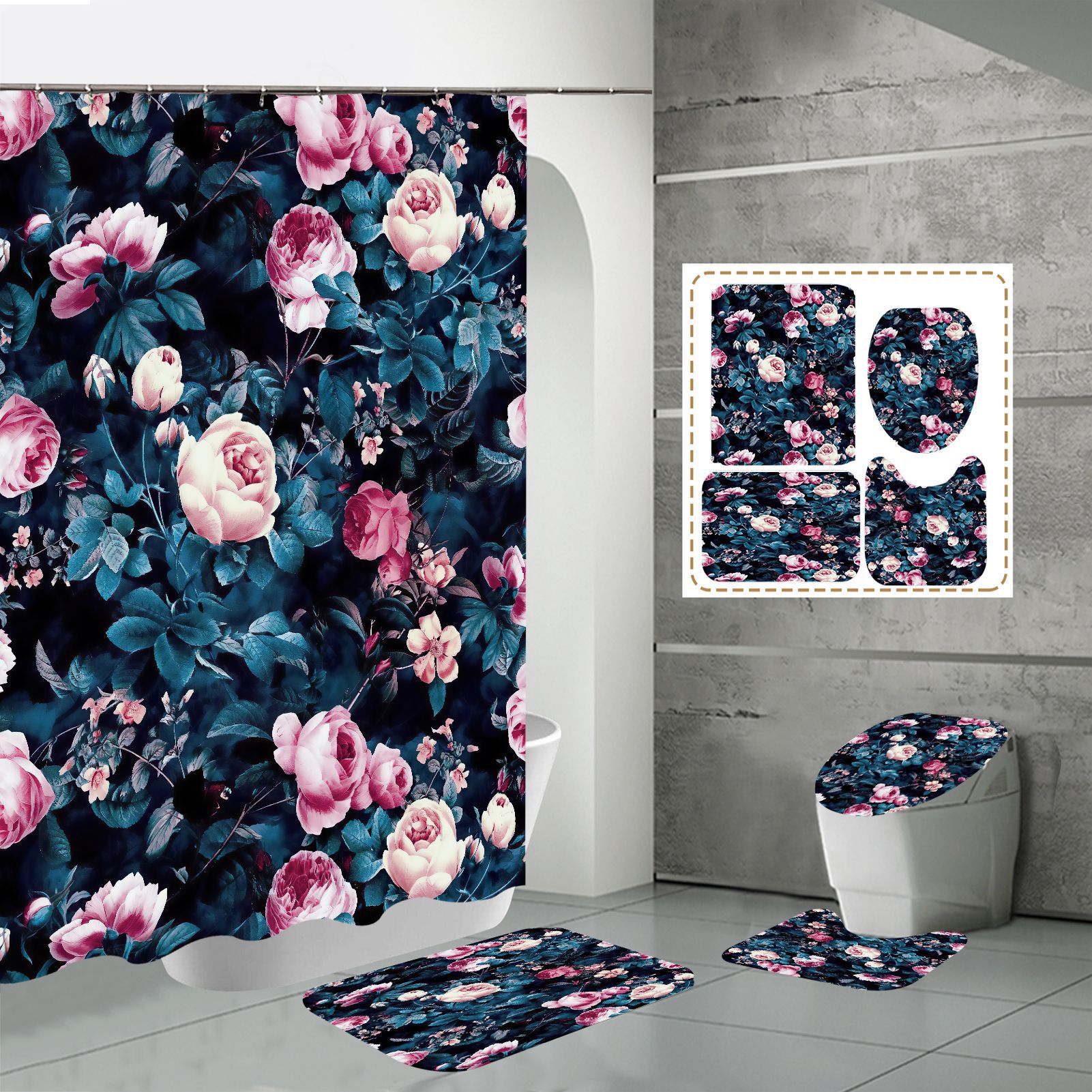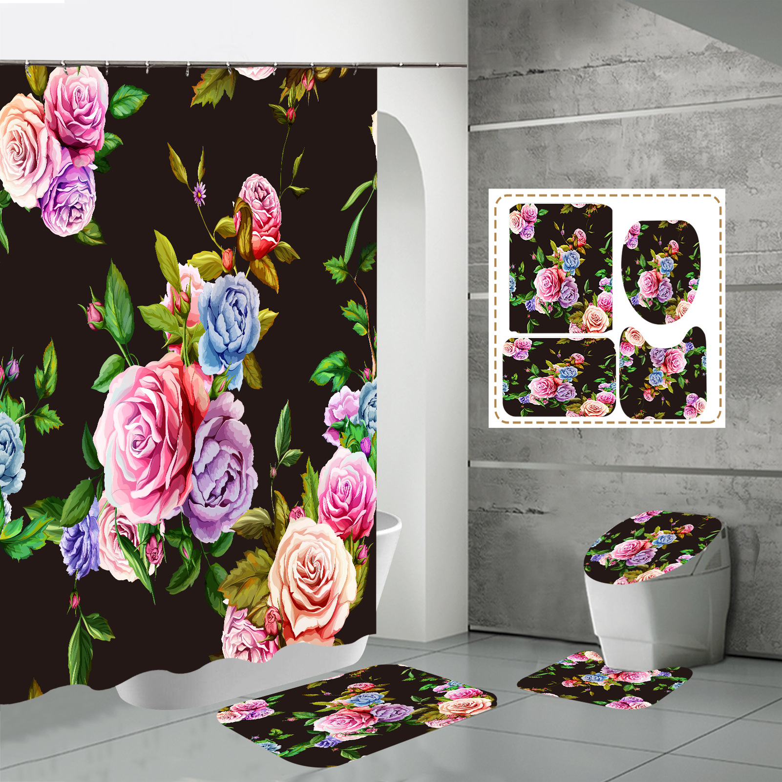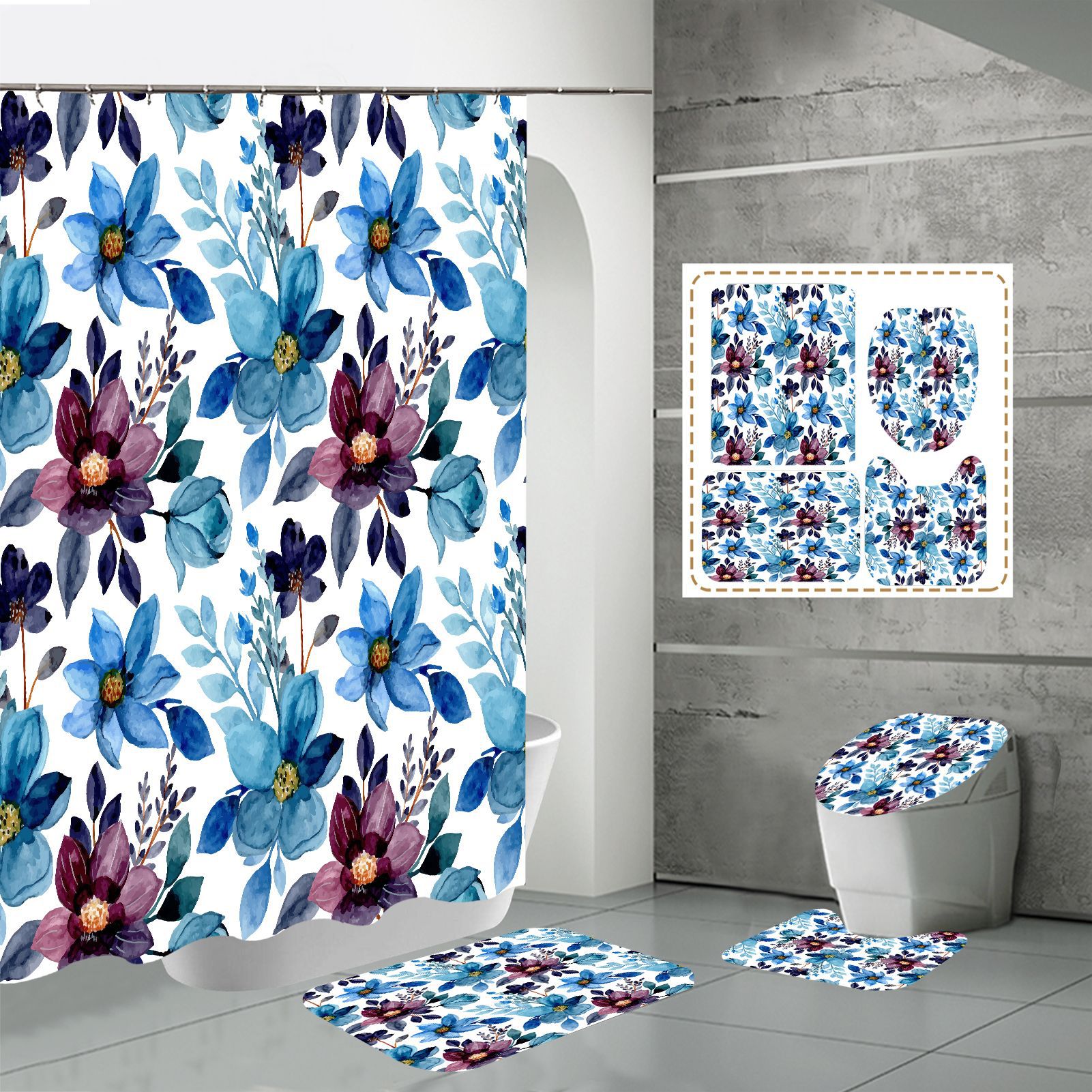Specifications: three-piece floor mat U-shaped toilet cover-320g, four-piece set-shower curtain floor mat U-shaped Mat toilet lid 700g