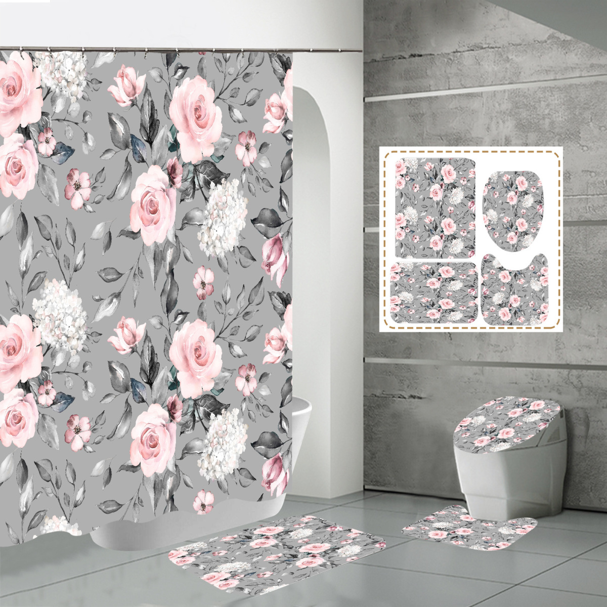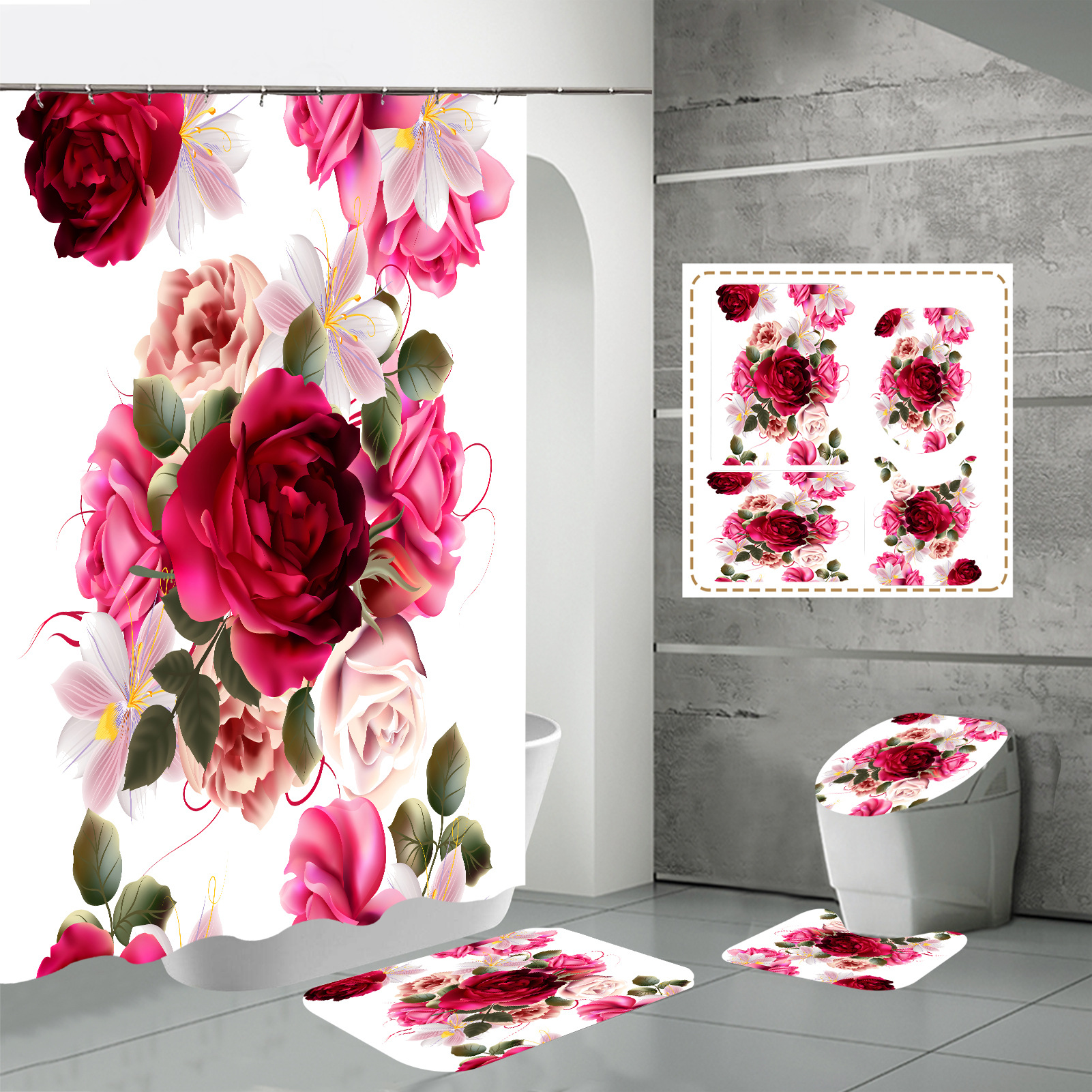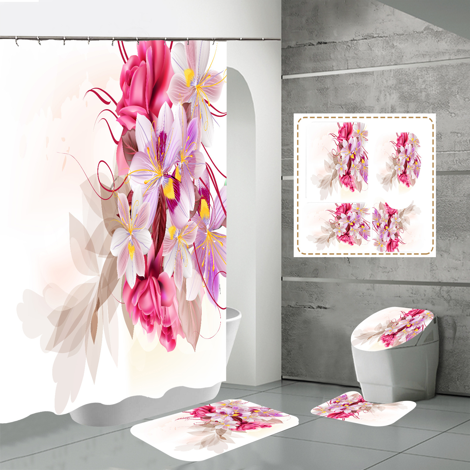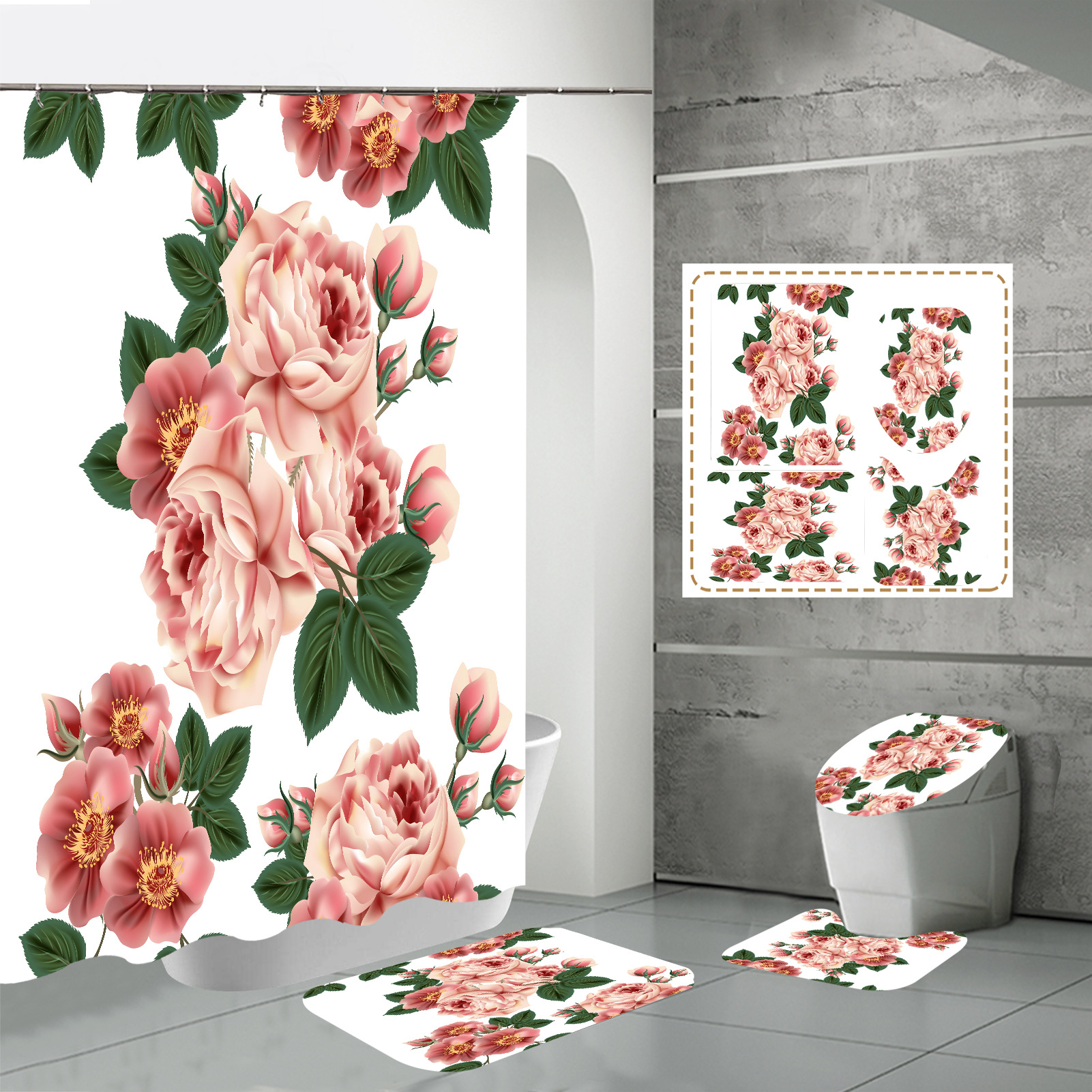 Specifications: three-piece floor mat U-shaped toilet cover-320g, four-piece set-shower curtain floor mat U-shaped Mat toilet lid 700g