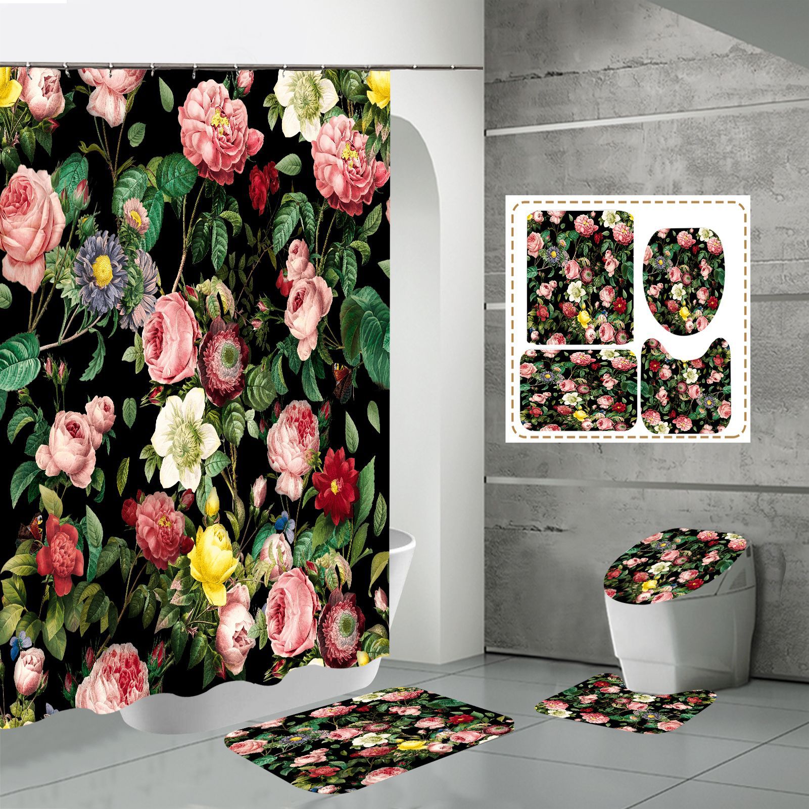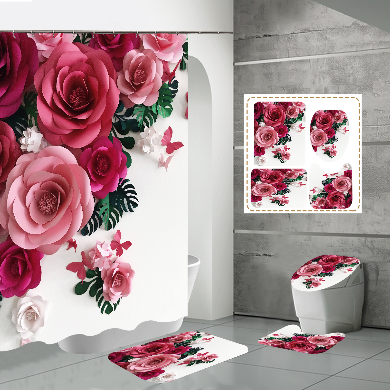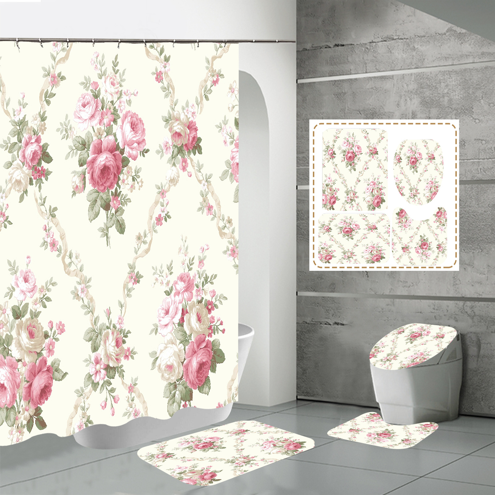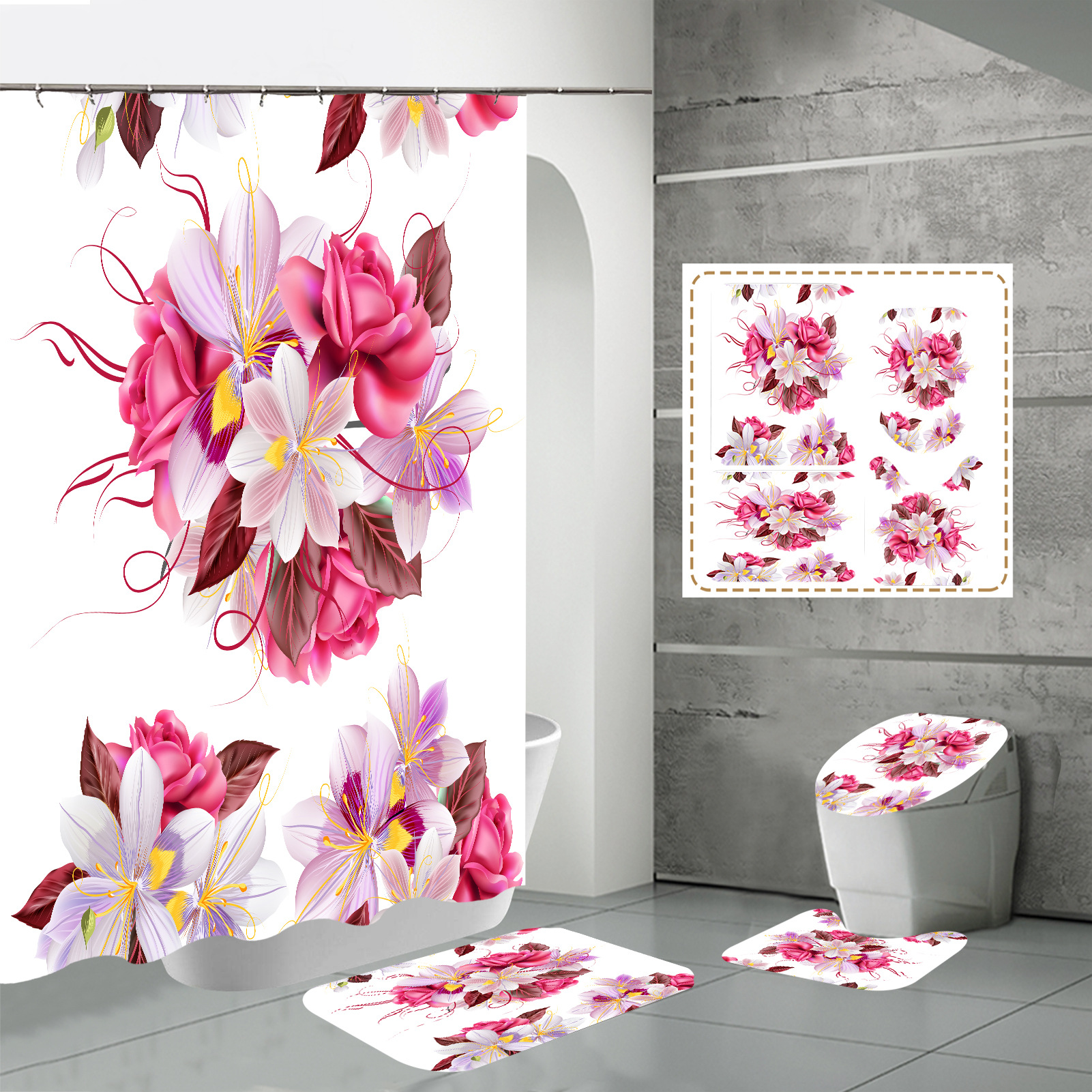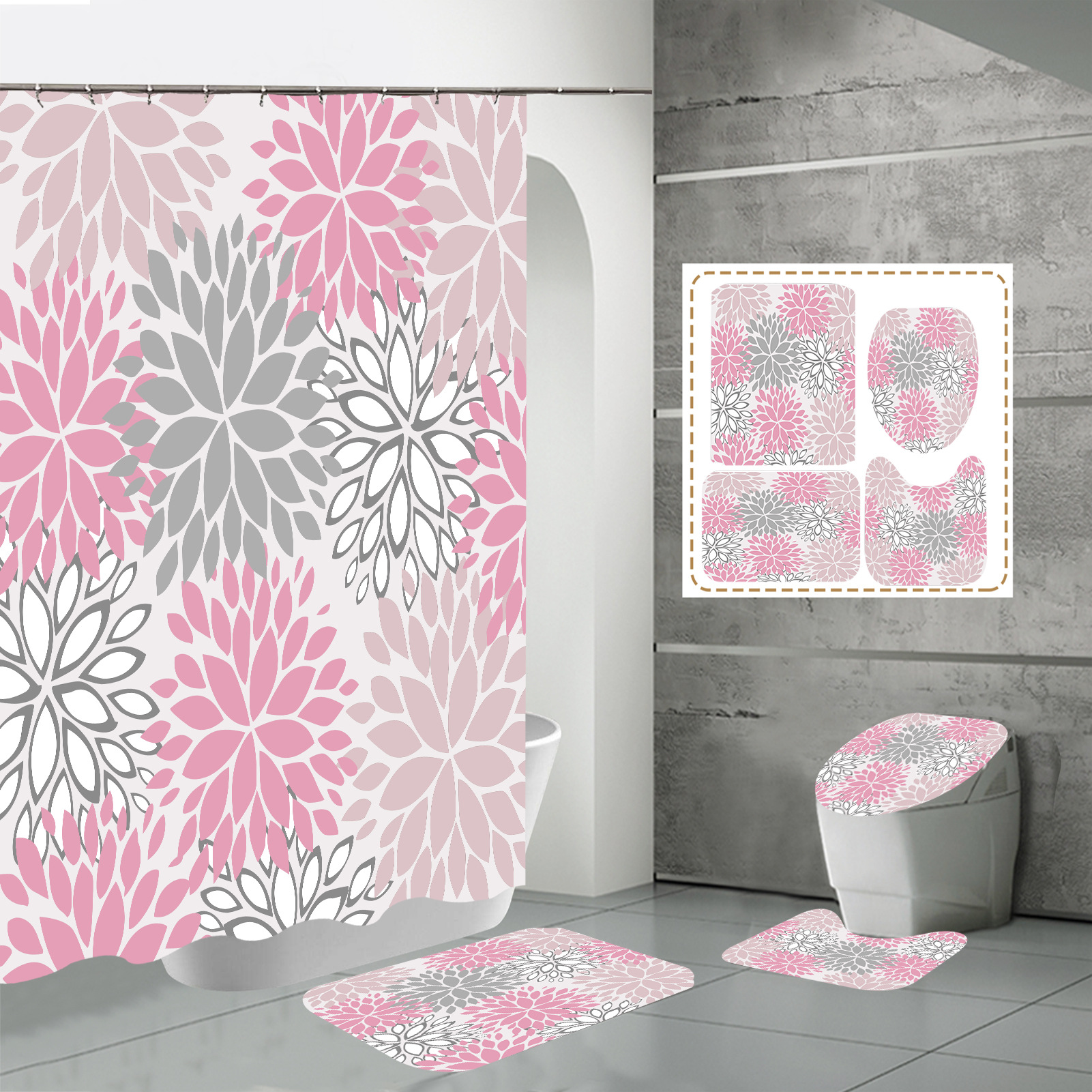 Specifications: three-piece floor mat U-shaped toilet cover-320g, four-piece set-shower curtain floor mat U-shaped Mat toilet lid 700g