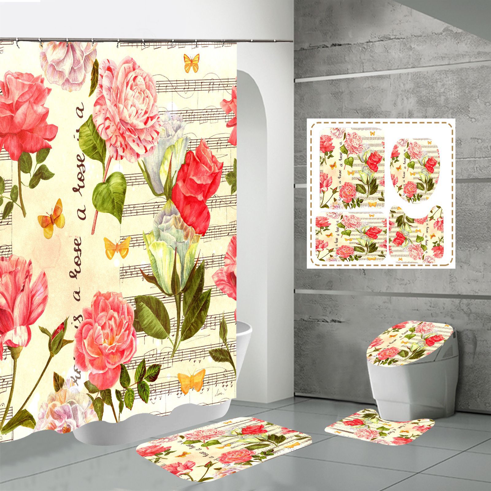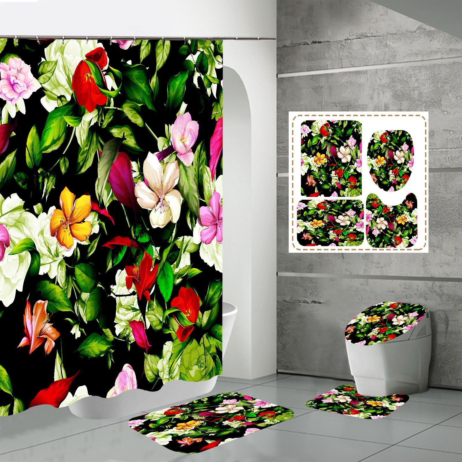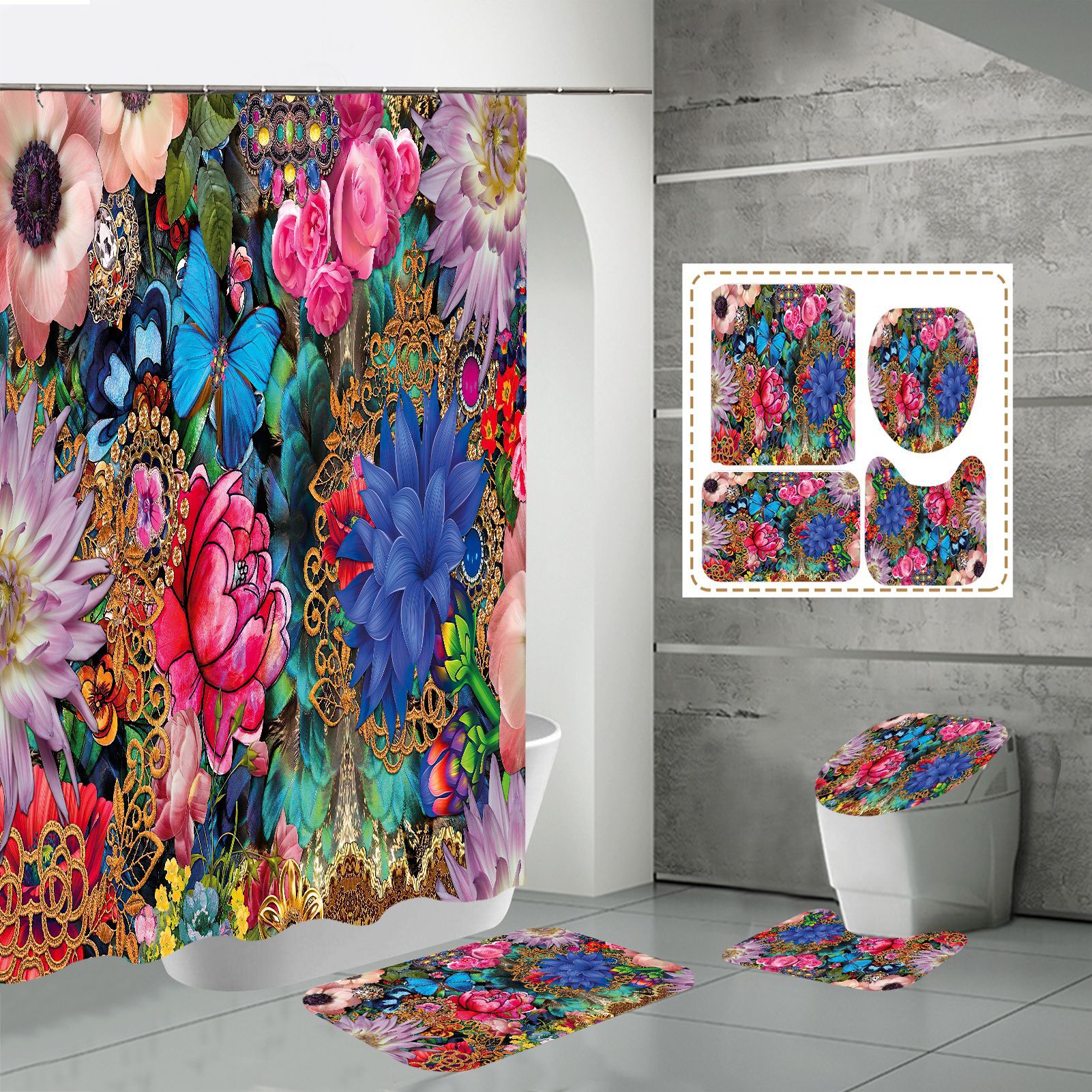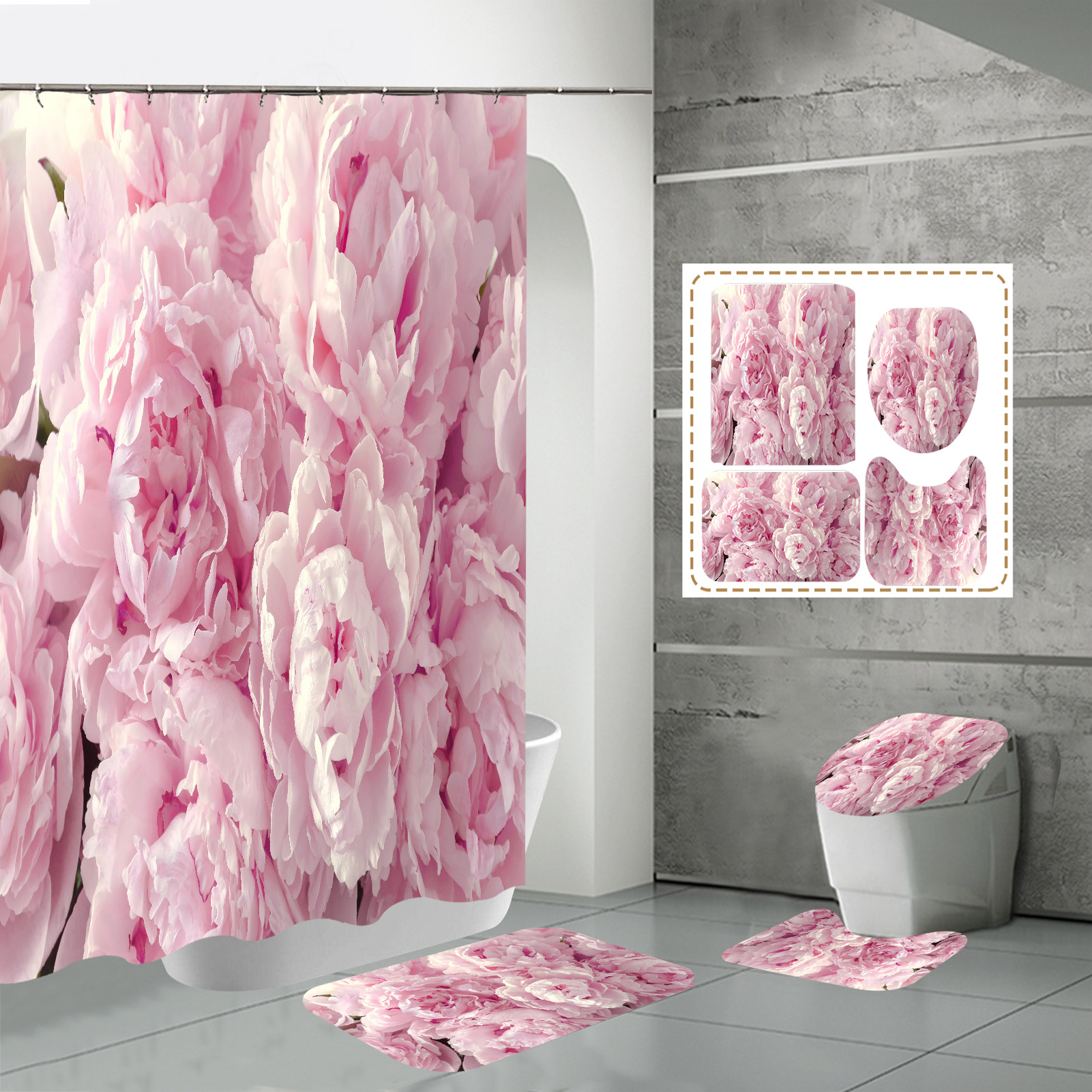 Specifications: three-piece floor mat U-shaped toilet cover-320g, four-piece set-shower curtain floor mat U-shaped Mat toilet lid 700g
