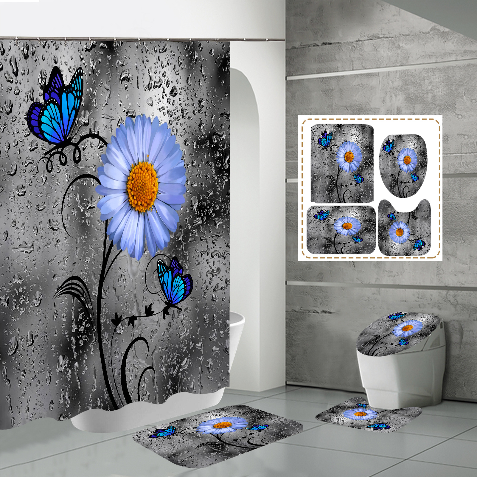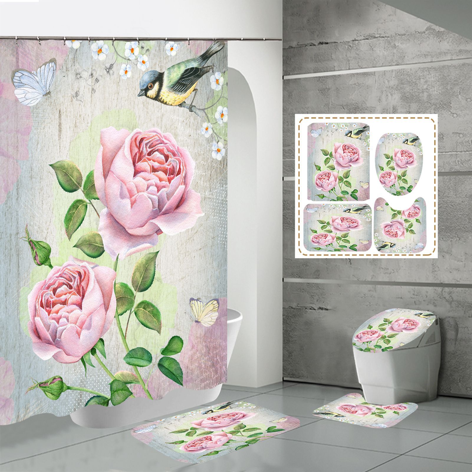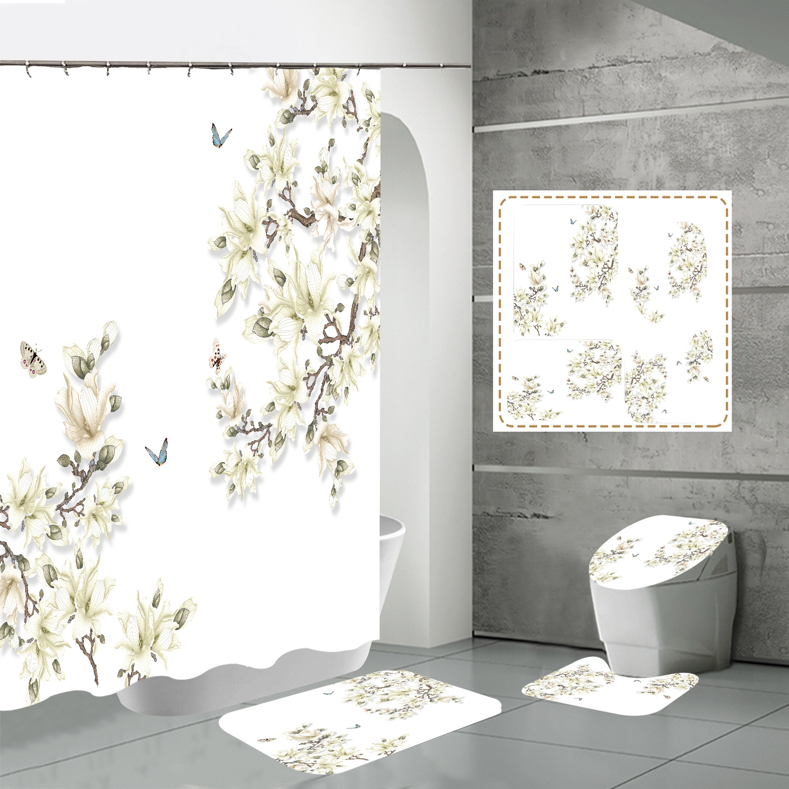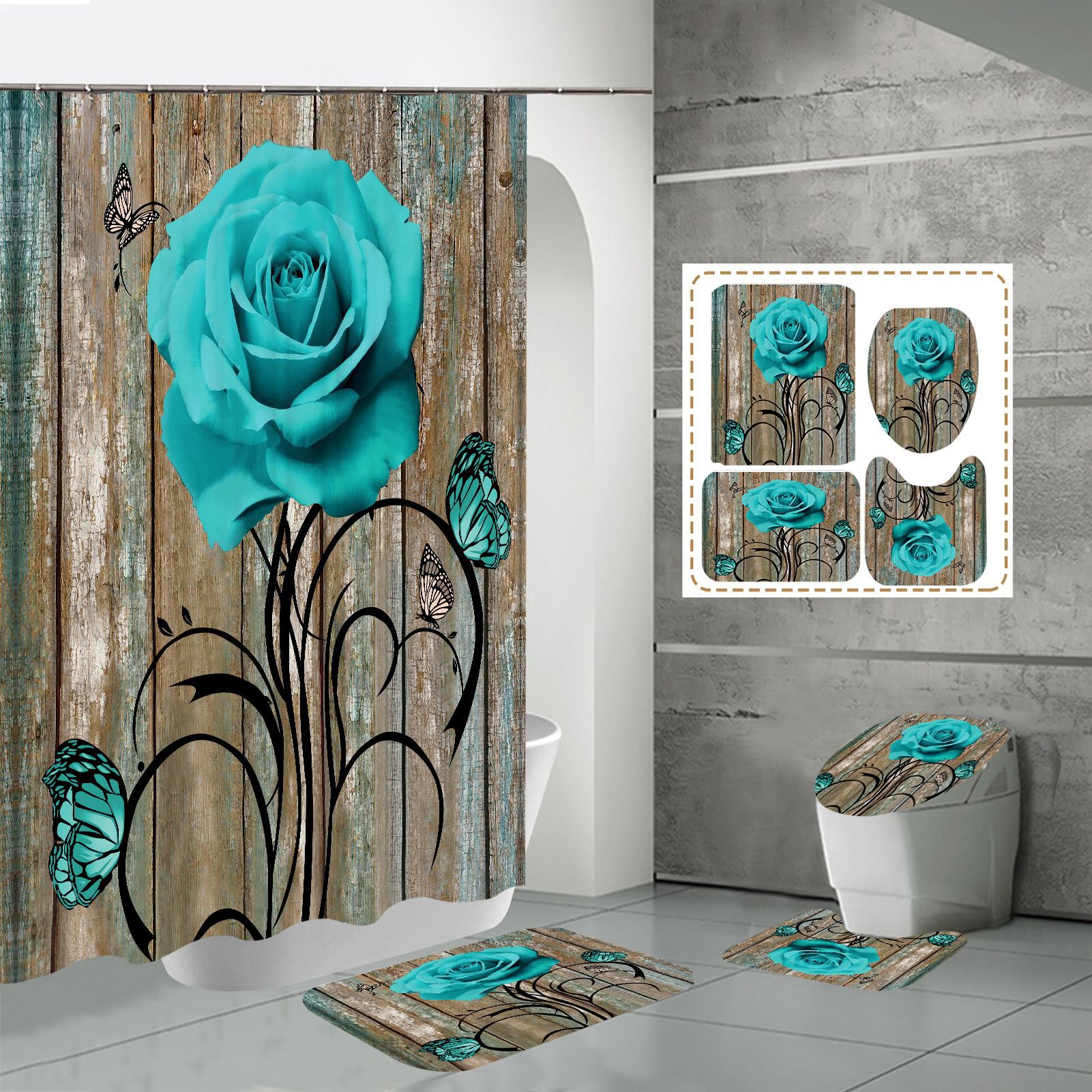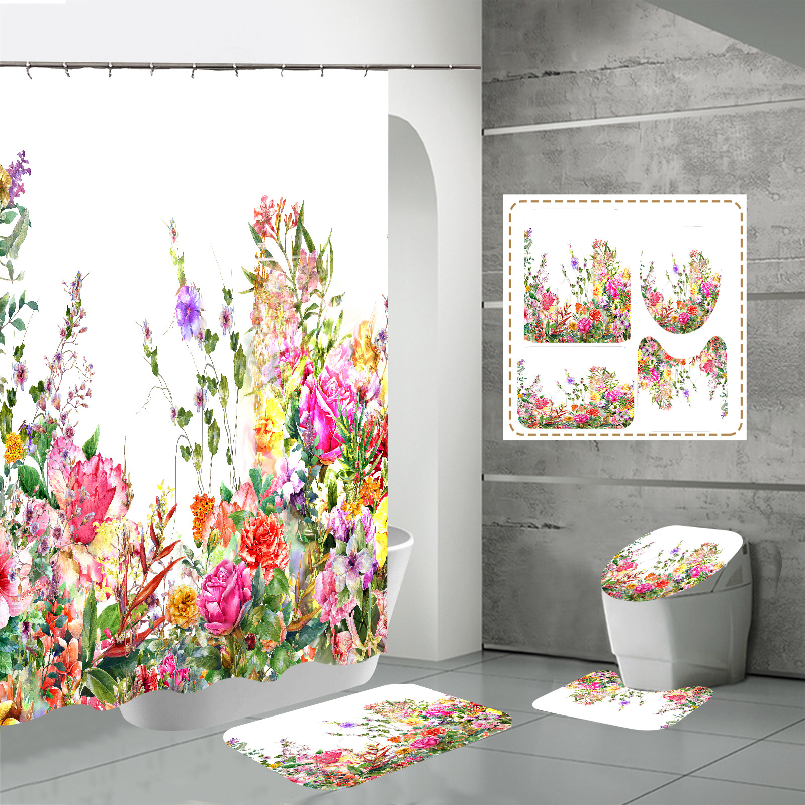 Specifications: three-piece floor mat U-shaped toilet cover-320g, four-piece set-shower curtain floor mat U-shaped Mat toilet lid 700g