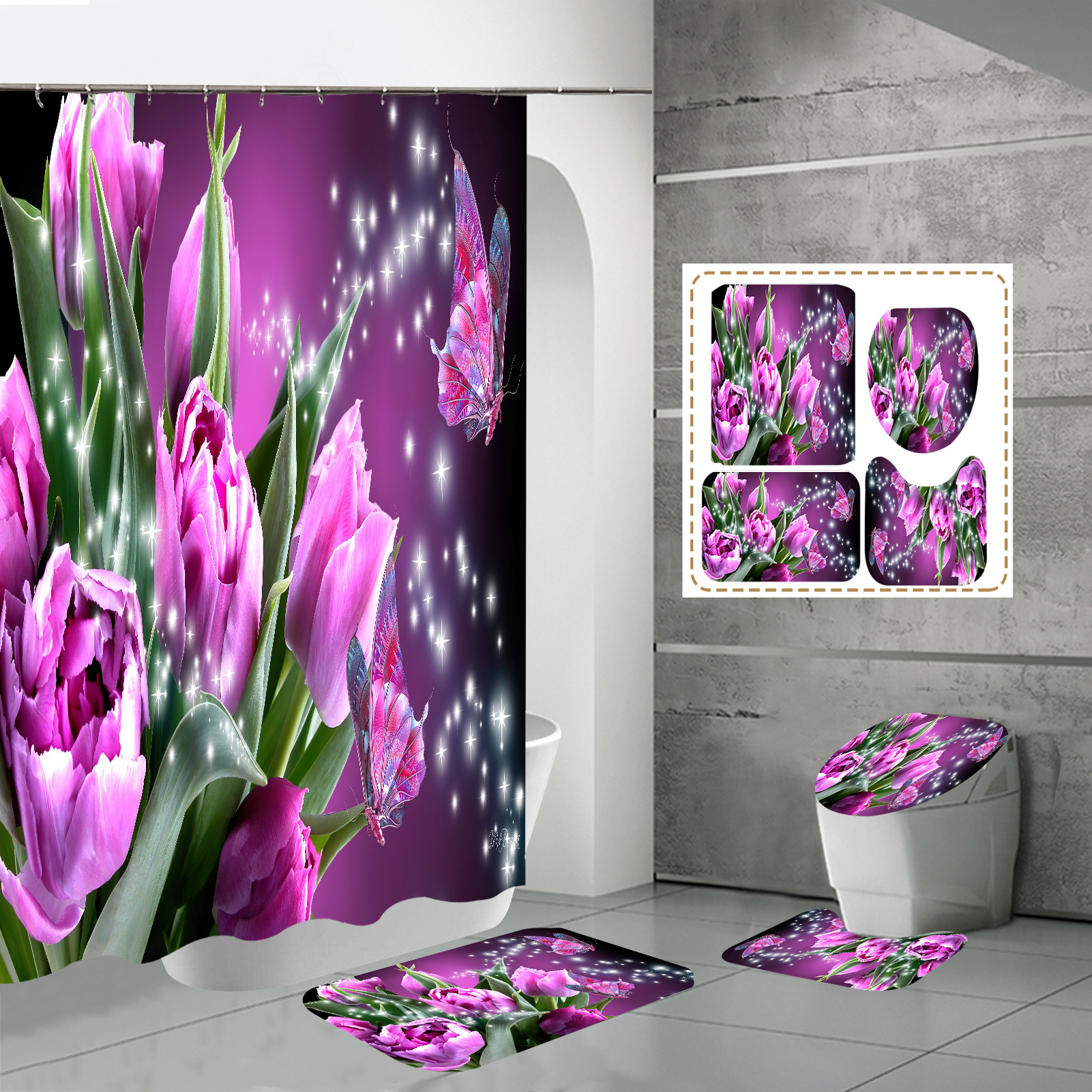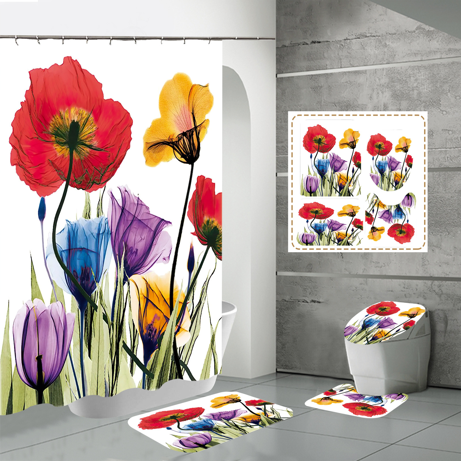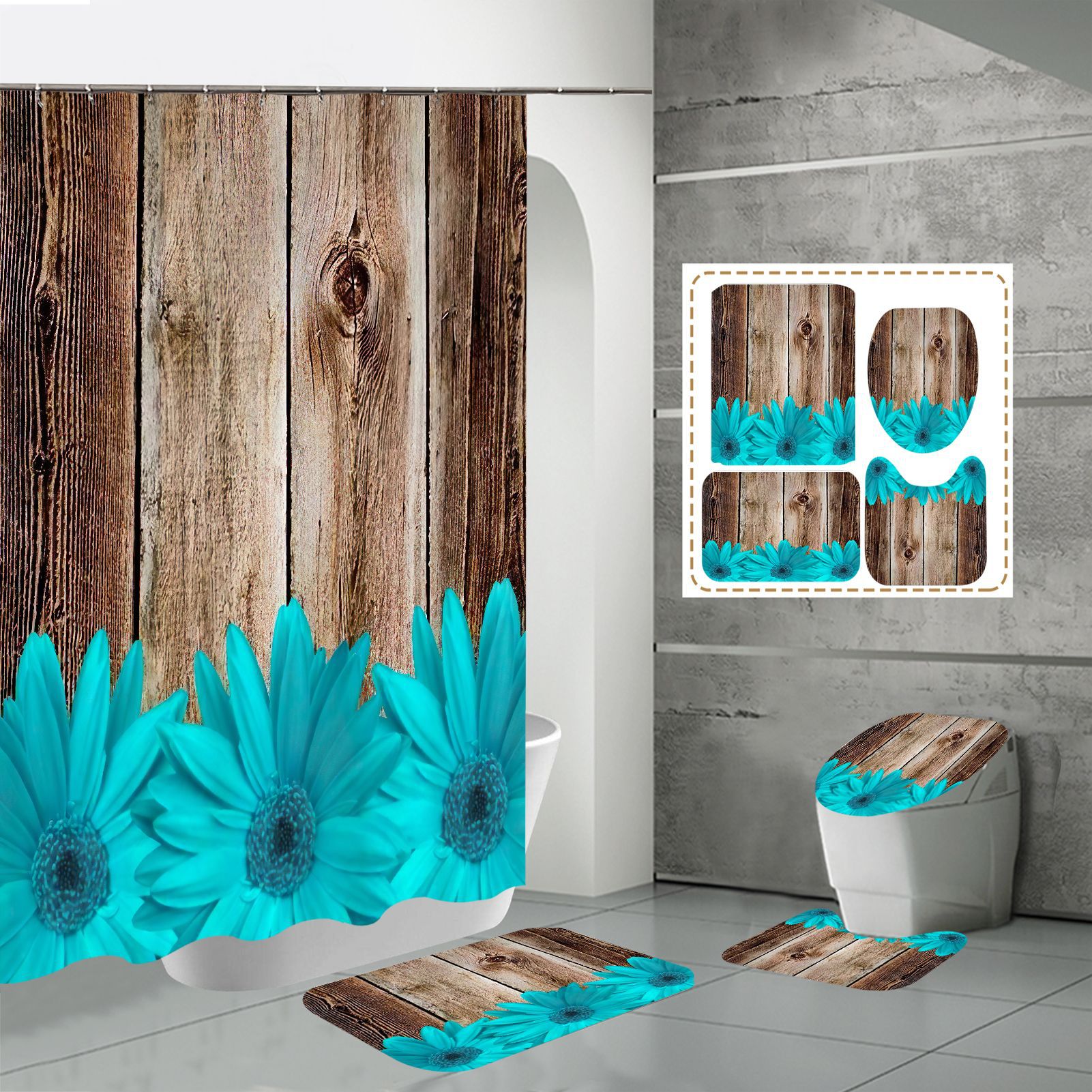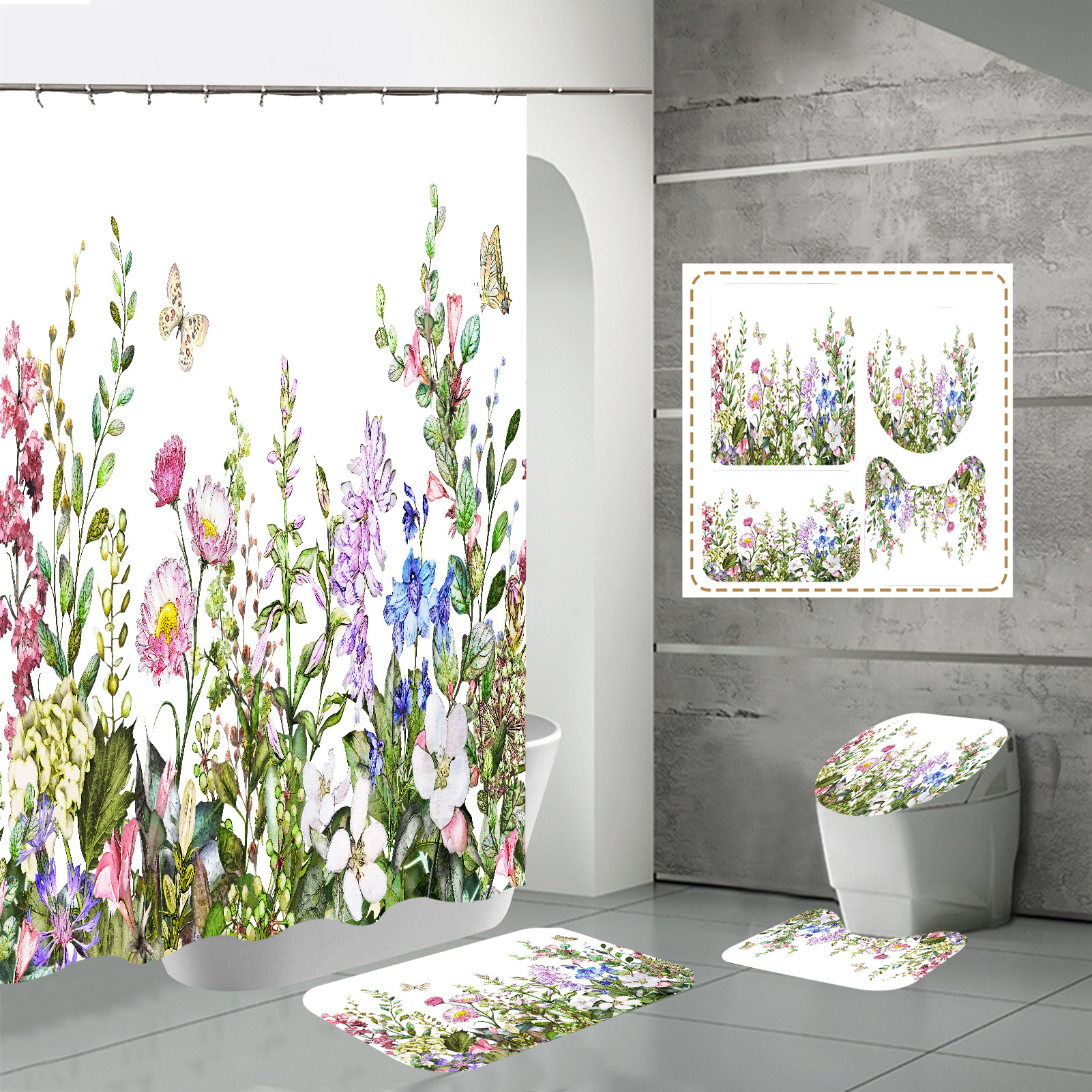 Specifications: three-piece floor mat U-shaped toilet cover-320g, four-piece set-shower curtain floor mat U-shaped Mat toilet lid 700g