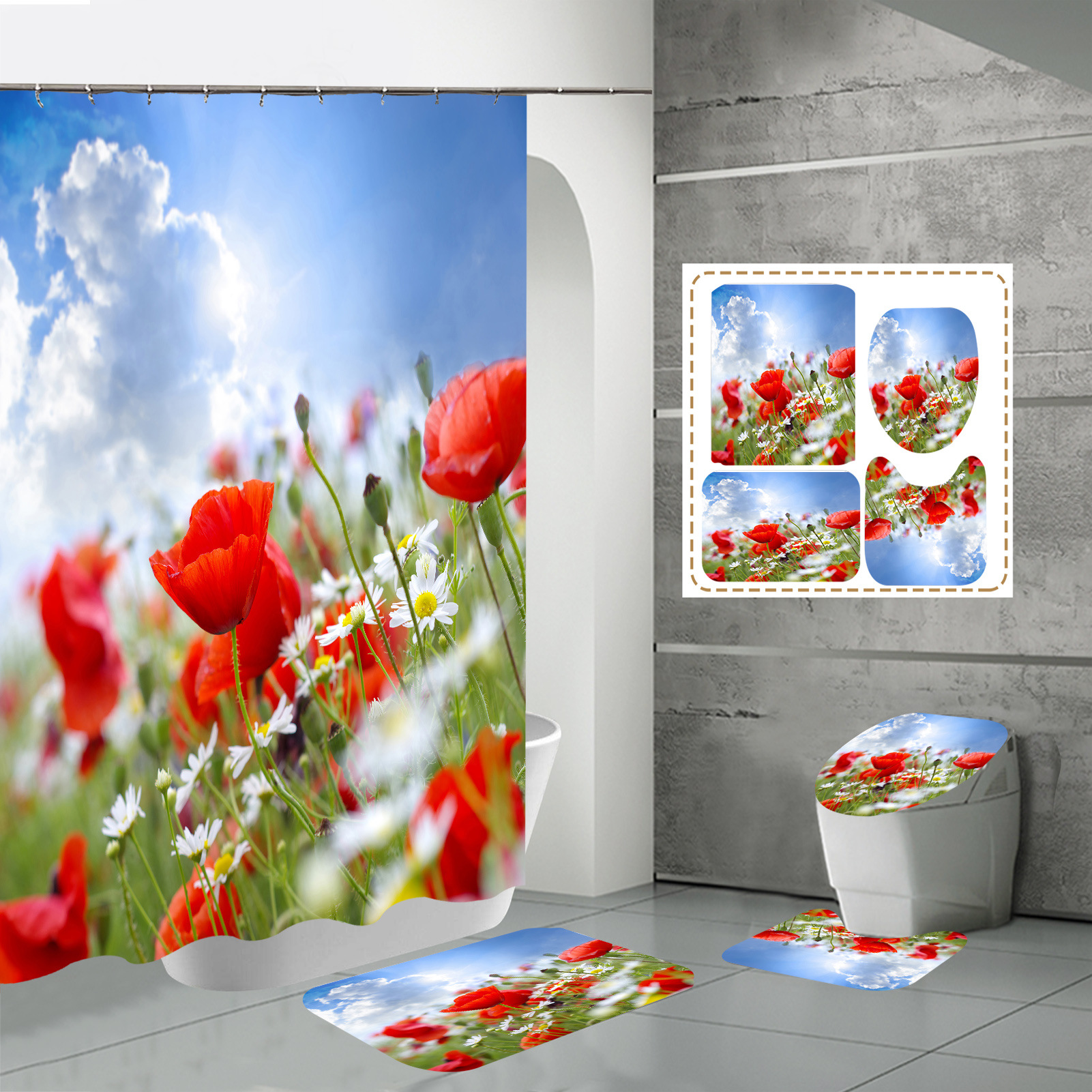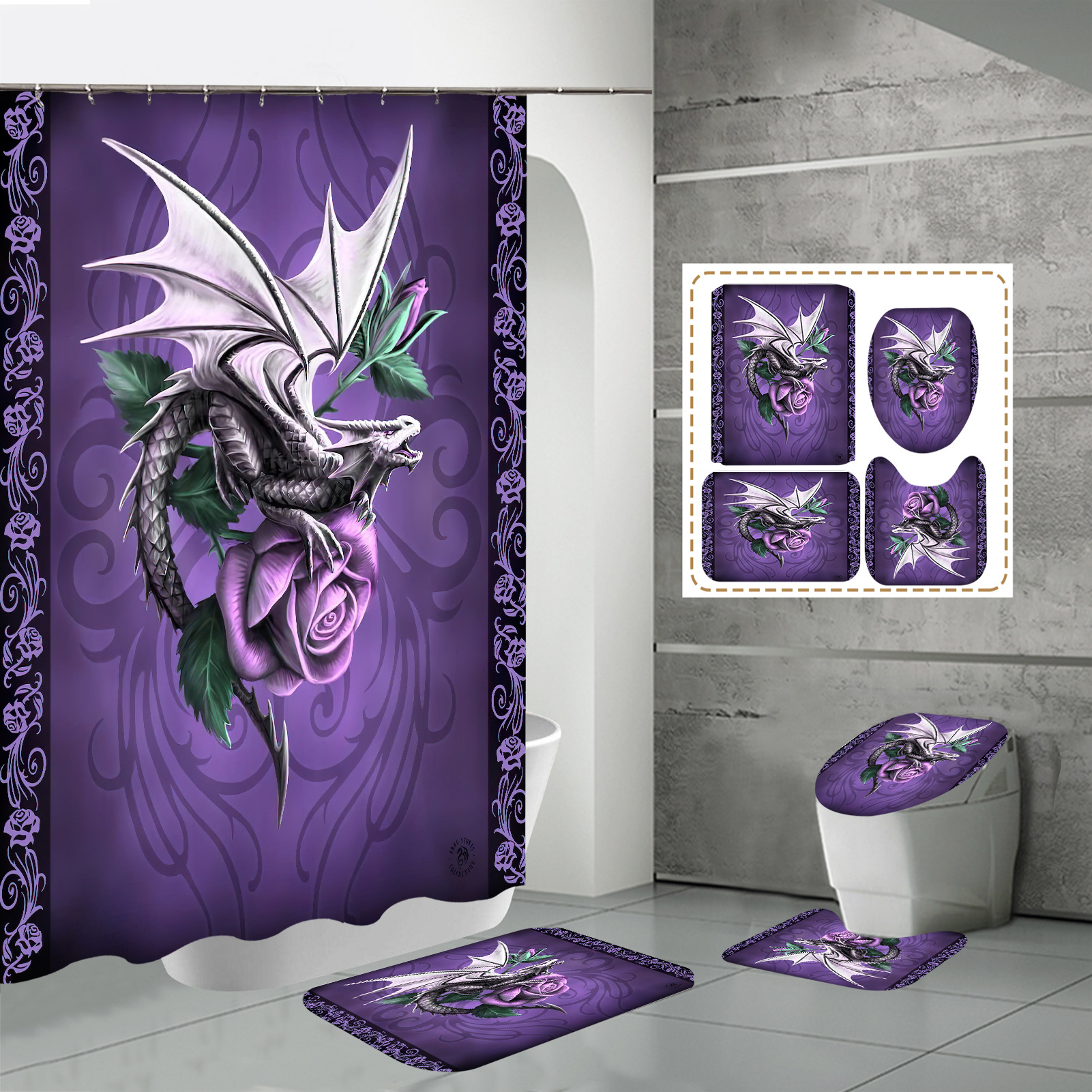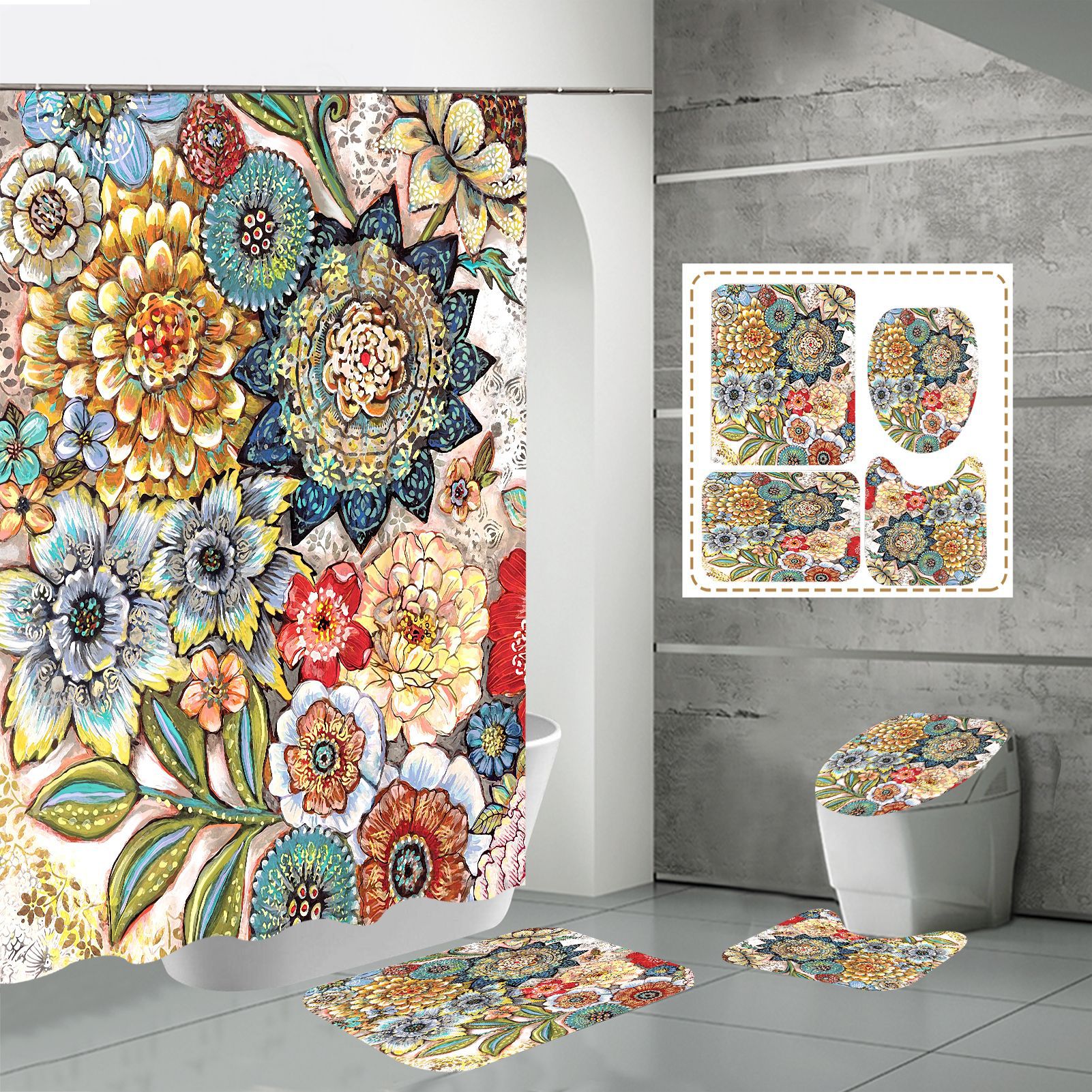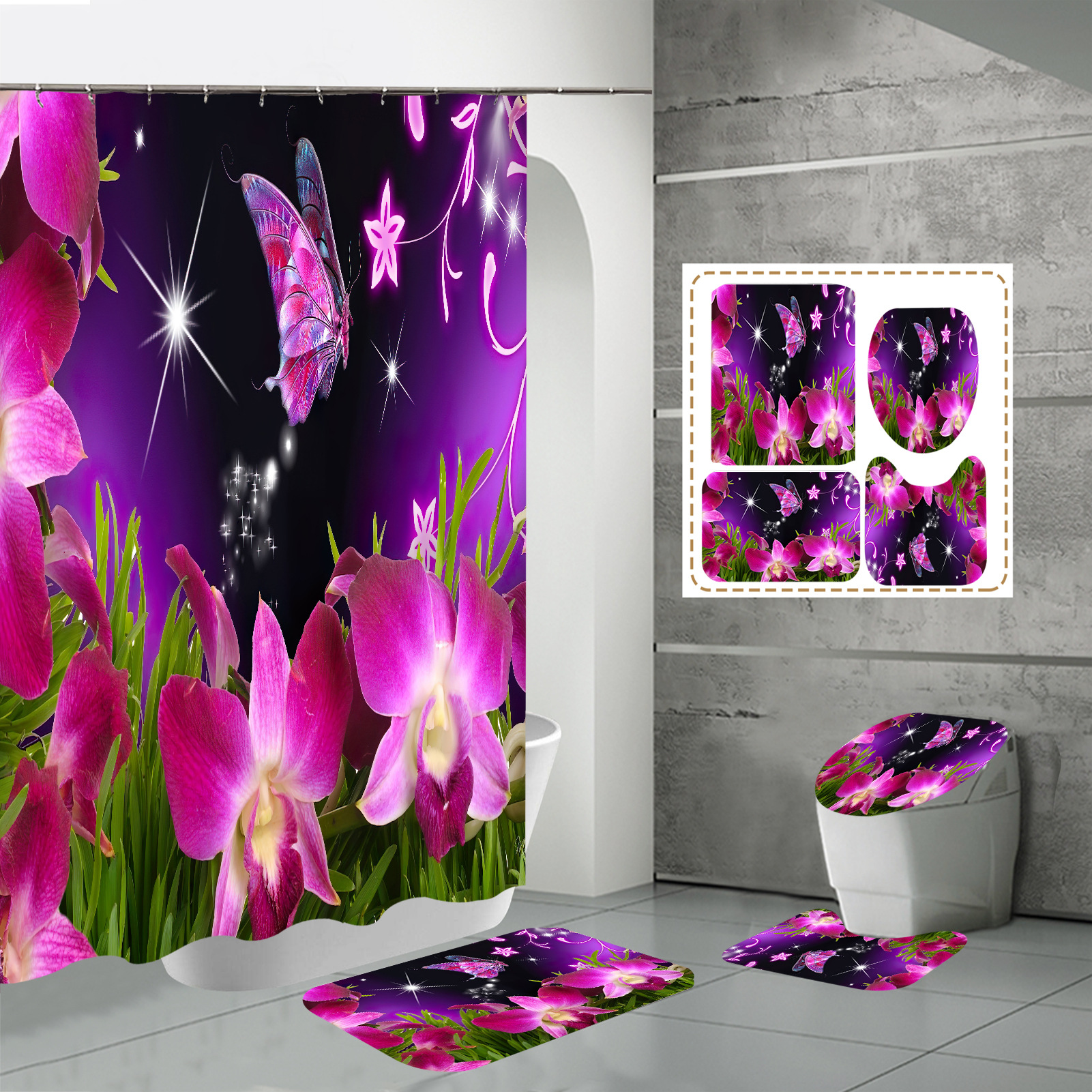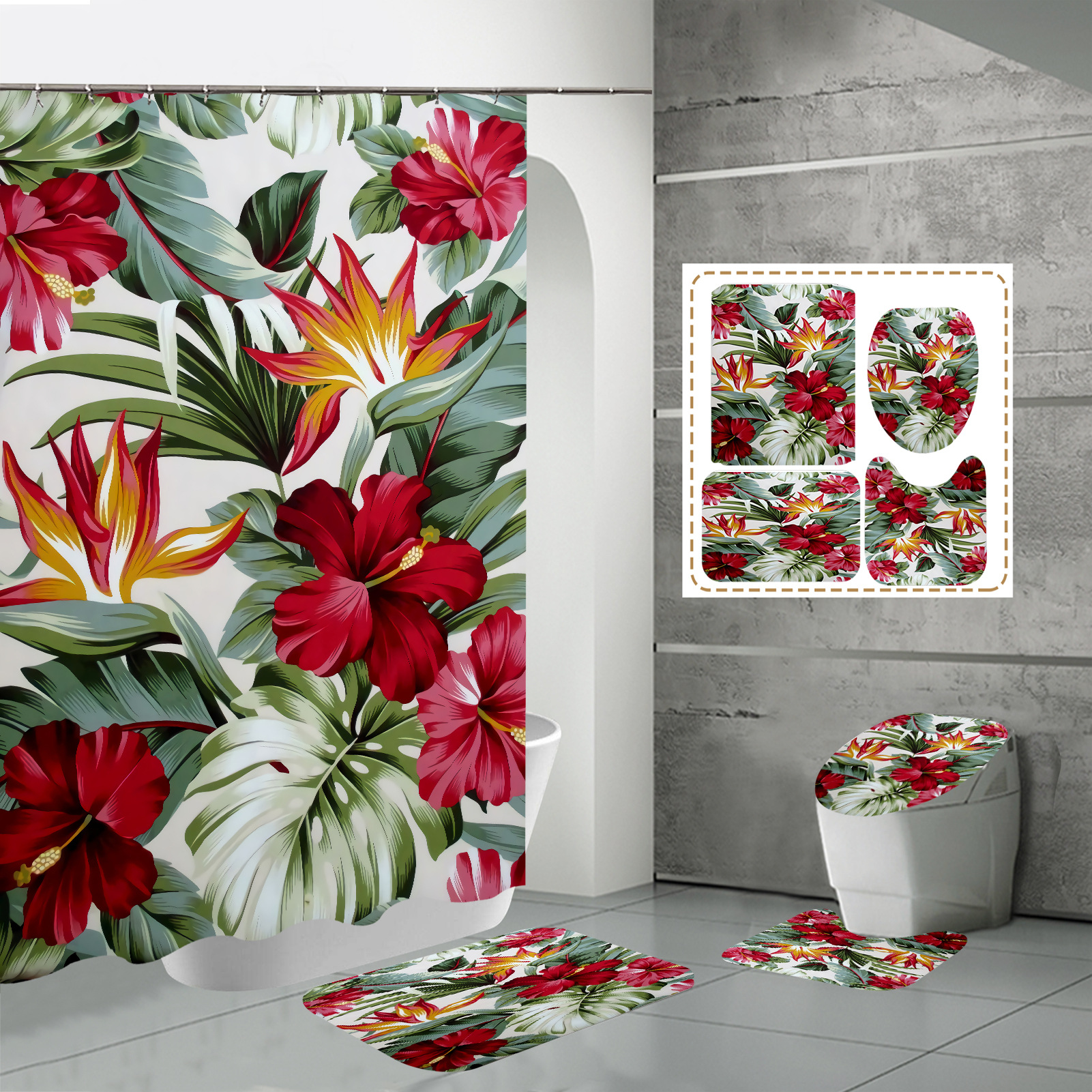 Specifications: three-piece floor mat U-shaped toilet cover-320g, four-piece set-shower curtain floor mat U-shaped Mat toilet lid 700g