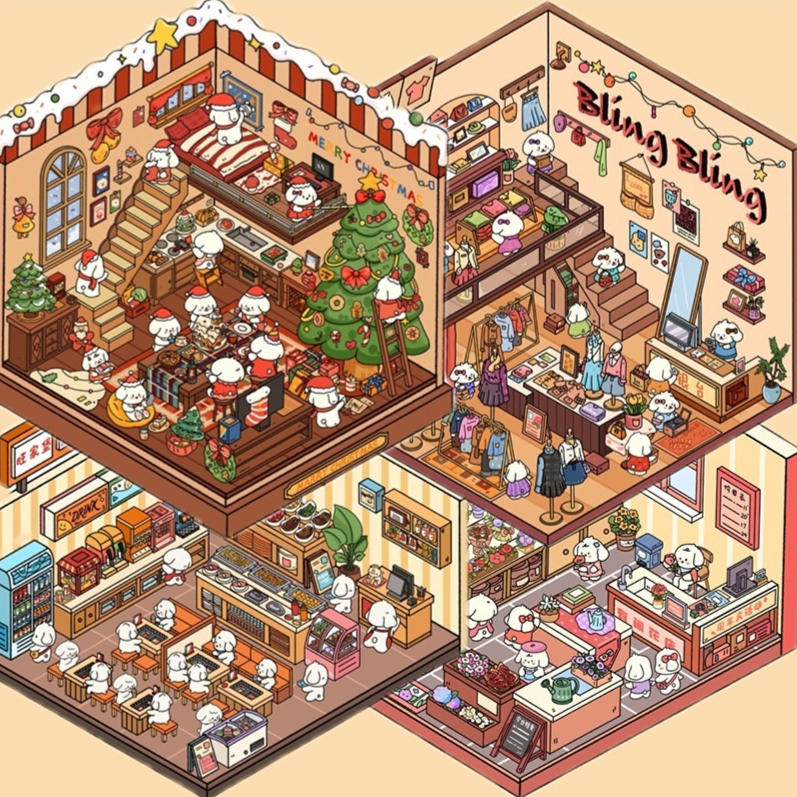 Color: Brome puppy Bobo clothing store, brome puppy Bobo flower shop, brome puppy Bobo wangjiabao hot pot restaurant, brome puppy Bobo Christmas