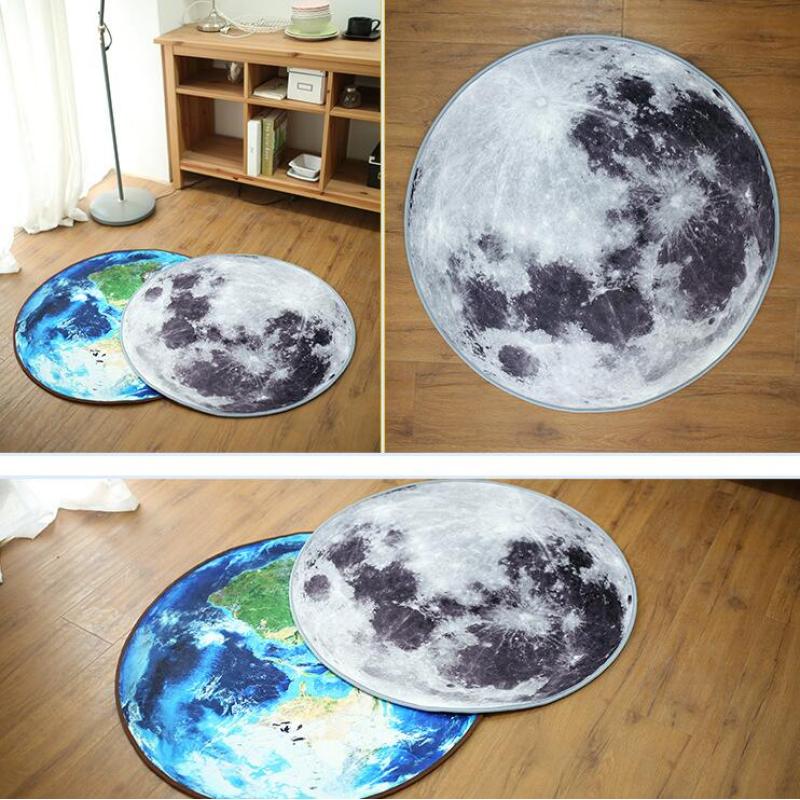 3D Moon And Earth Round Rug