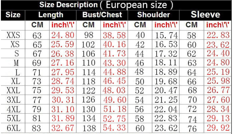 Size: XXS,XS,S,M,L,XL,XXL, XXL,XXXXL,5XL,6XL
