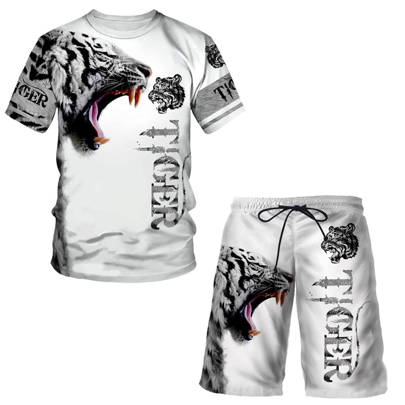 Features:Round neck animal print short sleeves