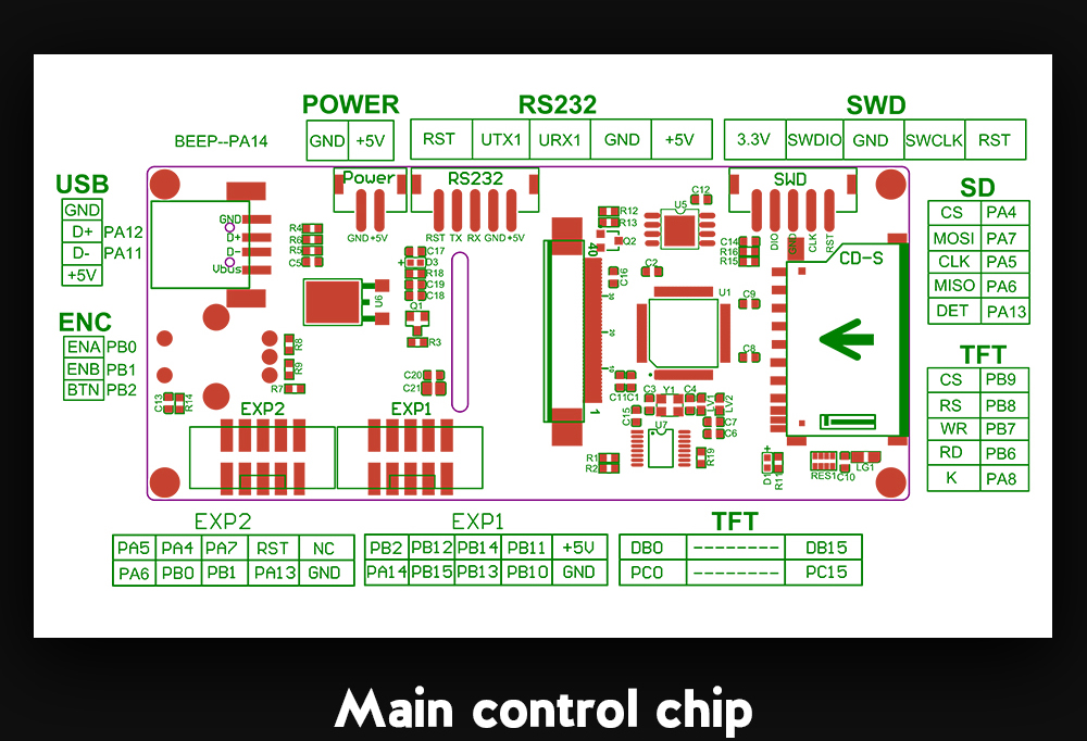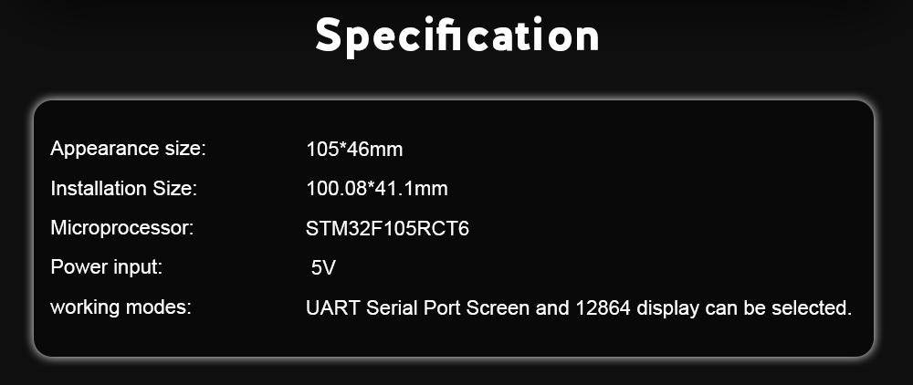 working modes:UART Serial Port Screen and 12864 display can be selected.