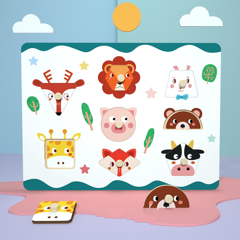 3D Puzzles Cartoon Animals Montessori Wooden Puzzles Hand Grab Boards Tangram Jigsaw Educational Toy For Baby Children Kids Gift