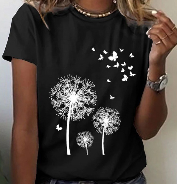 Features: Loose fitting, round neck
