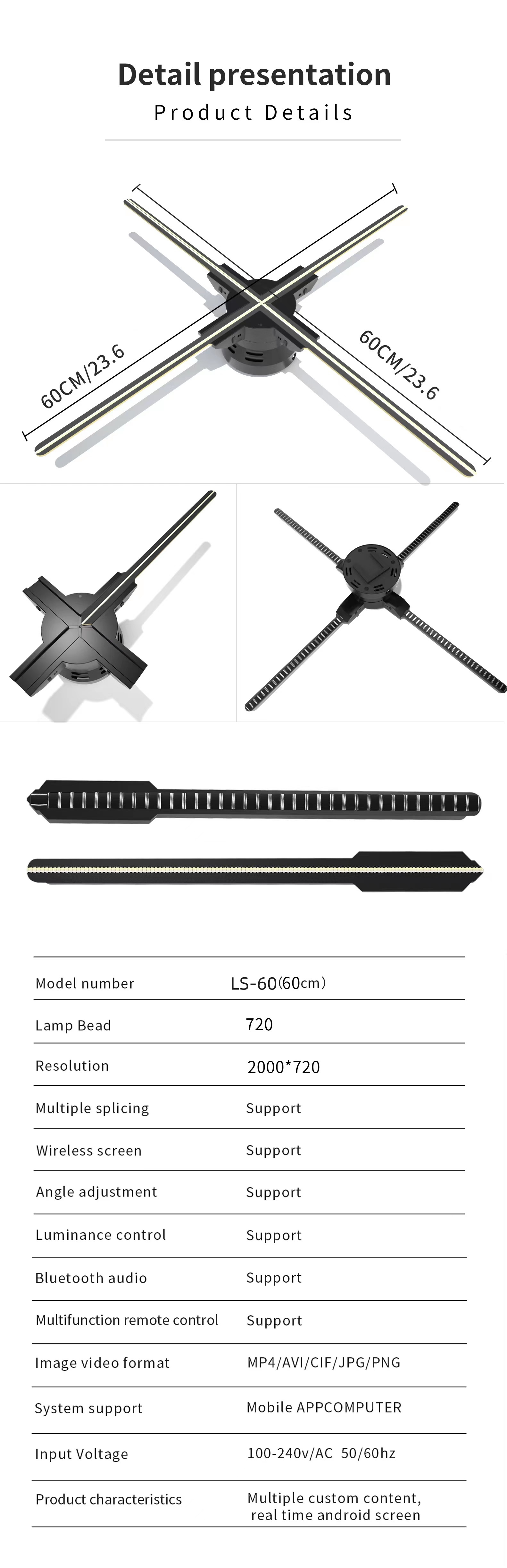 3Dhologramfan, 60cm 3Dhologramfan Projector HD 720 LED Holographic Christmas Tree Advertising Display With Remote Bluetooth WiFi, Video Library For Business,Bar,Halloween Missyou 23.6 Inch