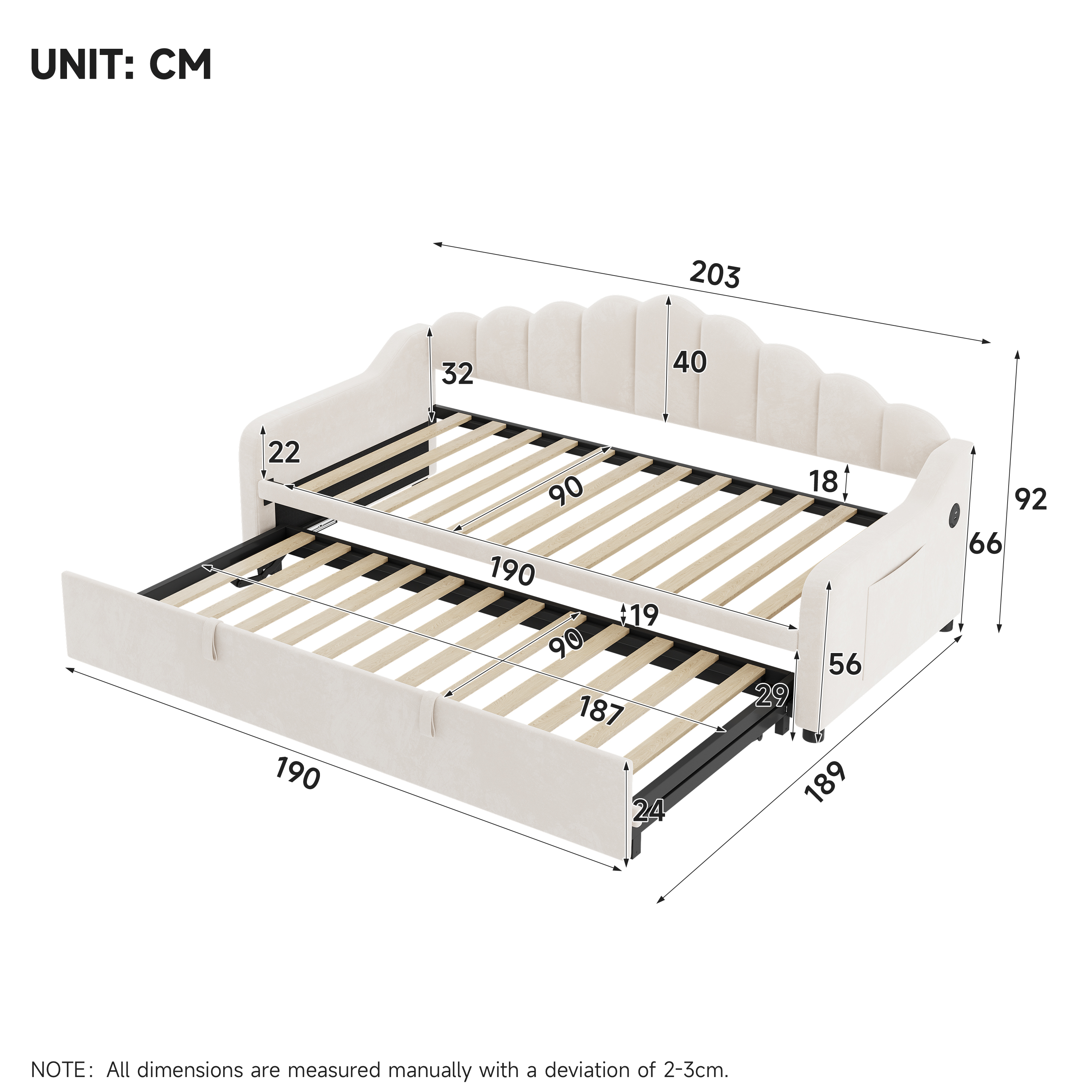 TipsDue to manual measurement data, there may be an error of 2-3 cm. Due to the effect of light and shadow, our pictures and the real thing may have a certain colour difference, this is normal.