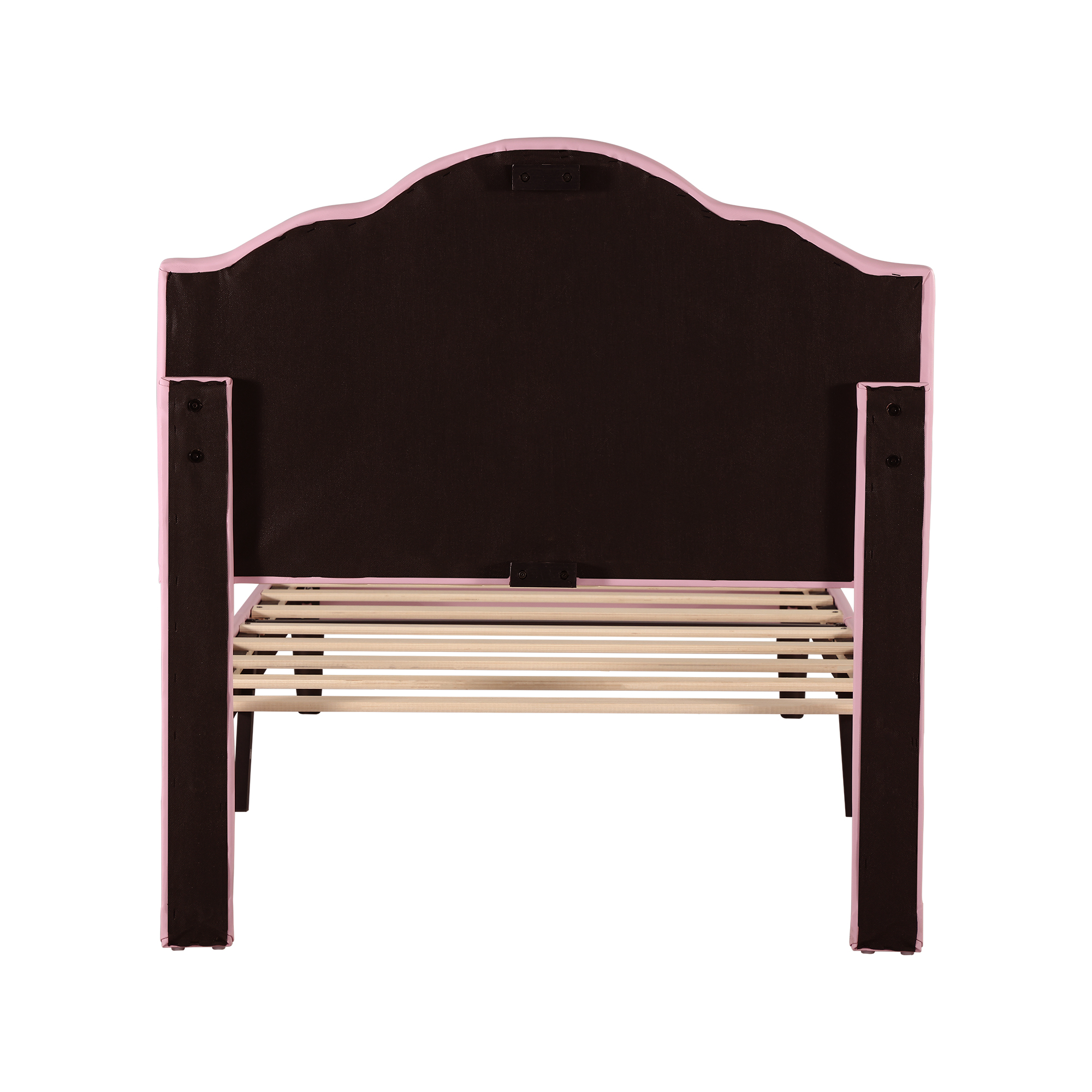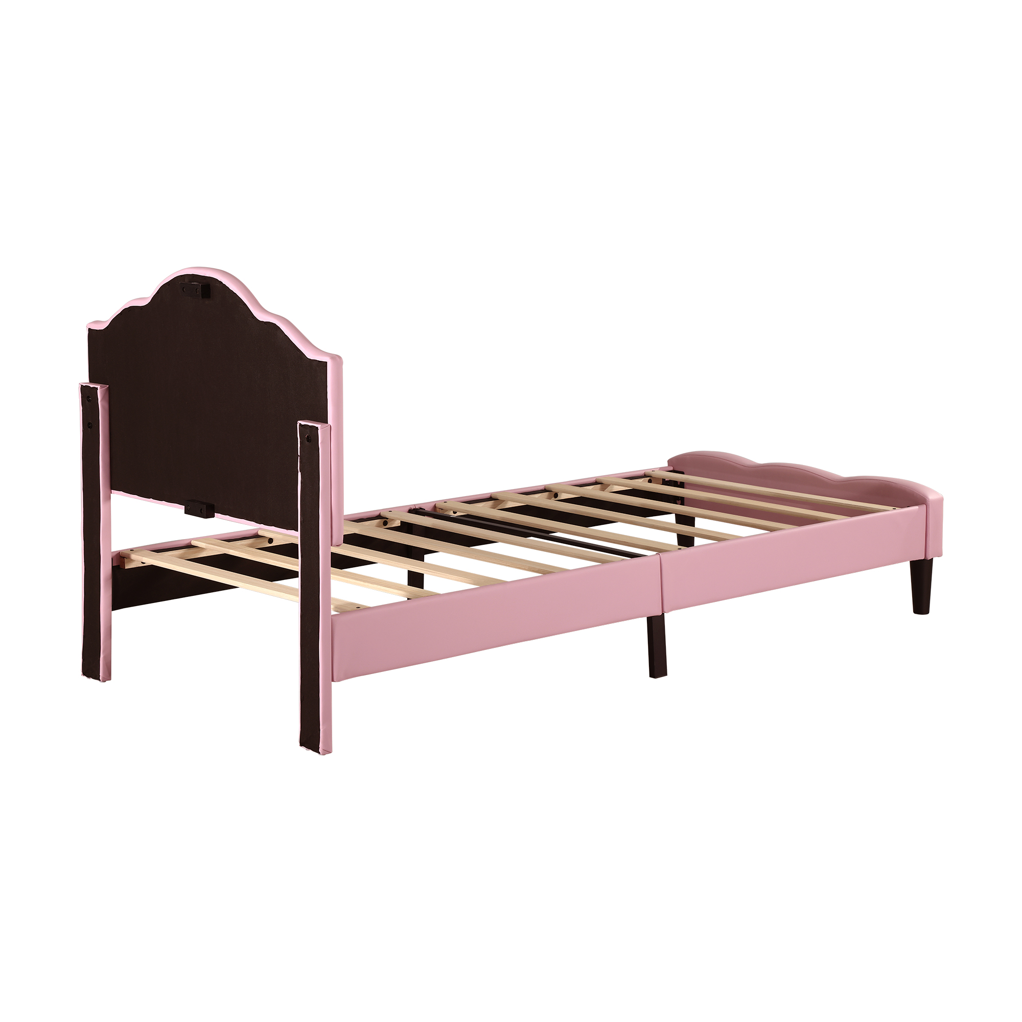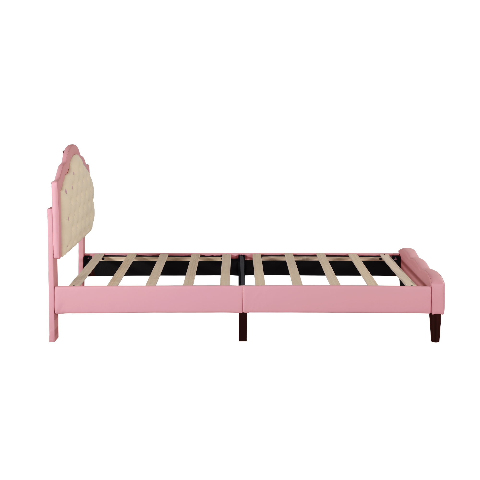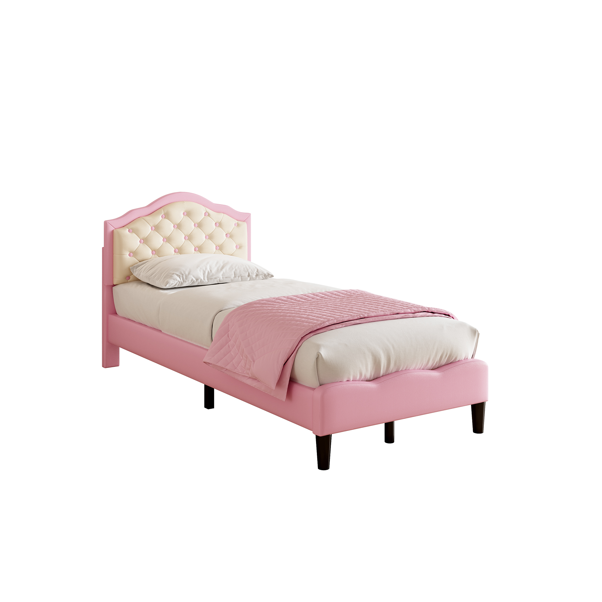 Product Name:3ft Single Upholstered Bed Frame with Adjustable Chic Button-Tufted Headboard, PU Faux Leather Bed Frame with Solid Wood Slat, No Box Spring Needed, Easy Assembly, Pink+Beige (No Mattress)