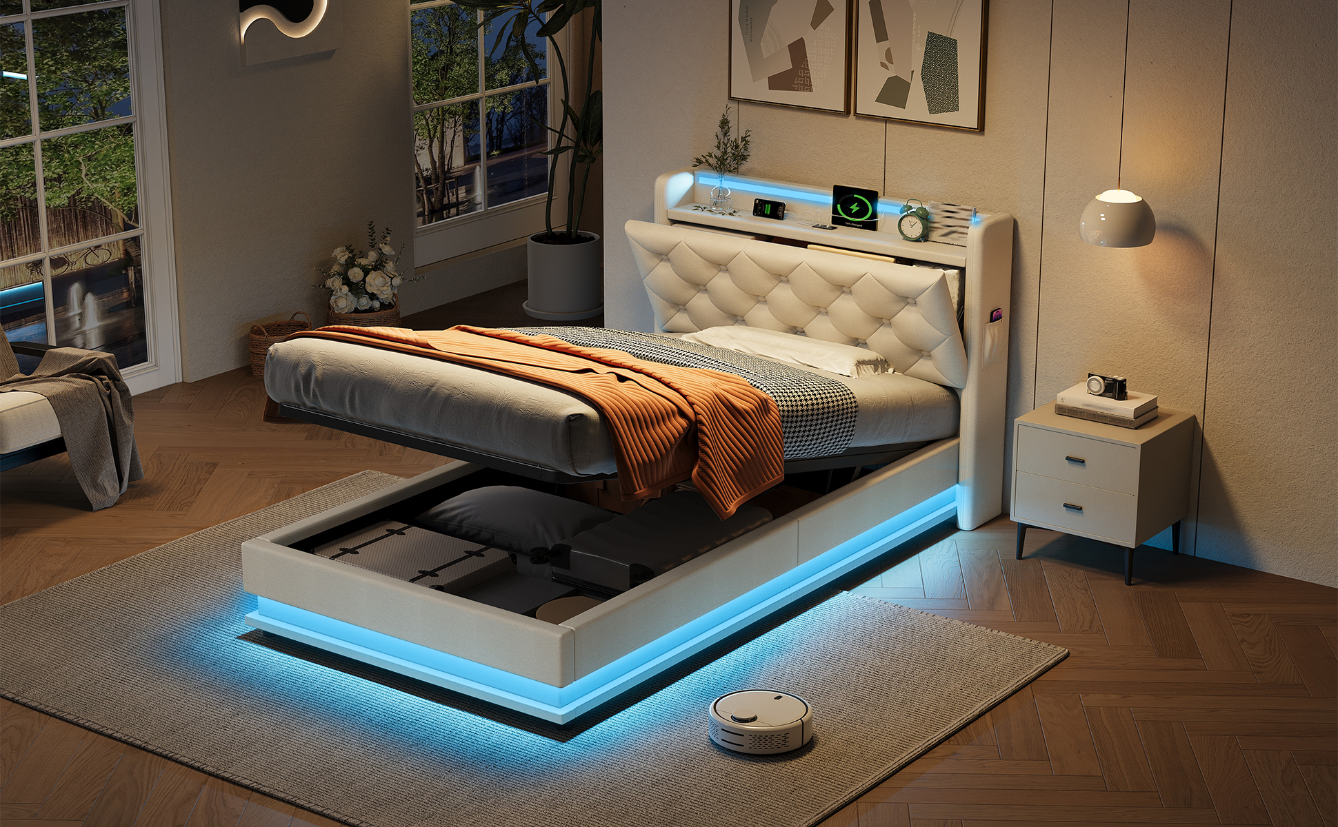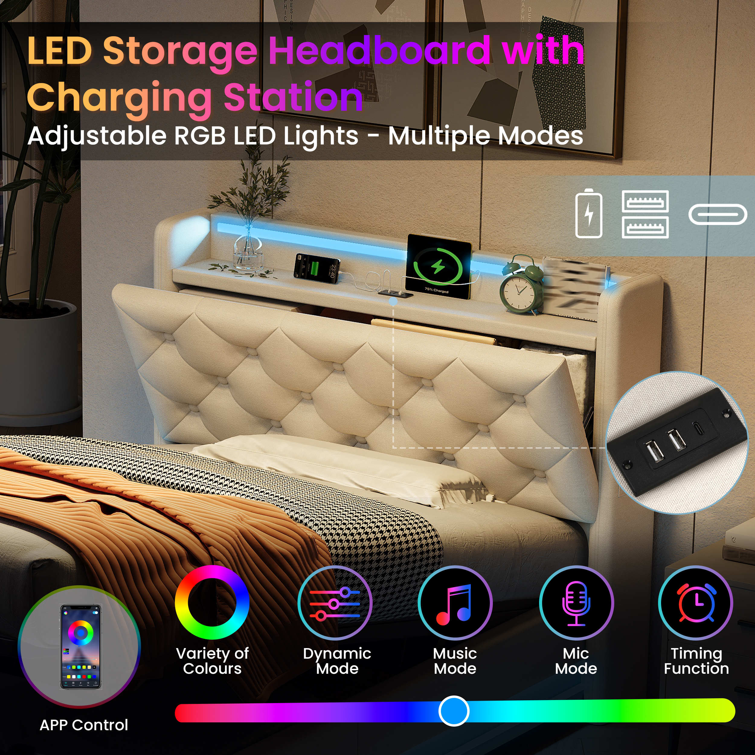 • [Charging Station] Conveniently located at the bedside, this bed has Type-C and two USB ports ensure your devices are always charged and ready to use.