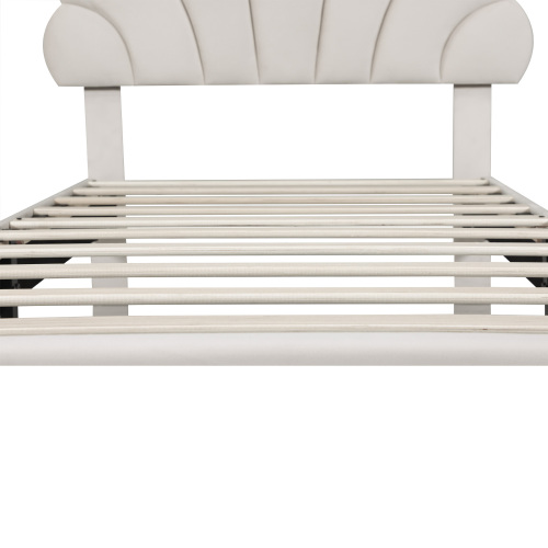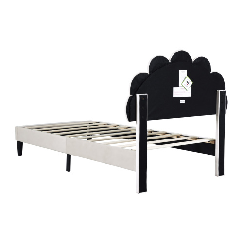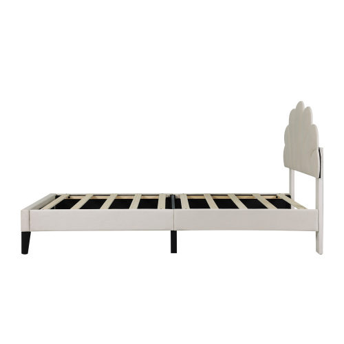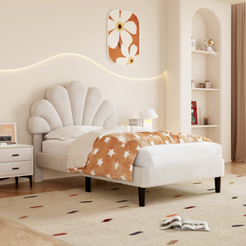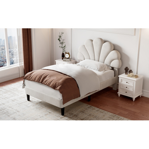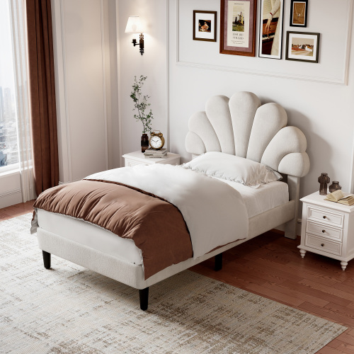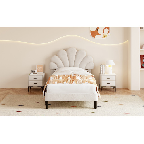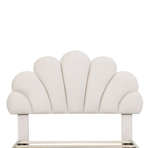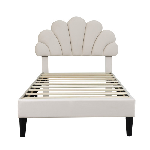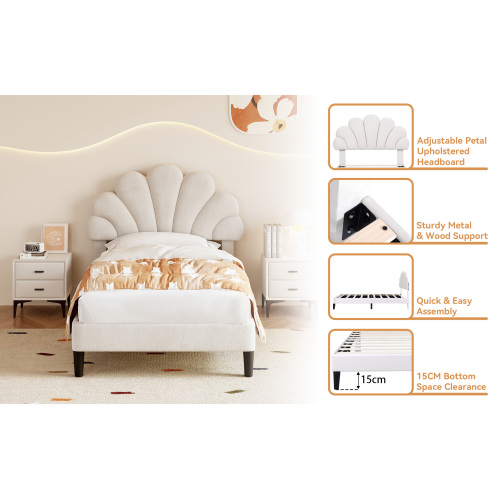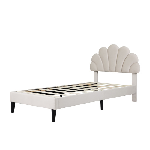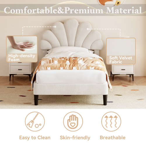 Product Name:3ft Single Upholstered Velvet Bed Frame, with Adjustable Chic Petal Headboard, Velvet Platform Bed Frame with Solid Wood Slat, No Box Spring Needed, Easy Assembly, Beige
