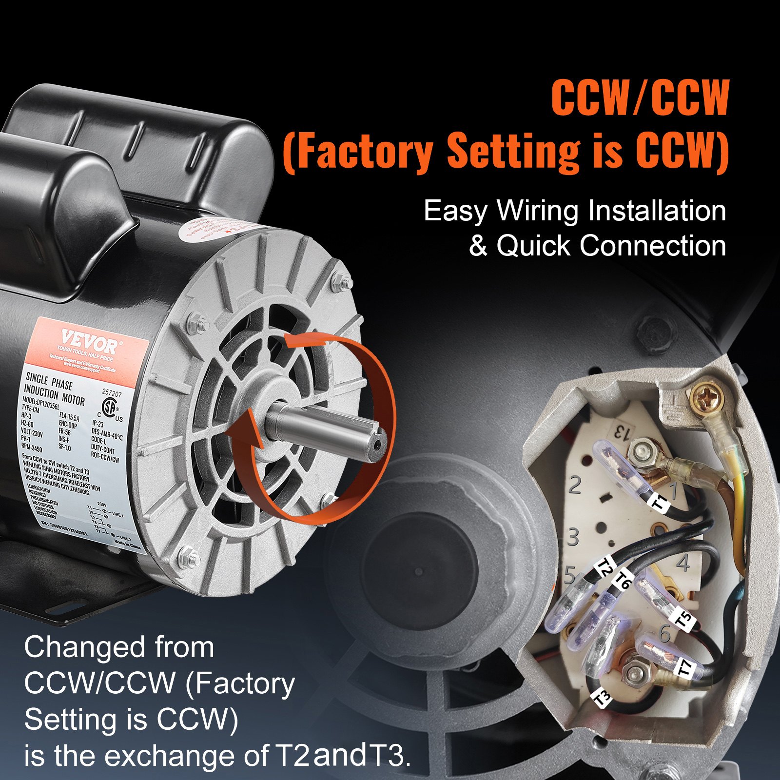 High Performance: 3HP 3450 RPM, Single Phase, Full Load Amps: 15.5Amp, 230V 60Hz, SF: 1.0.