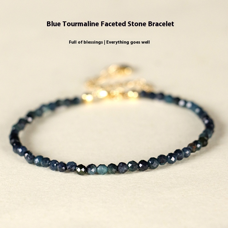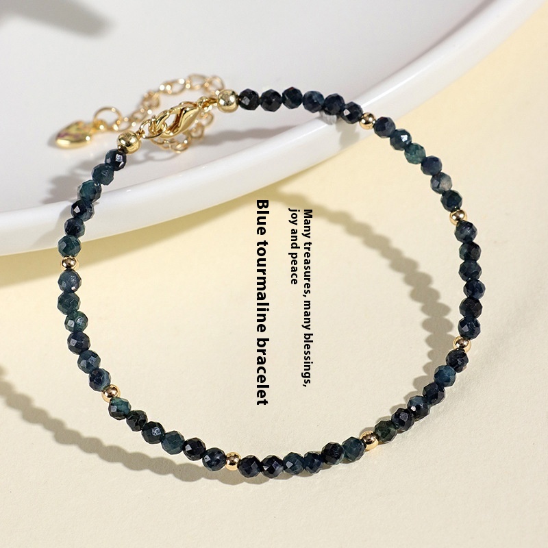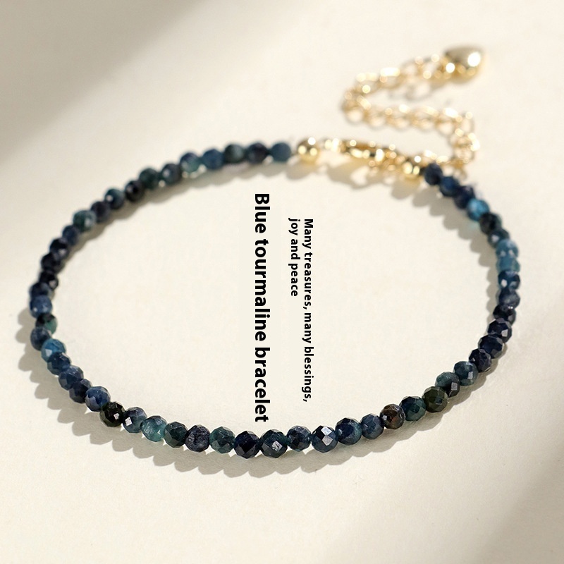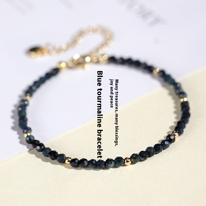 Color: 3mm blue tourmaline bracelet, 3mm blue tourmaline spacer bead bracelet