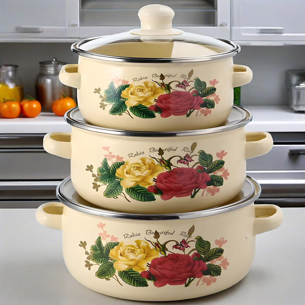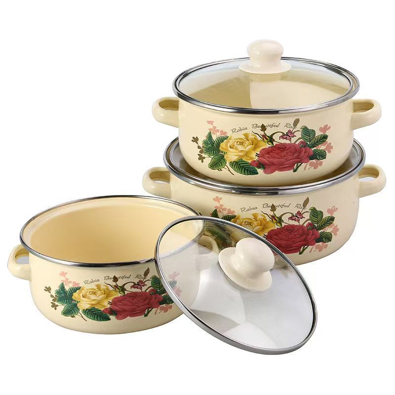 Easy to clean and maintain: The non stick surface of these enamel pots makes cleaning effortless. Food residues are easily washed away with water, and the sturdy enamel material ensures long-term use without shattering or cracking.