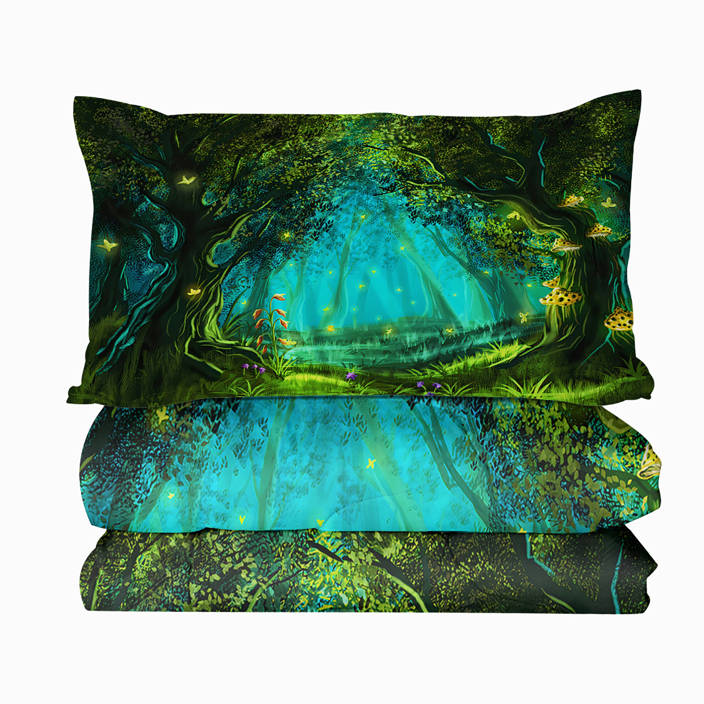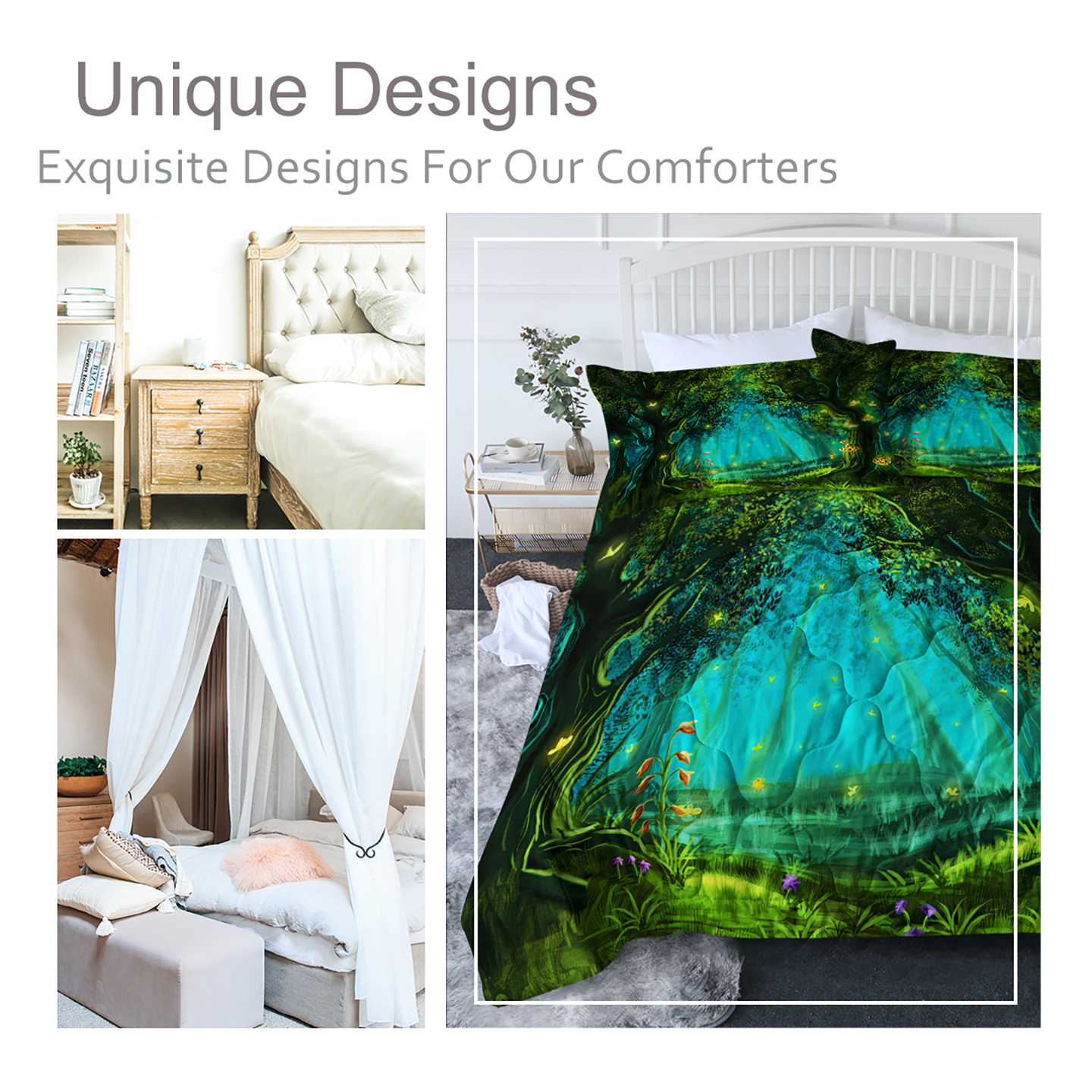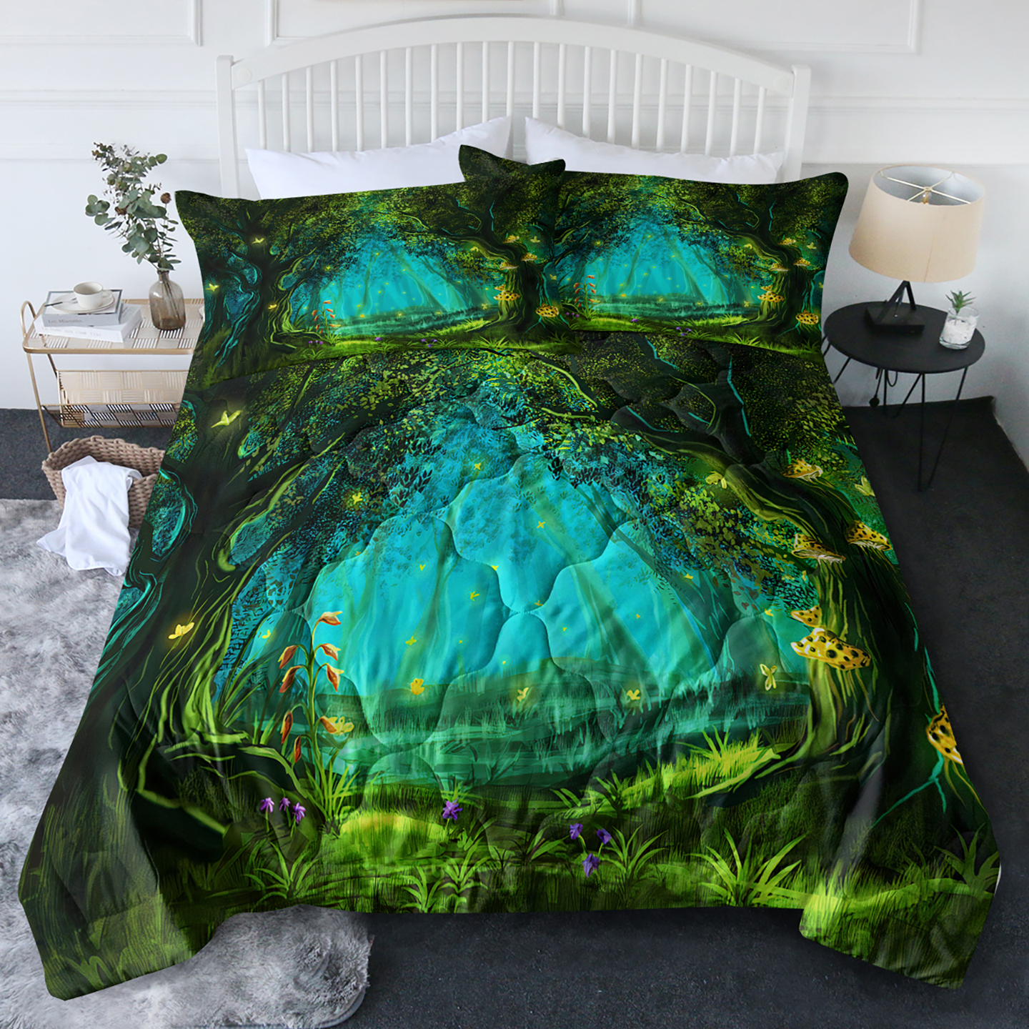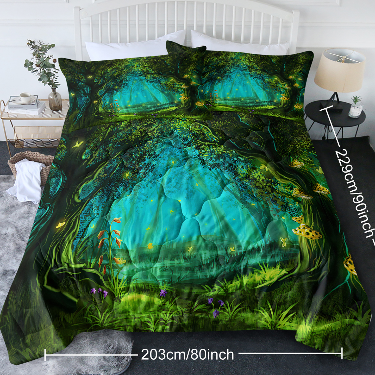 3pcs Green Light Forest Comforter Set Natural Comfort Bedding Duvet Game Summer Quilt Set