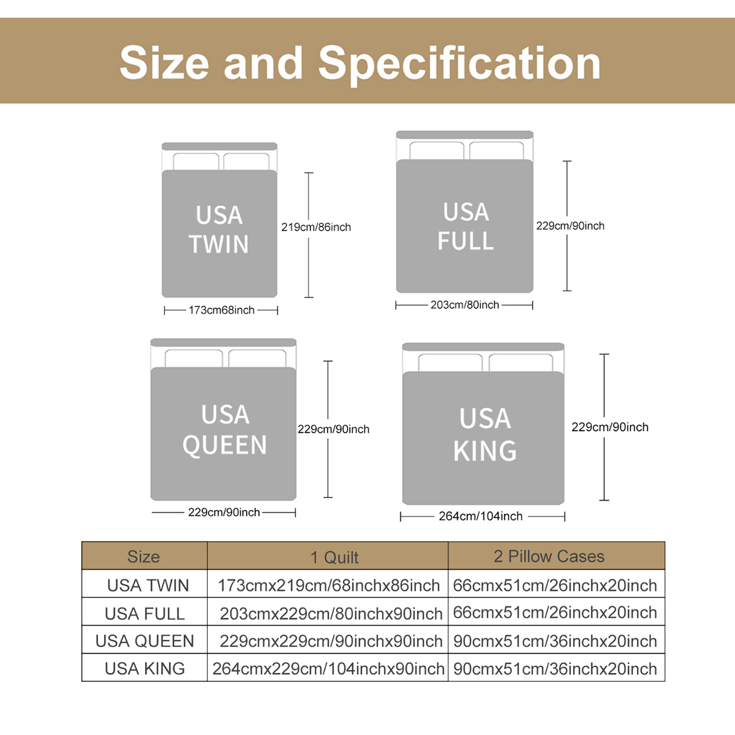 Range Of Sizes: Whether you have a twin, a queen, or a king-sized bed, we have the right bedding for you! All comforters come with 2 3D sham covers that print the design, and the blanket is reversible for when you want to change the design of your bedroom.