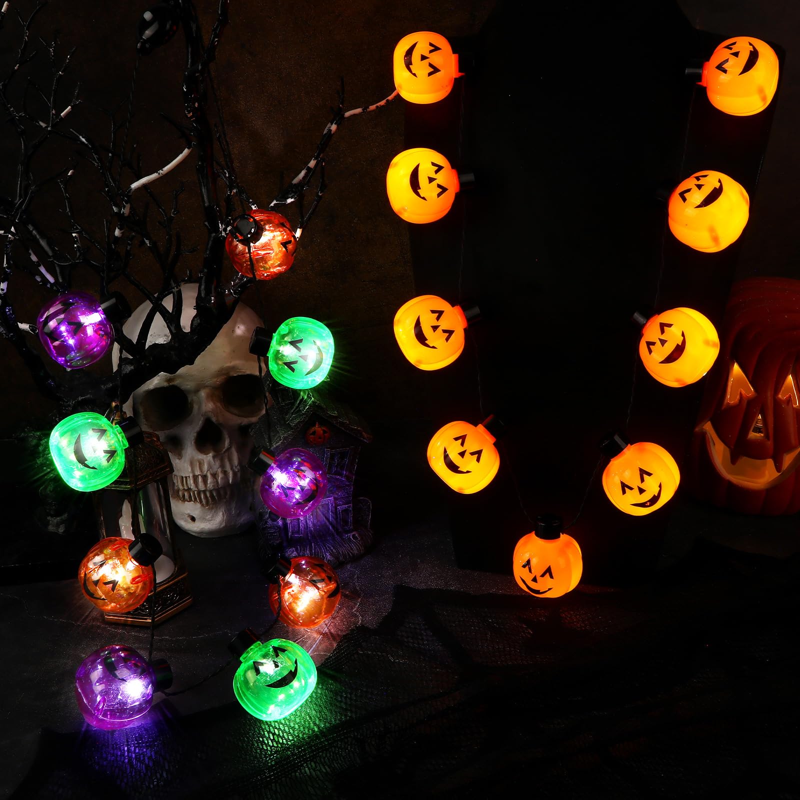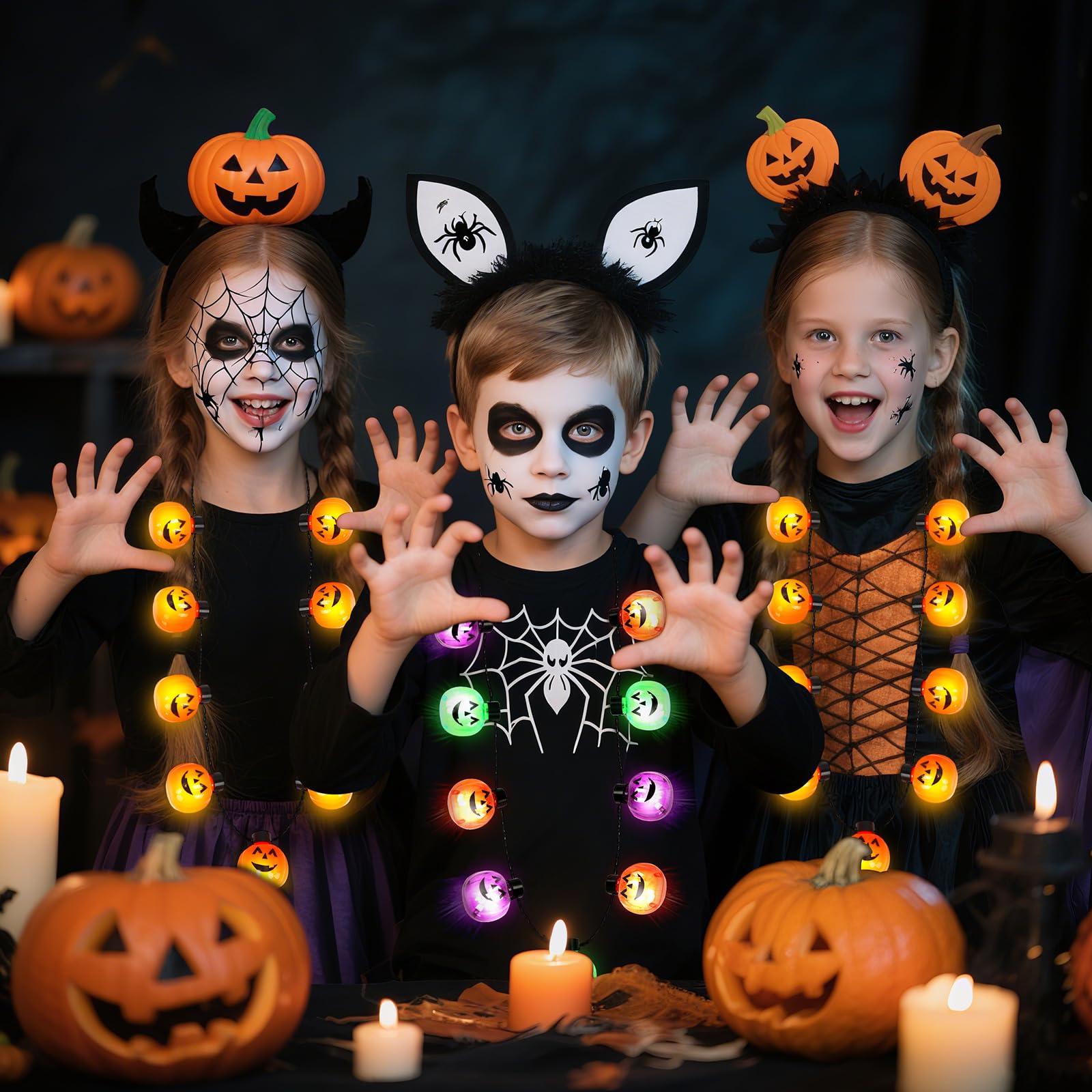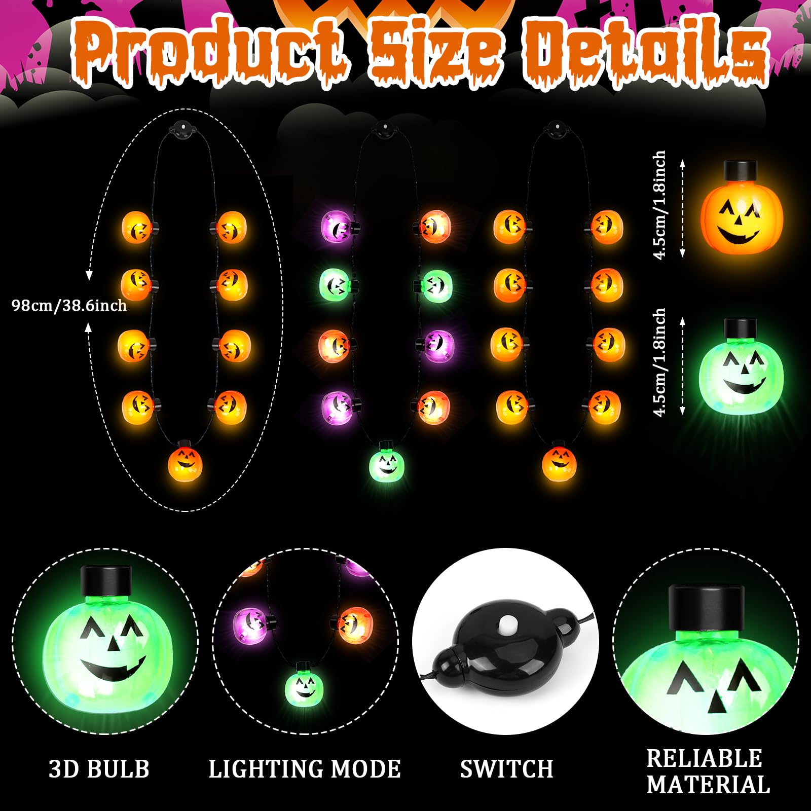 3PCS Halloween Light Up Necklaces, Pumpkin Shaped LED Necklace Halloween Eve Costume Party Accessories 3D Necklace Halloween Accessories For Halloween Party Favors And Supplies