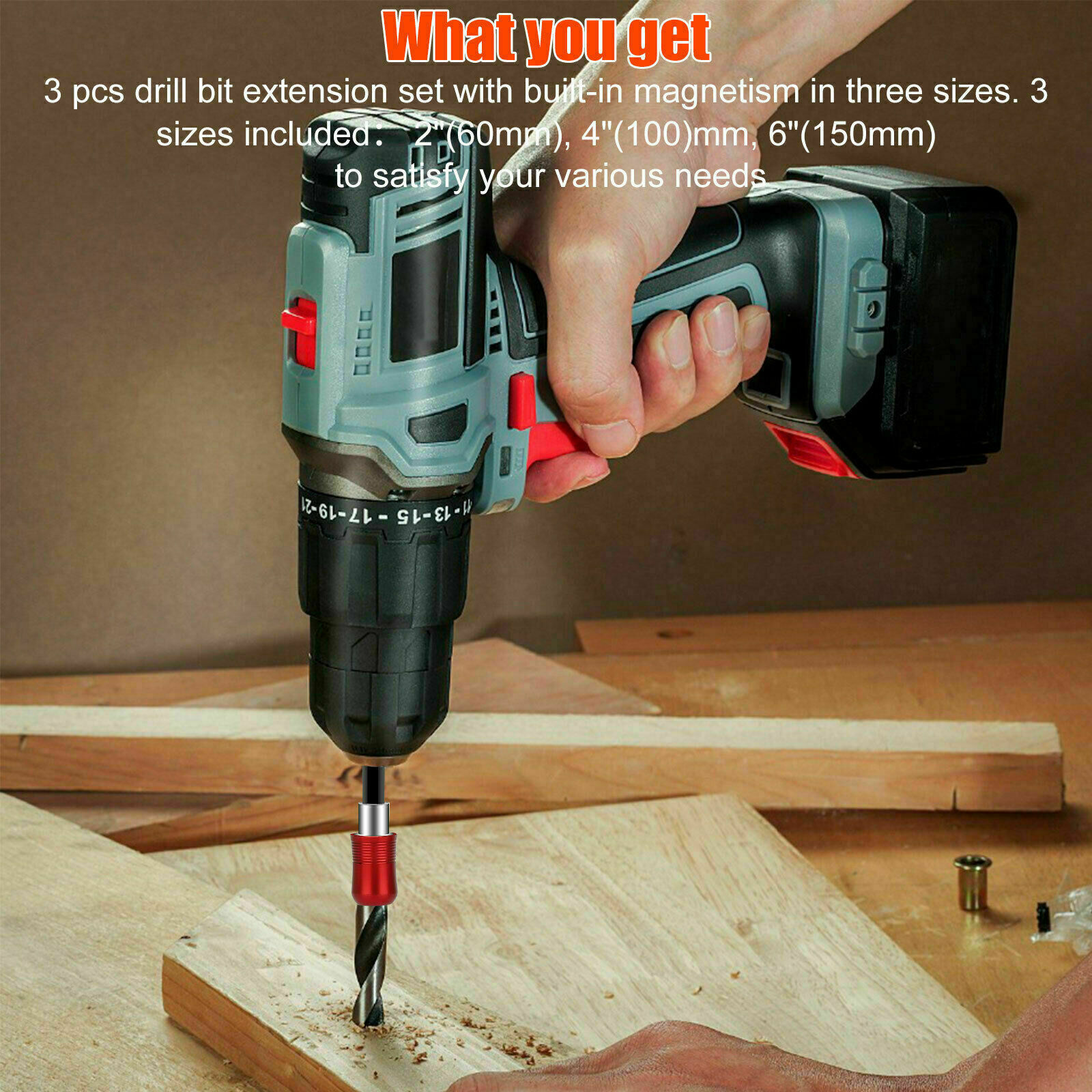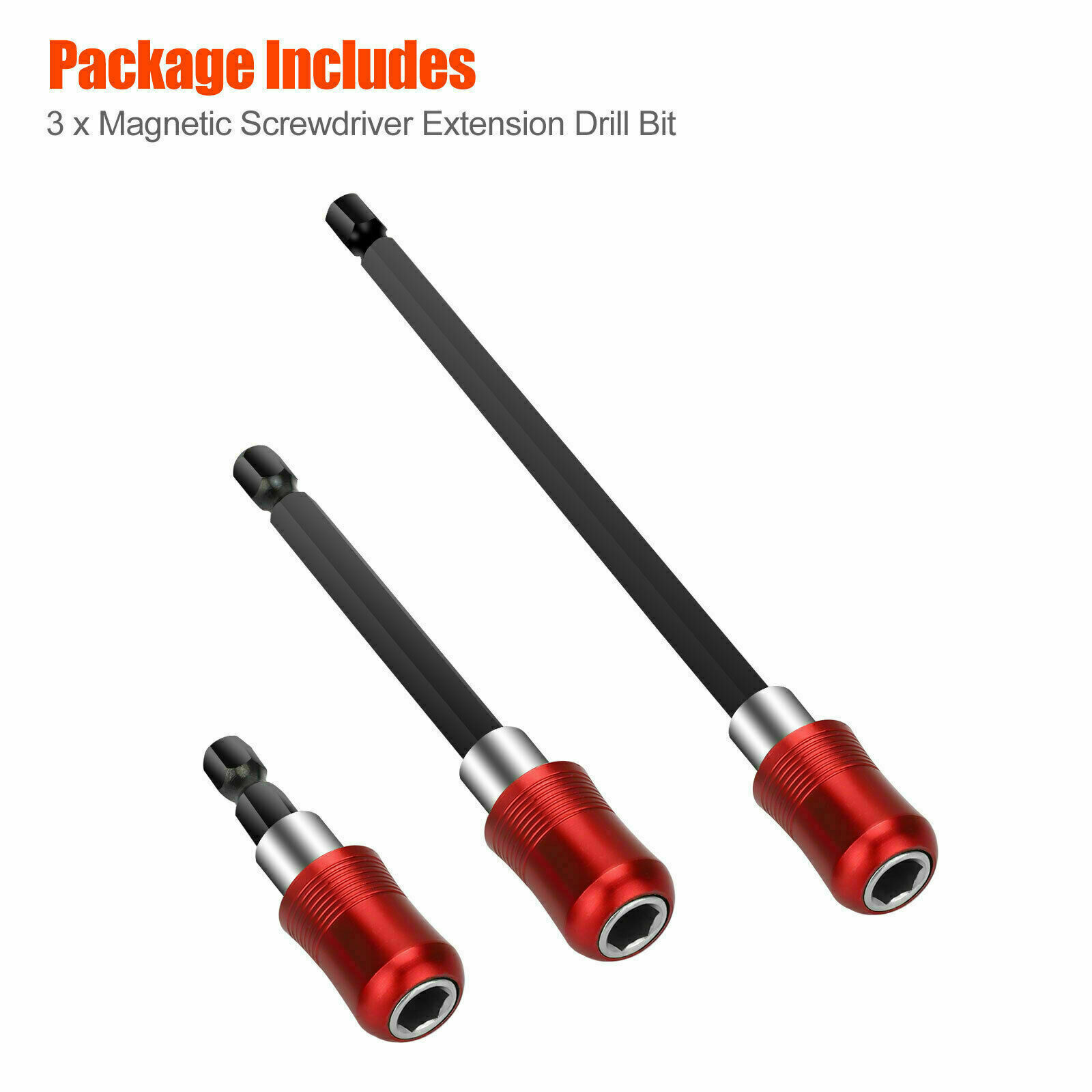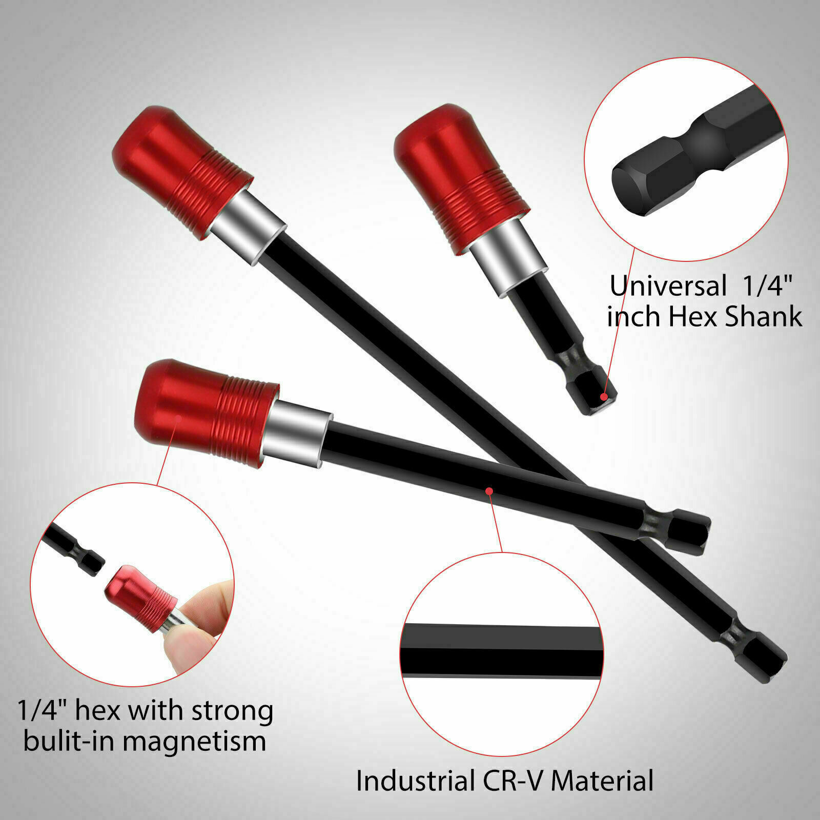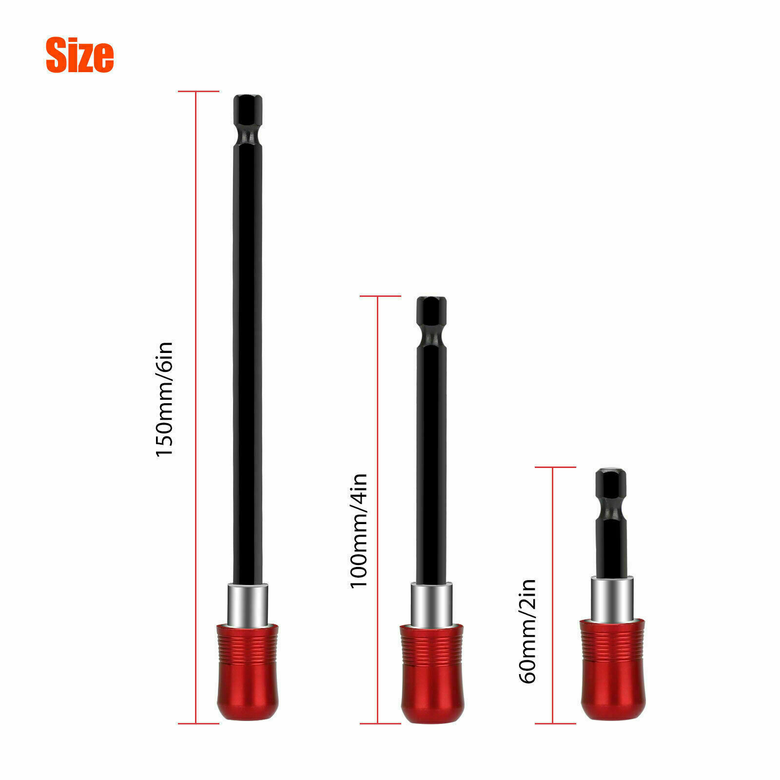 Extension holders in 3 different sizes so you can get superior access to hard to reach screws, nuts, and fasteners.