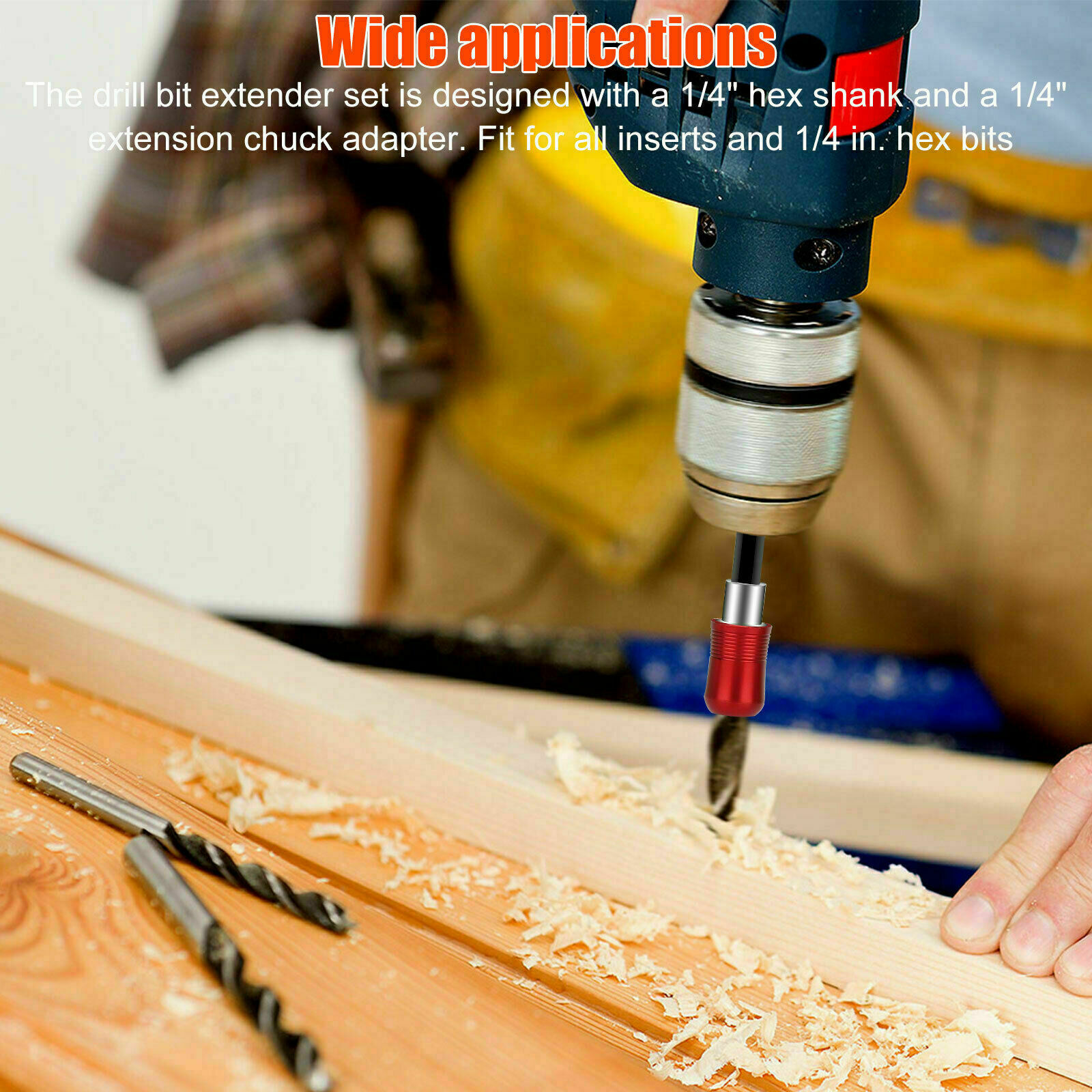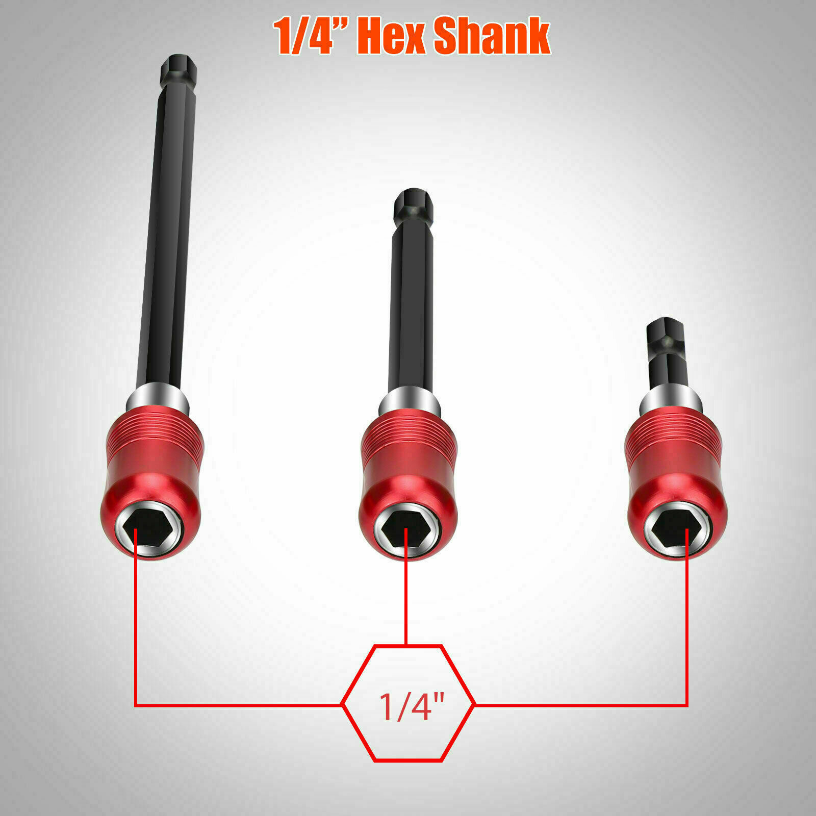 Universal 1/4" quick-change hex shank fits all power drills, 1/4" impact drivers and handheld drivers.