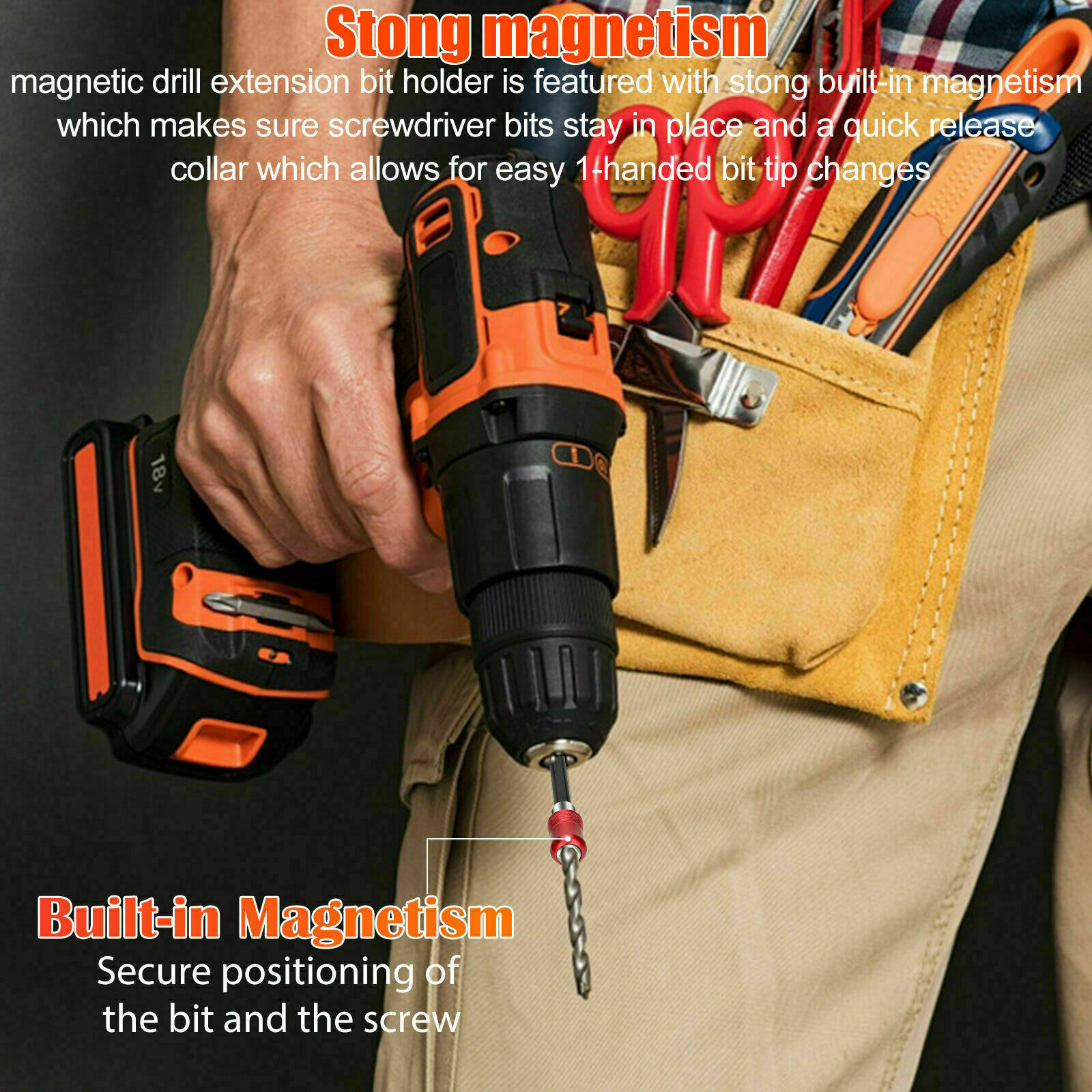 Quickly install and disassemble the batch head, the colored part can be adjusted telescopically, and is used to install the double-head batch. The head has a strong magnetic coil, which can absorb screws and facilitate installation.
