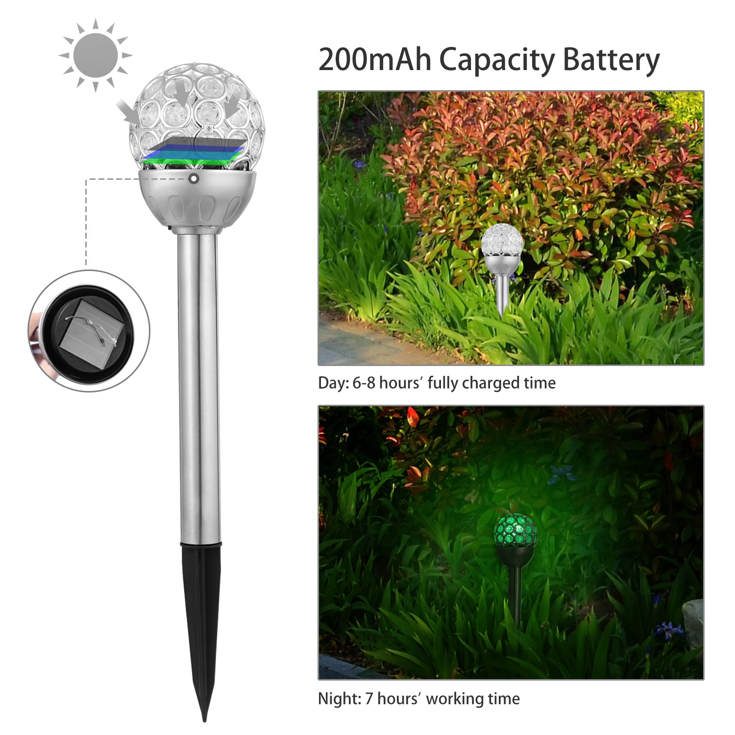 *Durable Stainless Steel Material and Classic Outlook*:Our solar garden light adopts stainless steel material and ABS spike shell thus durable,anti-oxidation and free from color fading. Its classic appearance decorates your garden.