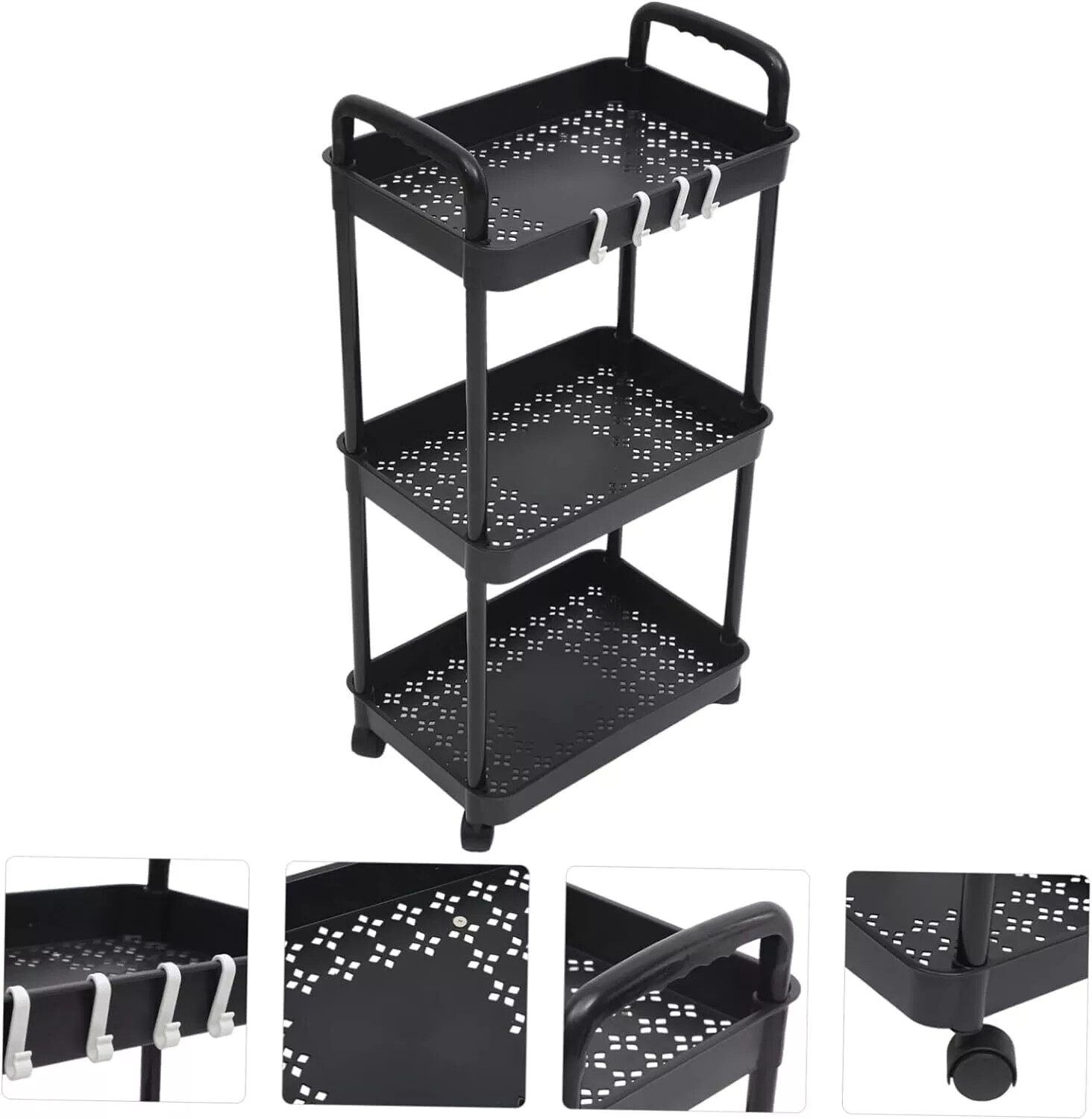 *The rolling storage shelves with four 360°rotating wheels,The rolling rack bulit with a flexible handle for easy move the car around all your house without any difficulty.